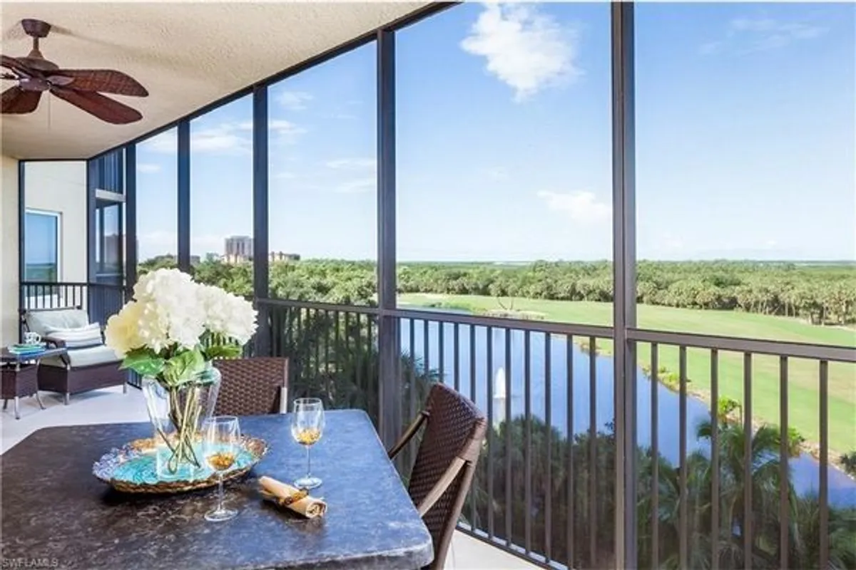 Welcome to Navona at The Colony at Pelican Landing! Price Reduced in the spirit of Celebrating Presidents Day all month! Now the lowest priced high rise condo ready for you to enjoy WARM WEATHER! A fabulous retreat with an excellent view of the bay, golf course, pool and sunsets! Lowest priced sky home in The Colony by hundreds of thousands! One parking space under the building and one parking space on top of the garage. Turnkey furnished! Recent updates include whole home freshly painted in neutral hues 2 years ago. All new tile flooring in the main living areas and den. 2 new toilets, new refrigerator, oven, range & microwave. Navona at The Colony has its own resort style pool, theatre room, gym, full time front desk manager and more! Residents of The Colony at Pelican Landing enjoy the following ALL included in your residency in addition to the building amenities. No Membership Required. TWO canoe and kayak parks with access to watercraft on Spring Creek. Tennis galore! Pickleball, bocce, fitness and a idyllic beach park island on The Gulf of Mexico with chairs, umbrellas, bathrooms. INCLUDED. Lastly, every resident in The Colony at Pelican Landing enjoys complimentary Membership to The Bay Club. A fabulous dining and activities club situated on the serene Estero Bay with formal and casual dining, live music at sunset a few times a week, event nights like NYE, Holiday dinners, Sports themed gatherings, Mothers Day and Easter Brunches, Trivia Nights, Pasta Nights and more! Don't miss this gorgeous home. Looking forward to meeting you and showing you around!