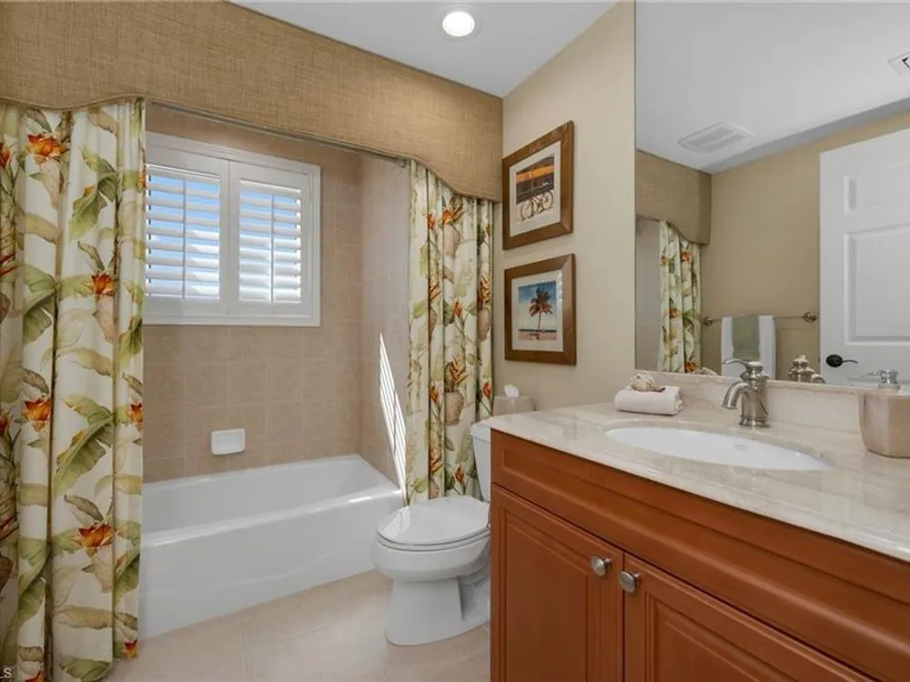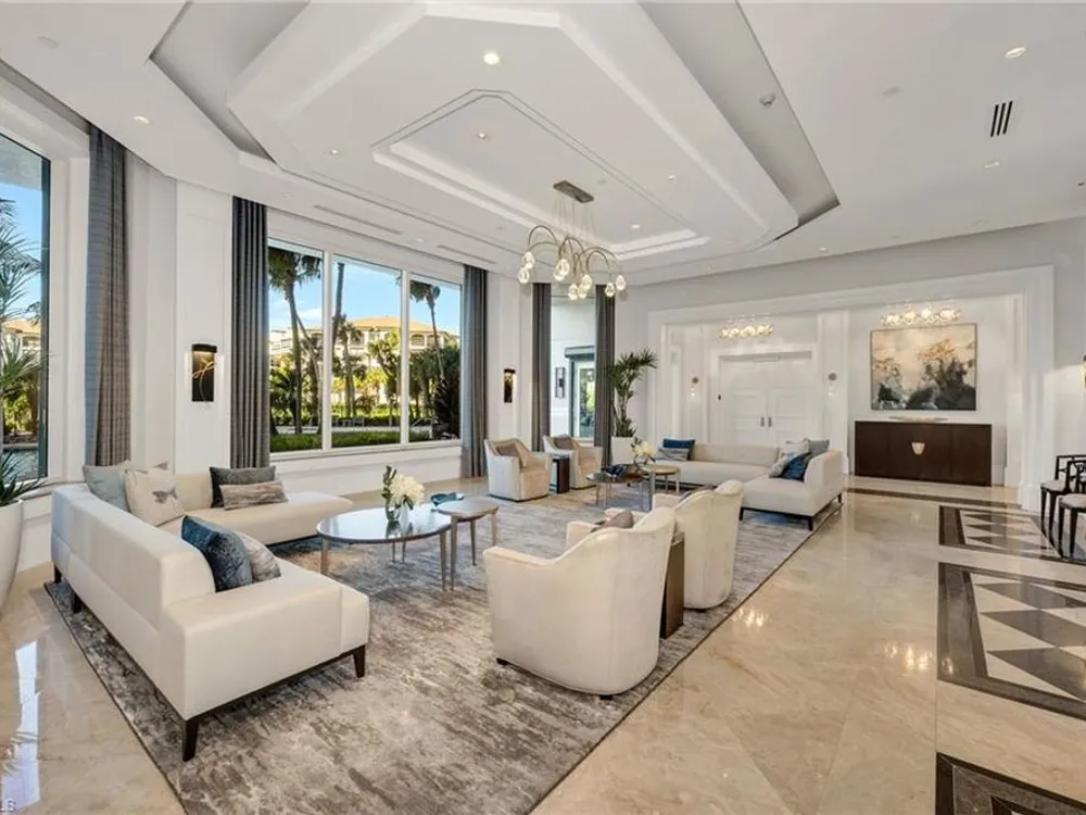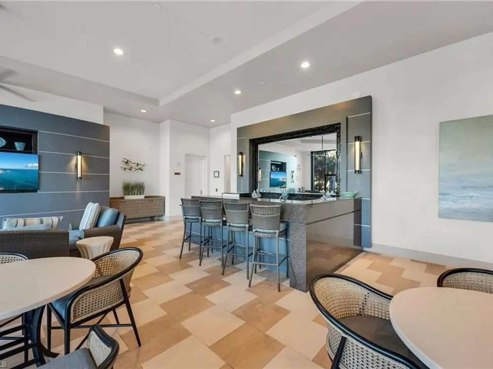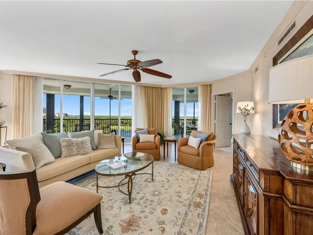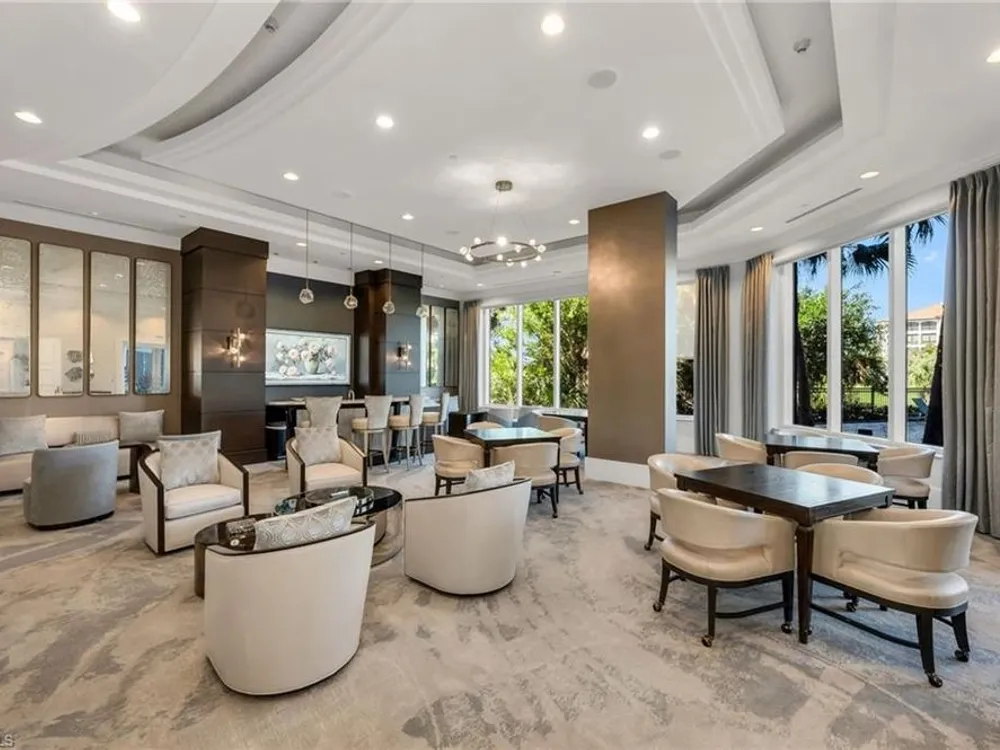 This exquisite residence boasts breathtaking views of the golf course, lake, Estero Bay, and distant silhouettes of New Pass leading to the Gulf of Mexico. Blending indoor sophistication with the serenity of lush greenery, soft natural light, and the gentle gulf breeze, this tranquil property offers an elegant, yet relaxed, atmosphere. The open kitchen features luxurious wood cabinets, breakfast bar, and like-new premium appliances. Ideal for entertaining or just relaxing with family, the inviting living and dining areas open to the spacious wrap around lanai with floor to ceiling glass doors and electric hurricane shutters. A restful primary suite offers a spa-like bath, custom closets, and luxurious marble finishes. Located away from the main living area are private guest rooms with ensuite baths and a balcony. You can take advantage of Navona's elegant amenities, including a sophisticated lobby overlooking the pool, a state-of-the-art fitness center, a welcoming social room, elegant guest suites, and a private theater. You will also have access to unparalleled community amenities including a private beach pavilion, bocce, private restaurant, tennis, fitness center, and concierge service. Residents enjoy the privilege of a Private Beach Club, while a coveted private membership to the Bay Club promises mesmerizing sunsets over Estero Bay. Situated just moments from Coconut Mall and the highly regarded Lee Memorial Health System, this property effortlessly blends tranquility with urban convenience, making it the perfect sanctuary for the discerning homeowner.