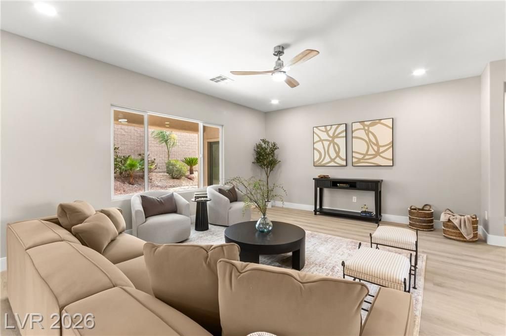 Welcome to your dream home in Sun City Anthem, Nevada’s top-rated active 55+ community. The home was COMPLETELY REMODELED with new soft-close cabinets, quartz countertops, stainless-steel appliances, luxury vinyl plank flooring, and modern lighting throughout. The huge kitchen features ABUNDANT CABINETRY and a 9-FOOT ISLAND. The EXPANSIVE GREAT ROOM with separate dining space is perfect for entertaining. The spacious primary suite offers a spa-like bathroom with a LARGE WALK-IN SHOWER. Additional highlights include an extra-large laundry room with flexible space for crafts, gardening, or storage. The backyard offers PRIVACY AND STUNNING MOUNTAIN VIEWS, creating a peaceful outdoor retreat. Enjoy Sun City Anthem’s incredible amenities including golf courses, fitness centers, tennis and pickleball courts, indoor and outdoor pools, and over 50 clubs and social groups. This is more than a home, it’s a lifestyle. Don't wait, schedule your tour today!