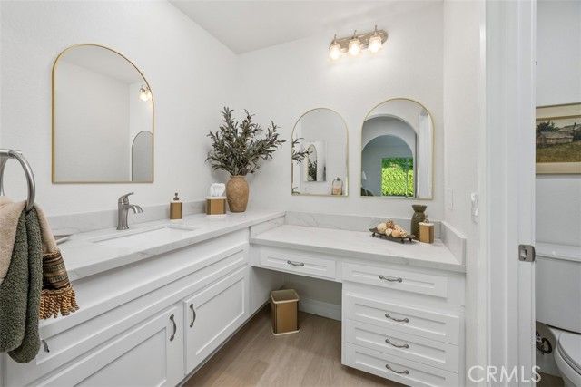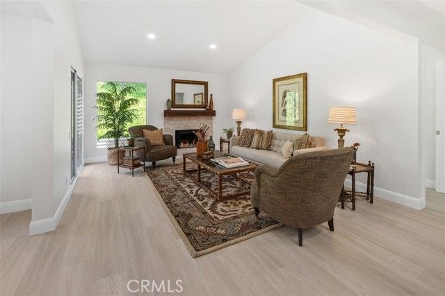 A beautiful Casta Del Sol home located in a 55+ guard gated senior community. It is a Narciso model on a very quiet, peaceful cul-de-sac lot with a sense of security creating a tranquil and private setting. The home has 3 bedrooms, 2 baths, with 1495 sq. ft. It is remodeled throughout with ALL NEW vinyl wood flooring, hardware, moldings, dimmable LED lights, granite quartz counter tops in the kitchen and both bathrooms, new mantel, stack-stone fireplace, freshly painted, and epoxy flooring in the garage. Also includes PEX re-piping, garage cabinets, a pull-down ladder for easy attic access, and LED lights in the garage. Casta del Sol offers many great amenities: swimming pools & spas, tennis, pickle ball, billiards, fitness center, wonderful library, club house, many clubs, parties and much more. You also have access to Lake Mission Viejo, with sandy beaches, boating, picnic areas and fabulous summer concerts.