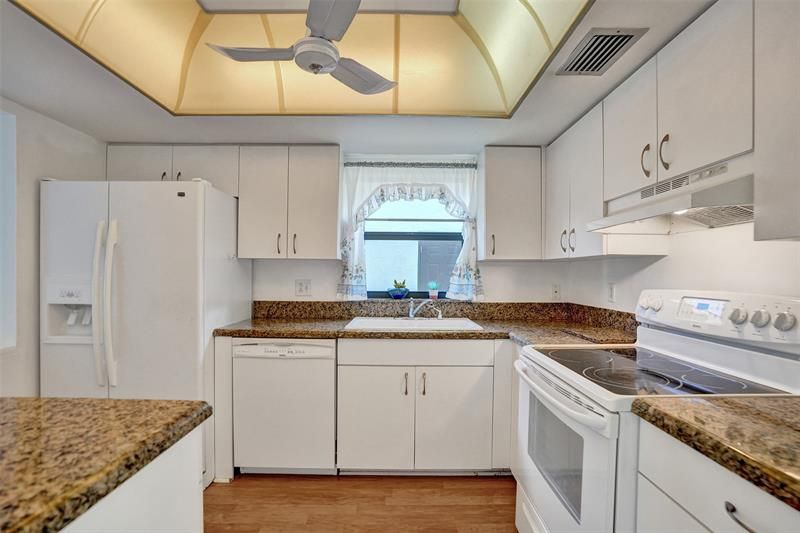 Two-bedroom two-bath Heather model in the sought-after Meadows of Crystal Lake 55+ active adult community. Tile flooring throughout with laminate in the kitchen. Large living and dining area plus a bonus family room. Kitchen has white cabinets white appliances and granite countertops. Fresh interior paint and newly painted garage floor. Stacked bedrooms. Primary bedroom has a walk-in closet and en-suite bath. Secondary bedroom is generous in size. Home features impact windows a 2011 roof and a one-year-old AC and washer. Five year old dryer. Low HOA includes lawn care cable and access to pool clubhouse fitness center and more. Bright and inviting home delivers easy Florida living with style and comfort in every room. Move-in ready — this one will not last.