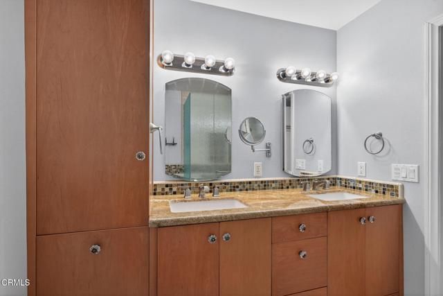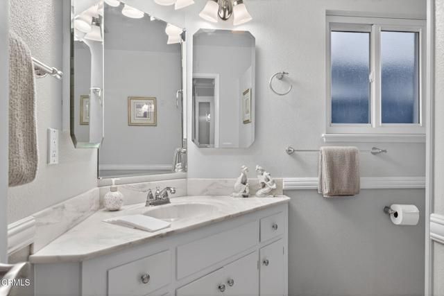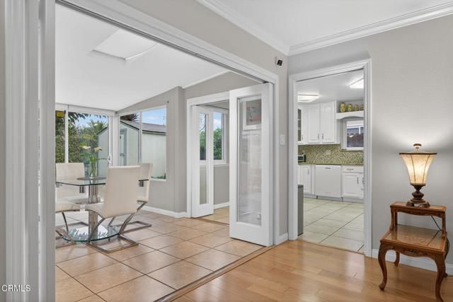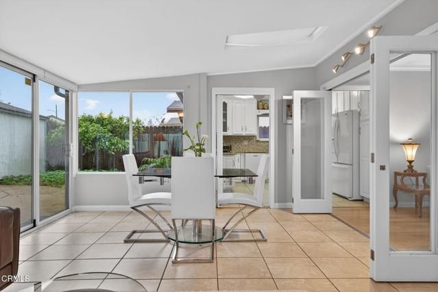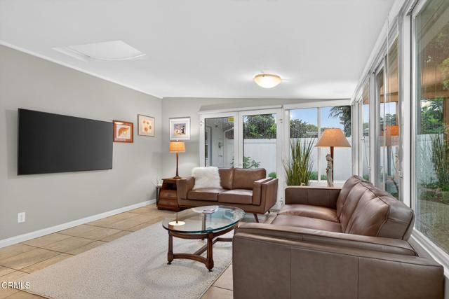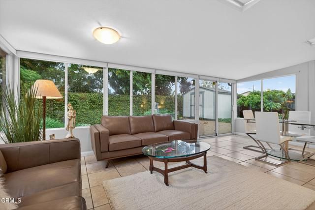 Welcome to this stunning 2-bedroom, 2-bath villa located in the highly sought-after 55+ community of Hueneme Bay -- just minutes from Hueneme Beach and Channel Islands Harbor.This truly is a must-see property featuring a wonderful open floor plan and expansive windows that fill the home with natural light. The large sunroom addition (approximately 290 sq. ft.) showcases the lovely, private yard and creates an inviting space you'll never want to leave.The beautifully updated kitchen is perfect for entertaining, complete with granite countertops, clever roll-out spice racks, and Lazy Susan cabinetry -- a thoughtfully designed chef's space ready for gatherings both large and small.The spacious living room offers warm wood-like flooring and a handsome gas and wood-burning fireplace. Custom glass bi-fold doors lead you into the light-filled sunroom -- an ideal setting for entertaining and great conversation. Enjoy panoramic views of the lush private yard featuring a lemon tree, apple tree, stunning fountain, stamped concrete patio, and a large Tuff Shed for added storage.The spacious primary bedroom includes a beautifully remodeled ensuite bath with a custom vanity and gorgeous shower. The guest bathroom features a large shower and charming corner vanity.Additional highlights include:Bonus room off the living room -- ideal as a third bedroom, office, or hobby space -- complete with closet and washer/dryer.Finished 2-car garage with refinished cement floors, deep work sink, and ample attic storage.This VERY special property offers comfort, style, and convenience in one of the area's most desirable 55+ communities. Don't miss your opportunity to enjoy all that Hueneme Bay has to offer!