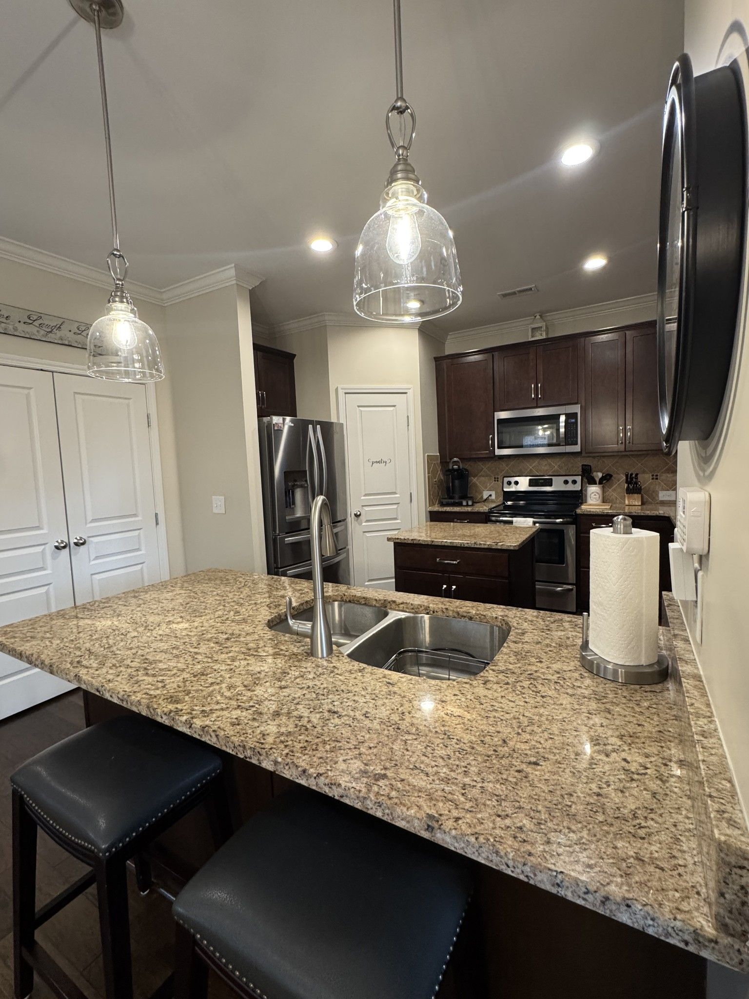 End unit! Great open floor plan with tons of natural lighting makes entertaining a breeze. Beautiful kitchen offers tons of cabinet space, granite countertops, including breakfast bar and pantry. Numerous updates including new hardwood floors downstairs in bedrooms and closets, custom closet in owners suite, lighting fixtures and freshly painted interior just to name a few updates/upgrades. Upstairs provides a large room which could be used as a 3rd bedroom and also includes a full bath. This home is in immaculate/move in condition. Enjoy a relaxing evening on your private fenced in back patio with a covered area for your patio furniture. Fabulous location offers numerous places for shopping, banking within walking distance or a short drive from your home. Easy commute to downtown Nashville.This home also has easy accessible guest parking as it’s right across the street. All of this and more makes this place a great place to call home.