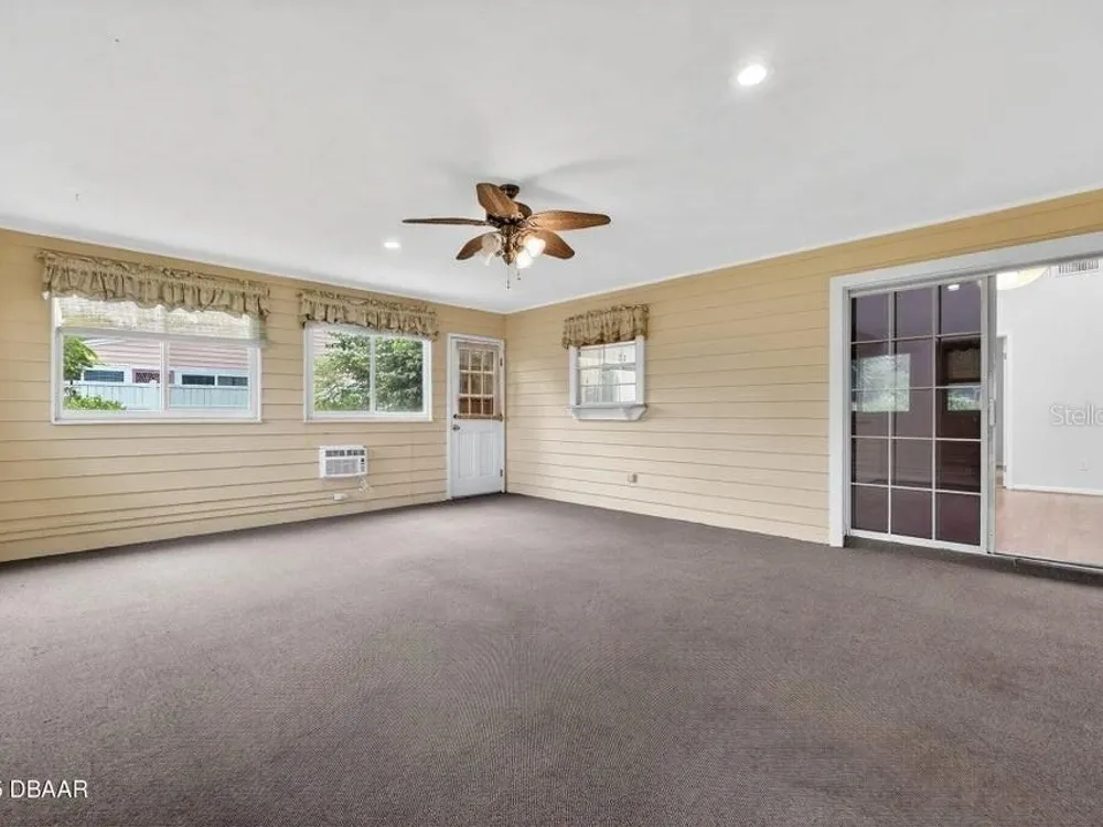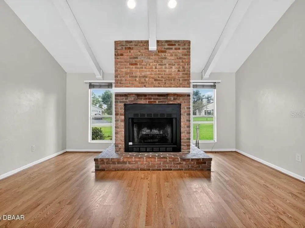 Amazing opportunity to own a spacious 2-bedroom, 2.5-bathroom home in the highly sought-after Pelican Bay community. This desirable neighborhood offers 24-hour gated security along with 18 holes of world-class golf, tennis, and pickleball courts. Step inside and you'll be welcomed by soaring vaulted ceilings and generously sized living spaces. The living room features a cozy stone fireplace, striking wood-beamed ceilings, and rich hardwood floors. The kitchen layout provides ample countertop space, abundant cabinetry, and a convenient pass-through window to the large great room an ideal setting for entertaining or relaxing. The split floor plan highlights a very spacious primary suite with a walk-in closet, large bathroom, and walk-in shower. Guest bedroom are generously sized, with suites on both sides for added privacy. This home presents an excellent opportunity to bring your vision, add updates, and make it your own. This highly desired neighborhood boasts 24 hour gated gated security, 18 holes of world class golf, tennis, and pickle ball courts. Just minutes from Downtown Daytona Beach, the World's Most Famous Beach, NASCAR, One Daytona, and endless outdoor activities! Conveniently located near I-4, I-95, shopping, restaurants, and Tanger Outlets. Schedule your private showing today and start living the Florida dream!