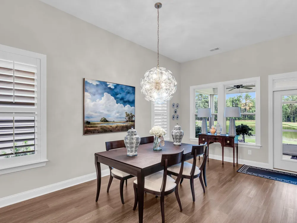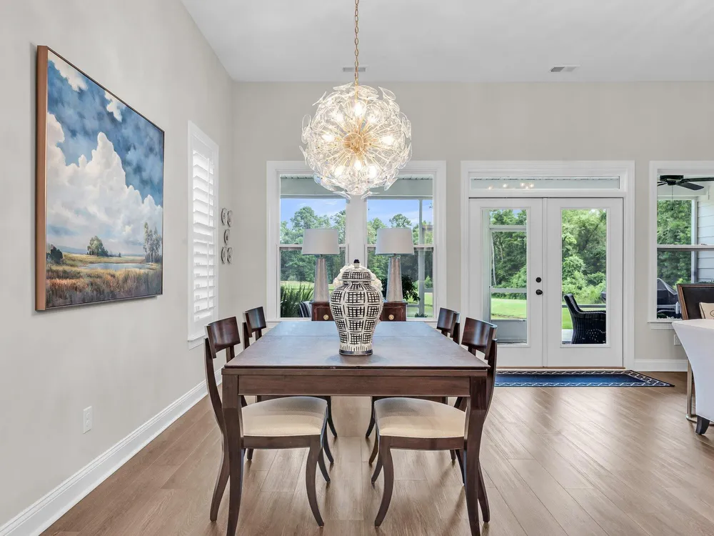 ***Ask about the possibility of receiving 1% reduction in interest rate and free refi.*** Situated on a picturesque lot in the desirable gated Cresswind section of The Ponds, a vibrant 55+ community, this beautiful home offers impeccable curb appeal, manicured landscaping, and tranquil pond views. From the moment you enter, you'll be impressed by the elegant finishes and thoughtfully designed spaces. Gorgeous flooring, crown molding, high ceilings, plantation shutters, and a bright, open layout create a welcoming atmosphere. The foyer features a striking tray ceiling that sets the tone for the rest of the home.Just off the entry, a charming bedroom and a separate full bathroom provide a comfortable guest bedroom.A set of glass-front French doors leads to a lovely office/study, while a built-in drop zone adds everyday convenience. The heart of the home is the expansive living, dining, and kitchen area, which is filled with natural light thanks to a wall of windows that frame the backyard and pond beyond. The living room centers around a beautiful fireplace and flows into the spacious dining area. The kitchen is a true showpiece with an abundance of white cabinetry, quartz countertops, stainless steel appliances, a stylish subway tile backsplash, an oversized walk-in pantry, and a large center island with seating. The main-level primary suite is a serene retreat with a tray ceiling and a luxurious en suite bath that includes a frameless step-in tile shower, a large soaking tub, and a dual sink vanity with quartz countertops. A well-appointed laundry room is also located on the main floor for added ease. Upstairs, you'll find a private bedroom with its own full bathroom, ideal for guests or extended family. The screened porch and patio offer amazing spaces to take in the views of the backyard and pond. Living in Cresswind at The Ponds means enjoying a wealth of community amenities, including a clubhouse, swimming pool, tennis courts, bocce ball, and pickleball courts. This home is perfectly situated just 7.3 miles from Historic Downtown Summerville and 9.2 miles from I-26. Don't miss the chance to experience this exceptional property.