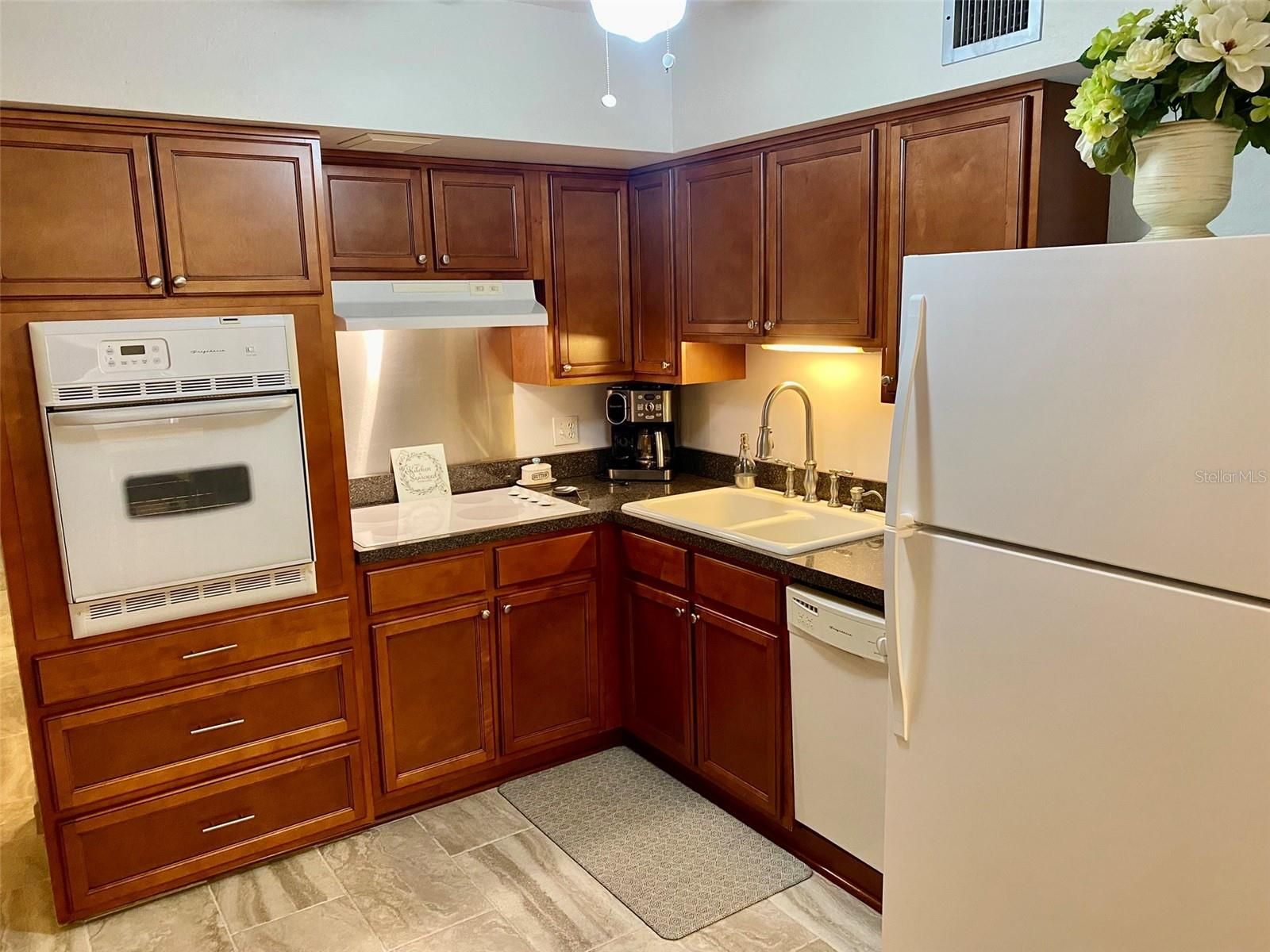 Welcome to this Third Floor, condo. This condo is unique in that it is "meticulously maintained" with style and flair. This condo includes tasteful furnishings, lamps and TV's and more listed on the "Inventory of Furnishings List" attached. Buyer's, I assure you, you will not be disappointed with this particular unit as it is move in ready and the price is right. The A/C unit was installed in 2025; Hot Water Heater was installed in 2021; Refrigerator was purchased in 2025, the Primary Bath and Guest Bath have both been tastefully updated. The tile is newly installed. This condo is freshly painted. This condo has a washer and dryer. The assigned parking space is down in front row below the condo unit. There is a storage unit at the end of the corridor with shelving for your beach and pool toys. Keep an eye out for our "Open House" schedule. Assigned parking. The 55+ community has two activity centers, and two private golf courses with 9 and 18 holes, free exclusively for residents & owners. There are two heated swimming pools. The remodeled Cardio Gym has the latest exercise equipment. A very pet-friendly community, there is a fenced dog park with covered seating. There are hobby studios, and a wood shop for the exclusive use of the residents. Activities include fitness classes, dancing, clubs, cards, billiards, entertainment, classes, and much more. The on-site Good Karma Café has take & bake meals and snacks. Close to beaches, transportation, shopping, entertainment, and fine dining. All room sizes, floor plans and square footage are approximate. This property is being transferred by a leasehold estate deed. Association approval is required. If financing, a 35% down payment is required. Washer, dryer & hook ups must be approved by the association.