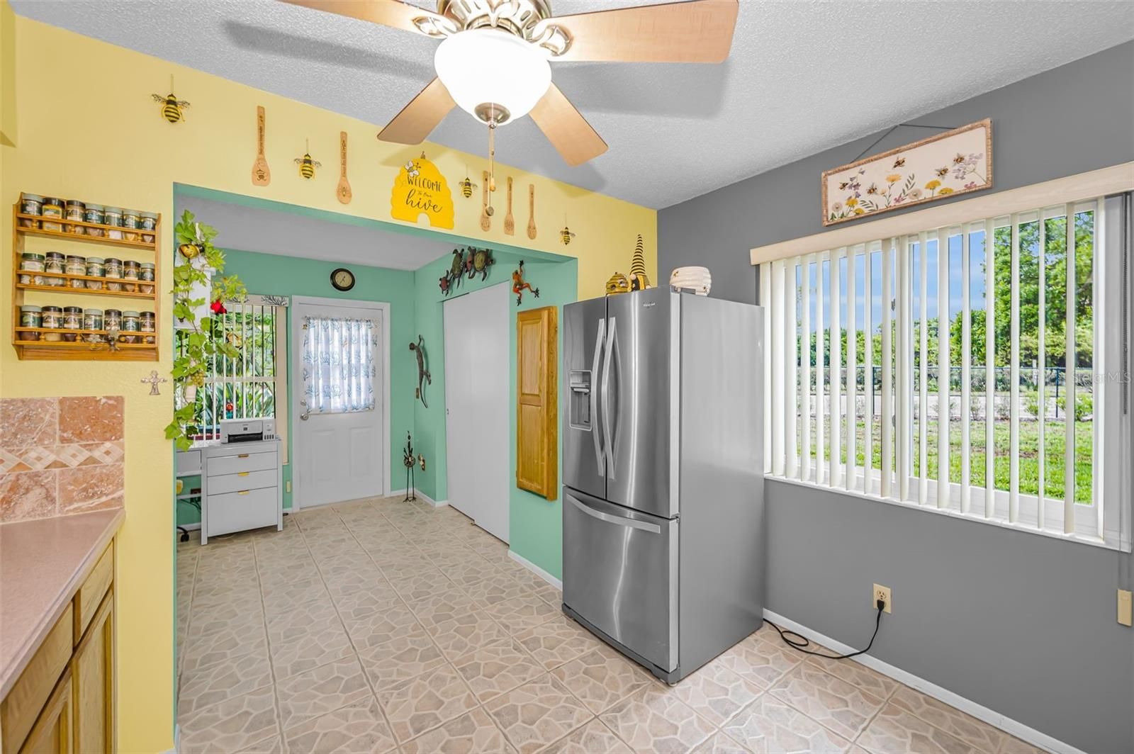 - Ceiling Fan(s), Living/Dining Room, Solid Surface Counters, Solid-Wood Cabinets, Thermostat, Window Treatments