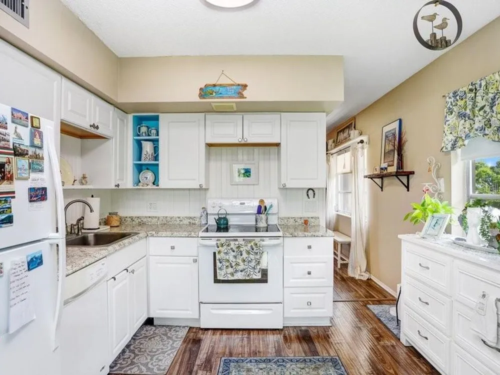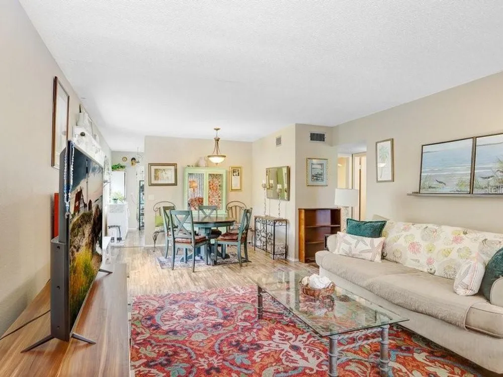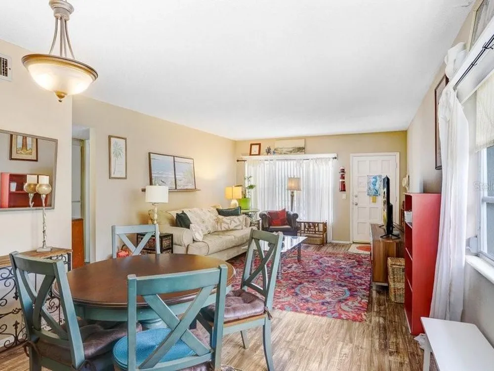 Welcome to your slice of paradise! This immaculate top-level 2-bedroom, 2-bathroom condo offers the pinnacle of maintenance-free living in the highly sought-after On Top of the World community. Spanning over 1,100 heated square feet, this light-filled unit boasts an open and inviting floor plan with beautiful wood-look laminate flooring throughout! The heart of this home is the beautiful kitchen, featuring crisp cabinetry, a charming backsplash, and plenty of counter space. The spacious living and dining area is perfect for both relaxing and entertaining. The primary suite provides a serene retreat, while the second bedroom offers ample space for guests, a hobby room, or a home office. Pride of ownership is evident in every corner of this move-in-ready home. Enjoy the peace and quiet that comes with having no upstairs neighbors, along with lovely views from your top-level residence. But the lifestyle doesn't stop at your front door! On Top of the World is a premier 55+ community renowned for its unparalleled amenities. You'll have access to two private golf courses (which are free for resident owners!), two sparkling swimming pools, a state-of-the-art fitness center, tennis, pickleball, and shuffleboard courts, a dog park for your furry friend, and an extensive calendar of social events, clubs, and activities. Conveniently located just a short drive from world-class beaches, shopping, dining, and cultural attractions, this condo offers the perfect blend of tranquility and activity. Don't miss your chance to live the vibrant Florida lifestyle you've always dreamed of. Schedule your private showing today!