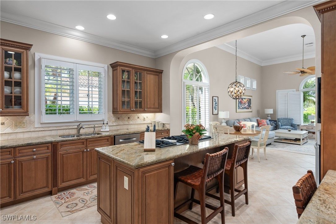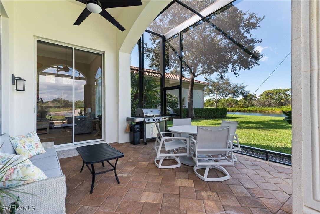 Experience Timeless Luxury at Las Palmas in The Colony Golf & Bay Club Welcome to a residence that redefines elegance and sophistication. This exquisite home, presented in like-new condition and featuring a 2021 roof, captures one of the most breathtaking waterfront views in all of Las Palmas. Overlooking serene lake waters and the lush fairways of The Colony’s championship golf course, every detail of this home reflects refined taste and exceptional craftsmanship. Designed with gracious volume ceilings and high-end finishes, the interiors exude both warmth and grandeur. The southwestern exposure bathes the home in natural light, creating the perfect setting for sunset gatherings or peaceful moments by your private cocktail pool and spa—a stunning backdrop for both relaxation and entertaining. This 4-bedroom, 3.5-bath Mediterranean masterpiece blends old-world charm with modern luxury in a private enclave of single-family homes nestled along a tranquil cul-de-sac. Inside, you’ll find custom cabinetry, plantation shutters, a built-in desk area in the kitchen, a fully remodeled upstairs bath, and a new dining room chandelier—each detail curated to offer both beauty and function. Recent enhancements include a new Super Screen pool enclosure, solid-core interior doors, 12" moldings and baseboards, and diagonal tile flooring throughout the main living areas. Life at The Colony Golf & Bay Club is defined by world-class amenities and an unparalleled coastal lifestyle. Enjoy optional golf membership, along with tennis, spa and fitness facilities, private beach access, kayaking, and exclusive waterfront dining. Discover the art of fine living at Las Palmas—where every sunset feels like a private masterpiece. 23611 Via Las Palmas isn’t just an address — it’s an invitation to a life elevated.