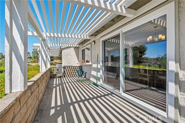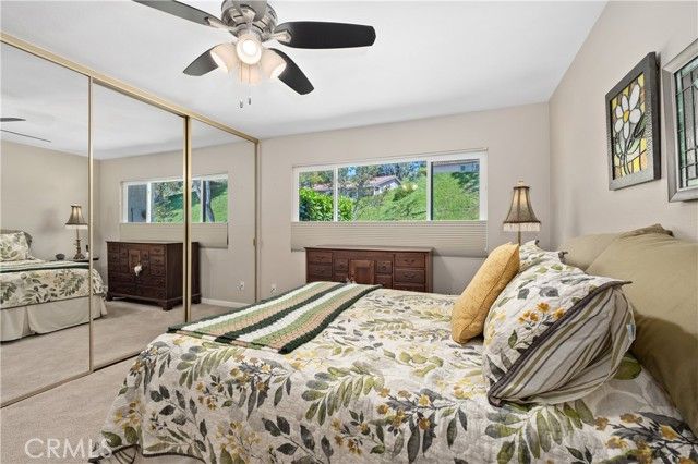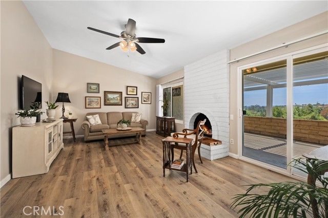 NOW AVAILABLE IN THE GATED 55+ COMMUNITY OF CASTA DEL SOL! This charming single-level residence is ideally situated at the end of a quiet cul-de-sac on a desirable single-loaded street, offering added privacy and PANORAMIC WESTERLY SUNSET VIEWS. Featuring 2 bedrooms, 2 bathrooms, and a direct-access single-car garage, this tastefully upgraded home blends comfort, functionality, and scenic beauty. Interior improvements include dual-pane windows and sliders, waterproof luxury vinyl flooring, completed plumbing re-pipe, scraped and textured ceilings, raised-panel interior doors, ceiling fans, and an updated HVAC system installed with permit. The inviting kitchen offers upgraded cabinetry, granite countertops, and stainless steel appliances. Both bathrooms have been remodeled with updated vanities, stone countertops, designer backsplash accents, and step-in tile showers. The spacious primary suite includes an en-suite bath, mirrored wardrobe doors, and plush carpet flooring, with matching carpet in the secondary bedroom. Additional highlights include a dedicated dining area and a generous living room with vaulted ceiling and raised-hearth gas/wood-burning fireplace. Step outside to a covered full-length rear patio overlooking low-maintenance grounds and breathtaking panoramic sunset views. The home also features a durable concrete tile roof and full Section 1 termite clearance for added peace of mind. Includes coveted Lake Mission Viejo membership, low 1.09% tax rate, No Mello-Roos, and access to all of the outstanding Casta del Sol HOA amenities!