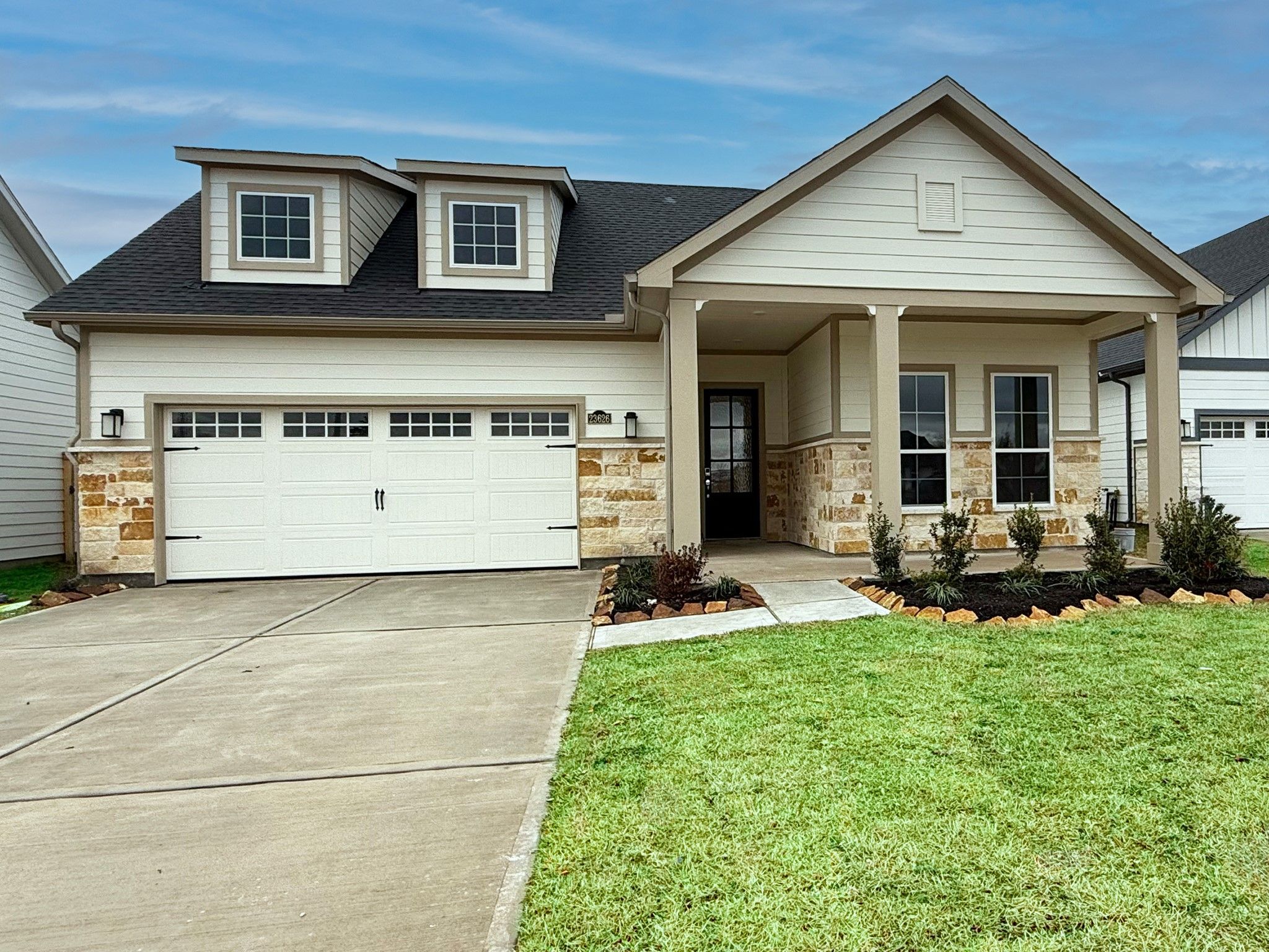 Welcome to Winfrey Estates! Tomball's first Active Adult, +55 community! The Portico plan features a single-level layout, ensuring accessibility and ease of mobility for residents. It features a generous floor plan with the perfect square footage, providing plenty of space for comfortable living. The design often incorporates open-concept living areas, allowing for seamless flow and easy navigation. Features such as wider doorways, step-free entry, and lever-handled doors contribute to accessibility. Modern amenities and energy-efficient appliances to enhance convenience and sustainability. Keyless Home Entry, Sprinkler System, Home Lawn Maintenance Front and Back. Residents of cozy 55+ patio homes for active adults can enjoy a lifestyle tailored to their preferences. The community may organize events and activities that cater to an active lifestyle, promoting social interaction and well-being.