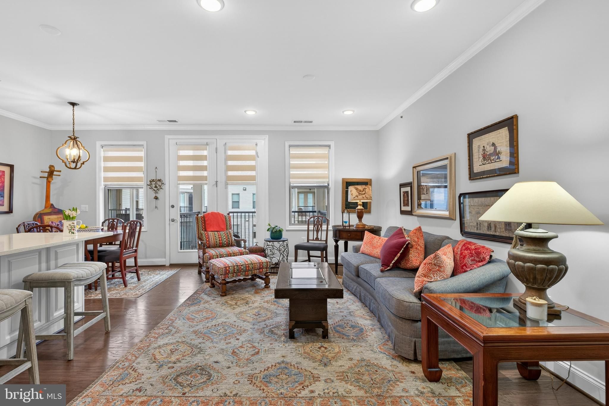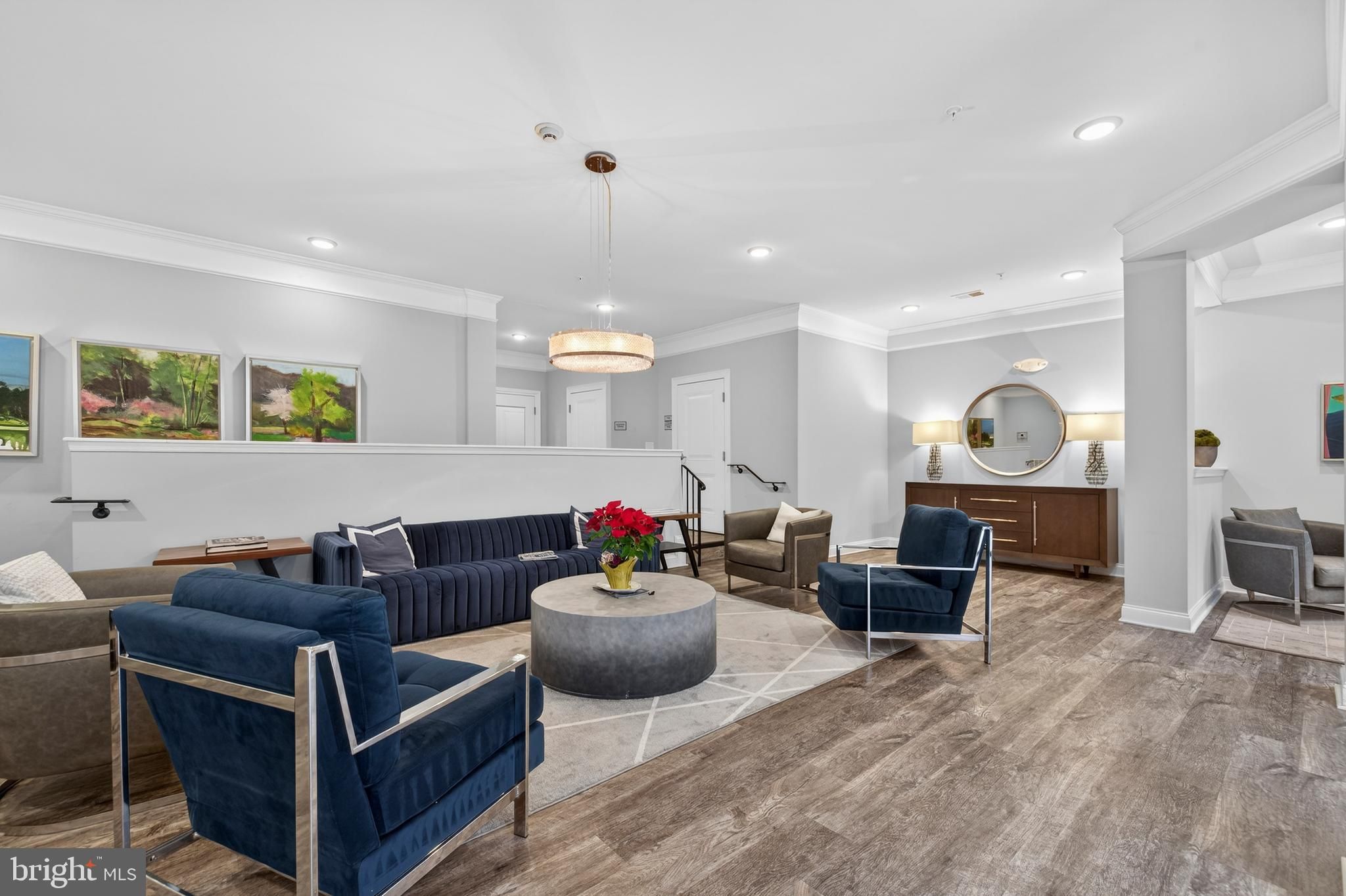 Welcome Home to Birchwood at Brambleton — Premier 55+ Luxury Living Experience refined, low-maintenance living in this stunning 2-bedroom, 2-bath condo with a private 1-car garage and driveway, perfectly positioned on the 4th floor with no neighbors above for ultimate peace and privacy. Flooded with natural light from its desirable south-facing balcony, this residence offers both comfort and sophistication. The gourmet kitchen is the heart of the home, featuring quartz countertops, stainless steel appliances, an oversized island perfect for entertaining, recessed and pendant lighting, and a spacious pantry. The open-concept layout flows seamlessly into the dining and living areas, highlighted by rich hardwood floors, crown molding, and charming alcove windows that add architectural character. Retreat to the spacious primary suite with custom closet organizers and a beautifully appointed bath. A generous second bedroom and full bath provide flexibility for guests or a home office. You’ll also appreciate the rare bonus of a dedicated in-unit laundry room with full-size washer and dryer. Step outside to your private balcony and enjoy serene, sun-filled views — the perfect spot for morning coffee or evening relaxation. Additional conveniences include scenic walking trails, a community room with kitchenette, pet-friendly mud room, and a trash room conveniently located on your floor. Resort-Style Amenities Include: Magnificent clubhouses, indoor & outdoor pools, demonstration kitchen, theater & game rooms, health and wellness center, art studio, golf simulator, social gathering spaces, biking & walking trails, pickleball & bocce courts, greenhouse & garden area, and a fishing pier (catch & release). Ideally located just minutes from Dulles Airport, Metro access, shopping, dining, and medical facilities. Condo fees include Verizon TV & Internet and Water. This is more than a condo — it’s a lifestyle.