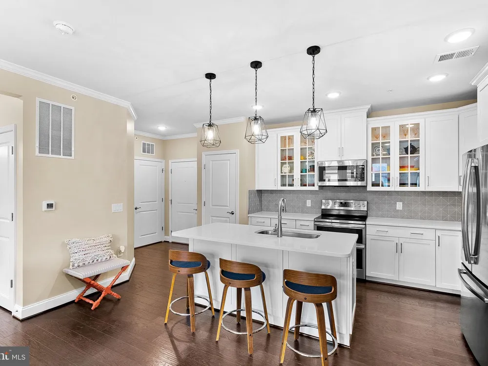 Welcome home to Birchwood at Brambleton, a premier 55+ active adult community where this lovely 2-bedroom, 2-bath condo with 1-car garage (G35) and driveway offers stylish comfort and low-maintenance living. Located on the 4th floor with no neighbors above, the home offers peace, privacy, and abundant natural light from its south-facing balcony. Features include a beautiful kitchen with quartz countertops, stainless steel appliances, large island, recessed and pendant lighting and pantry. But wait, there’s more—hardwood floors, crown molding, charming alcove windows, custom closet organizers, and even your own in-unit washer/dryer/laundry room. Additional conveniences include scenic walking trails, a community room with kitchenette, pet-friendly mud room, and trash room on your floor. Amenities include Magnificent Club houses, Indoor and Outdoor Pools, Demonstration Kitchen, Theater and Game rooms, Health and Wellness Room, Art Studio, Golf Simulator, Social Gathering areas, Biking & Walking Trails, Pickleball & Bocce Ball Courts, Green house & Garden area, Fishing Pier for public access (catch & release only). All just minutes from Dulles Airport, Metro, shopping, dining, and medical facilities. Condo fees include Verizon TV & Internet, Water.