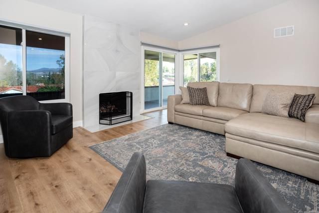 Beautifully remodeled 2-bedroom, 2-bath home featuring an open, spacious, light-filled floorplan with exceptional views and privacy. Luxury vinyl plank flooring flows throughout, complemented by neutral paint and vaulted ceilings with a stunning living room beam. The inviting living space showcases a tiled fireplace and custom entertainment center, creating a warm and stylish focal point. The chef’s kitchen is both elegant and functional, offering stainless steel appliances, custom cabinetry with under-cabinet lighting, a marble backsplash, quartz countertops, and a pantry for added storage. The spacious primary suite includes built-in closet storage and a spa-inspired bathroom with dual vanities and a large walk-in shower. The secondary bathroom has been recently remodeled with custom shower tile finishes. Additional highlights include newer windows with Hunter Douglas remote-controlled shades, abundant closet storage in both bedrooms, new garage storage cabinets, and a secure locked storage unit adjacent to the garage. Enjoy seamless indoor-outdoor living with a full-length backyard patio, new patio cover, and private panoramic views. Situated on an expansive cul-de-sac lot, the home offers exceptional privacy and a premium location. Located within the highly desirable Casta del Sol community, residents enjoy resort-style amenities including multiple pools, a fitness center, recreation and billiard rooms, library, craft rooms, BBQ areas, fire pits, a wide variety of clubs and activities, and exclusive access to Lake Mission Viejo.