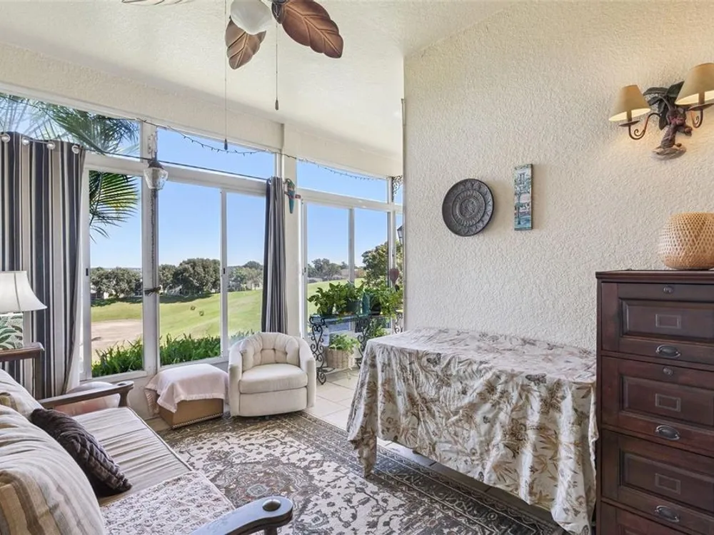 ***RARE FIND IN CLERMONT***HIGHEST POINT IN SUMMIT GREENS***ACTIVE ADULT COMMUNITY***This 2 bathroom/2 bathroom/Den-Office home sits at the highest point of Summit Greens with unobstructed picturesque views that go on for miles and miles. It is also on the 17th fairway of the Clermont National golf course. ROOF replaced 2023, AC 2022 w/GAS FURNACE, NEW Dishwasher 2022, NEW Microwave 2024, NEW Refrigerator 2024 & comfort height toilets in both bathrooms. The glass enclosed lanai with dual-paned windows, literally has a bird's eye view, with a panoramic view of the most unbelievable sunrises. Another wonderful feature of the home is it located towards the end of a culdesac street, so no drive through traffic. HOA includes fast internet with spectrum, lawn cutting/fertilization/turf pesticide application, shrub trimming, maintenance of sprinkler system. Outstanding clubhouse and amenities, including brand new pickle ball courts, very active tennis group playing on Har Tru tennis courts, indoor and outdoor swimming pools, saunas, well equipped fitness room, tons of clubs and scheduled events/activities with an onsite activities director! The Clermont area is highly sought after due to it's rolling hills and it's close proximity to the turnpike, airport, beaches, all the theme parks, the beautiful lakes and the S. Lake trail for all the cyclists, runners and walkers to enjoy; Clermont is nicknamed "Choice of Champions" for a reason!!