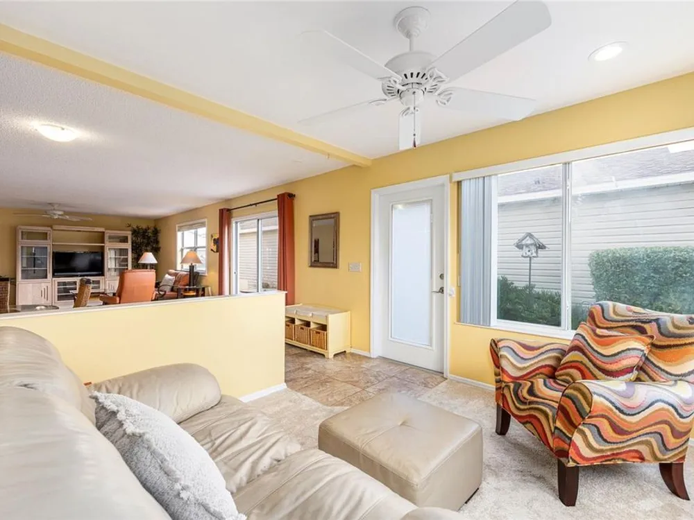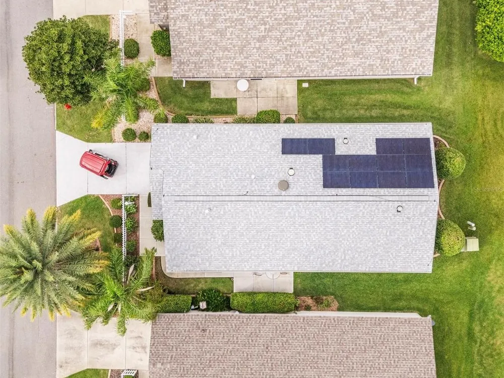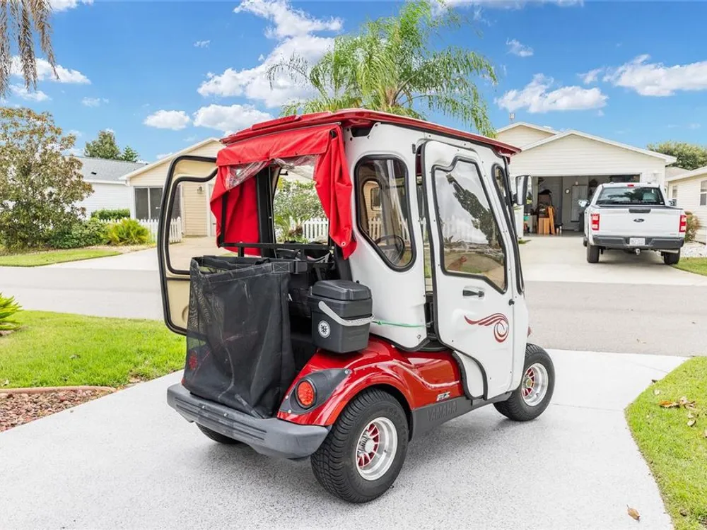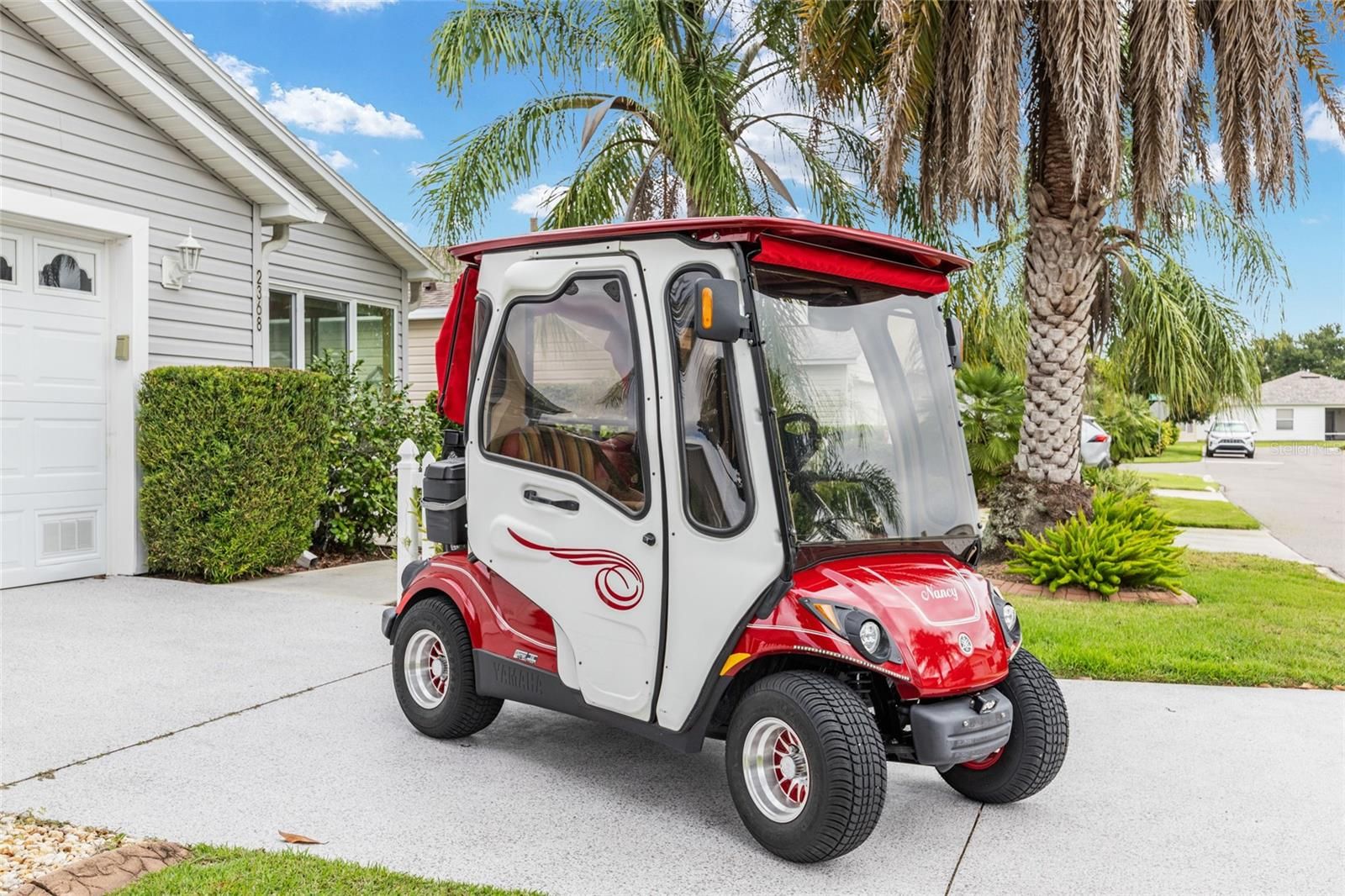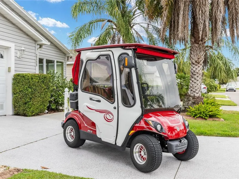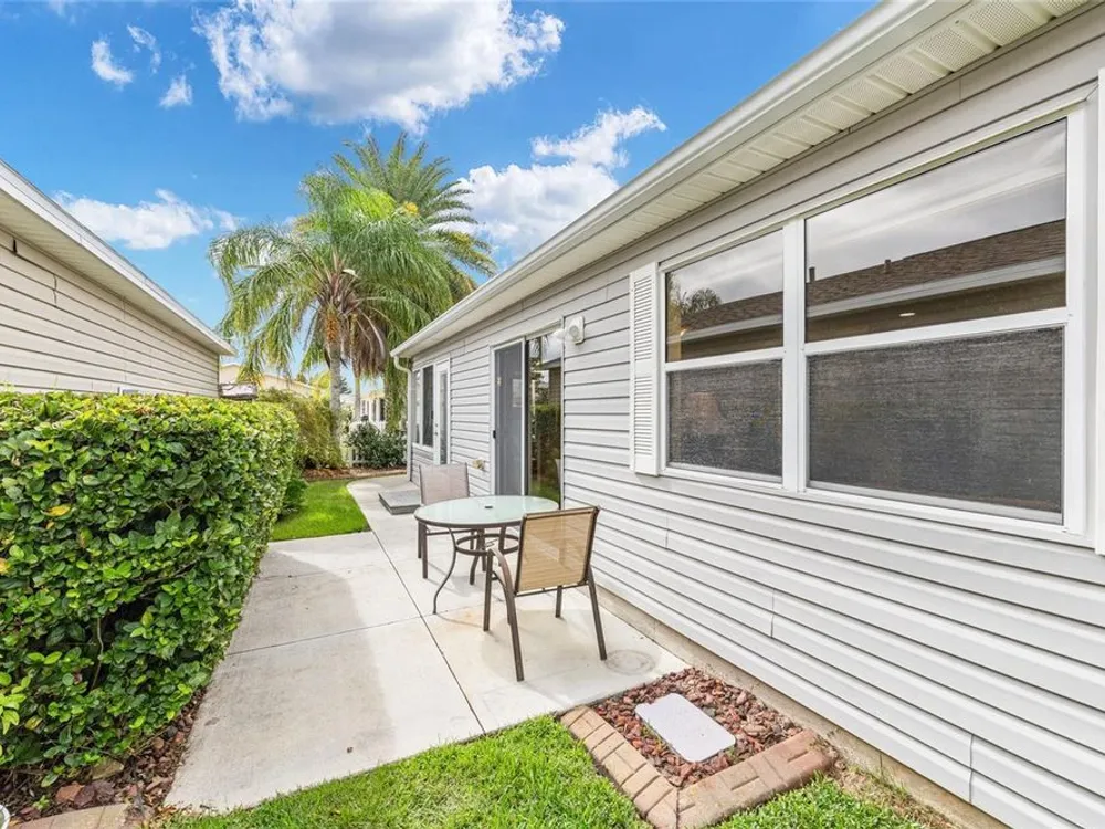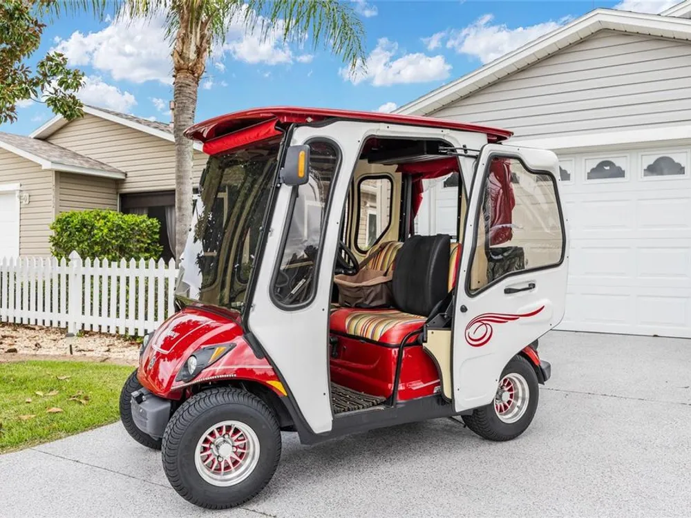 Welcome to the charming Village of Duval! This beautifully maintained Cabot Cove Patio Villa is being offered TURNKEY, complete with a 2011 Yamaha gas golf cart with enclosures, making it the perfect Florida retreat. This home features natural gas, a new roof (2021), electric HVAC (2014), solar panels installed in 2025, a gas water heater (2018) and Quantum Fiber. It also boasts lightning rods and a whole-house Nova water filtration system for added peace of mind. The exterior shines with a painted concrete driveway, professional landscaping, and gutters and downspouts for easy maintenance. Inside, you’ll find an added den/study, giving you extra square footage for flexible living—ideal as an office, craft room, or cozy reading nook. The open floor plan includes inside laundry and a huge pantry, and the home is filled with natural light thanks to three solar tubes in the kitchen and bathrooms. The dining and living areas open to a lovely outdoor patio through sliding glass doors—perfect for enjoying the Florida lifestyle! The primary suite features a spacious walk-in closet, a private water closet, and even a bidet for a touch of luxury. The guest bathroom offers a convenient tub/shower combo. Need storage? The garage is fully equipped with epoxy flooring, custom cabinets, and a built-in workbench. Not Far From Activities! Lake Sumter Market Square™ 3.4M, Brownwood Paddock Square™ 4 M, Duval Adult Pool and Mail Station .4M!! This home is packed with extras and ready for you to move in and enjoy. Don’t miss the drone video tour included with the listing.