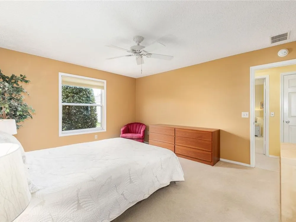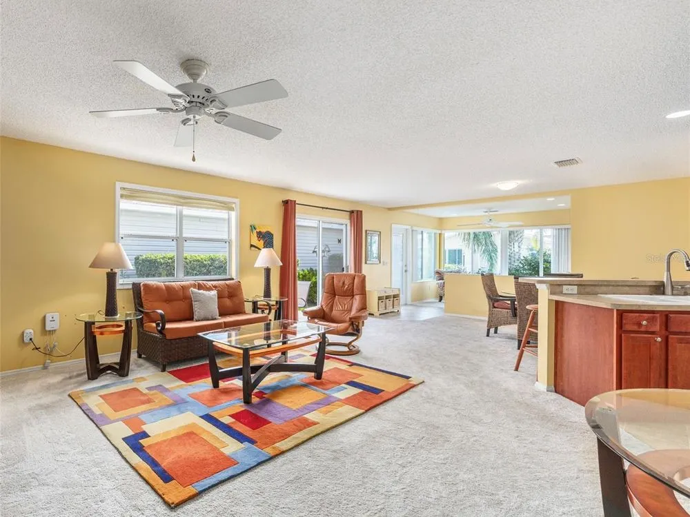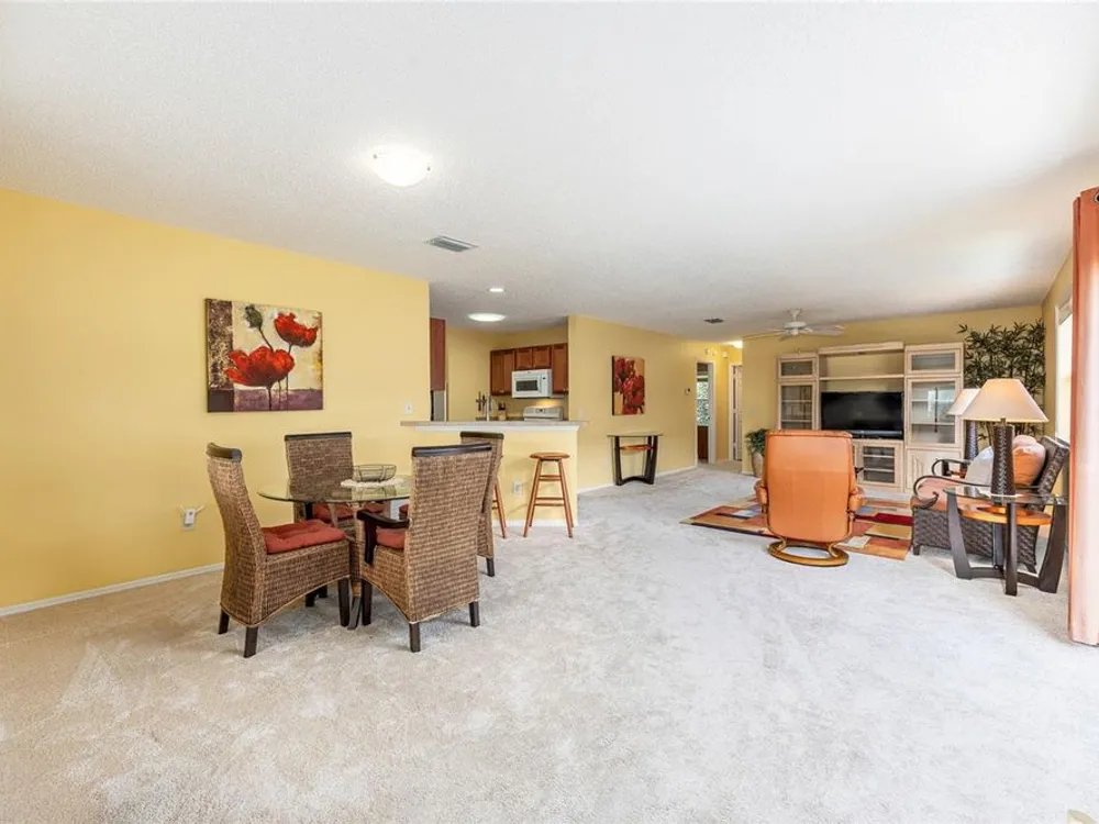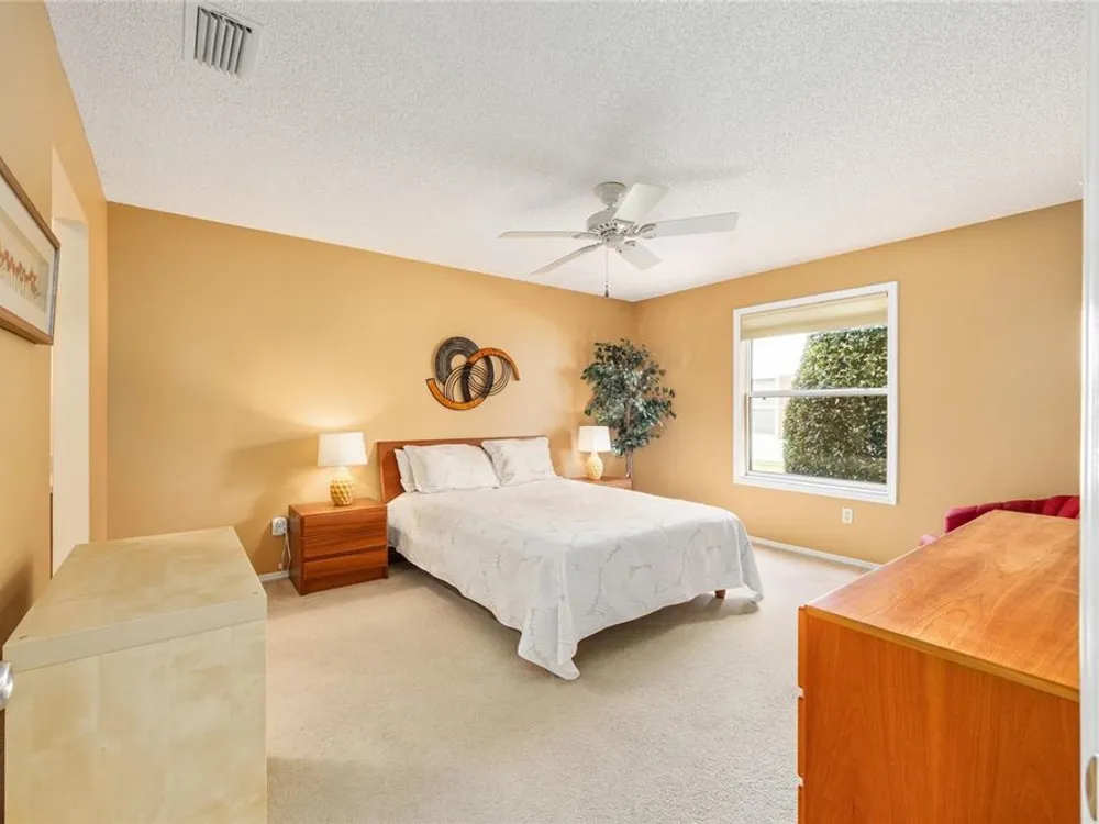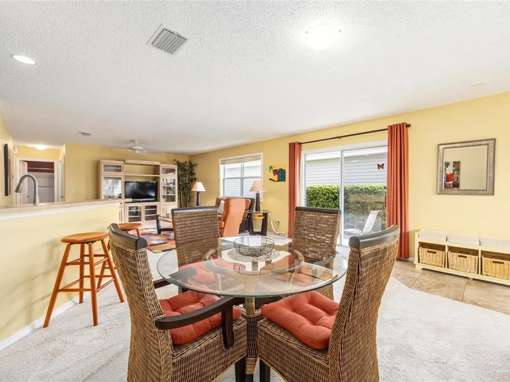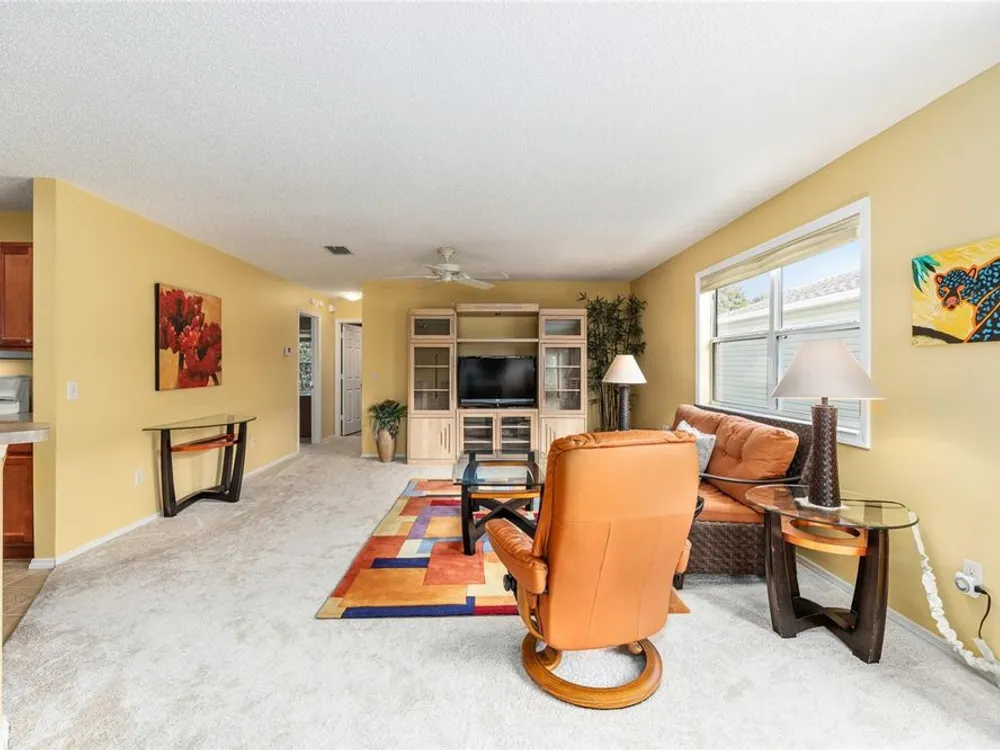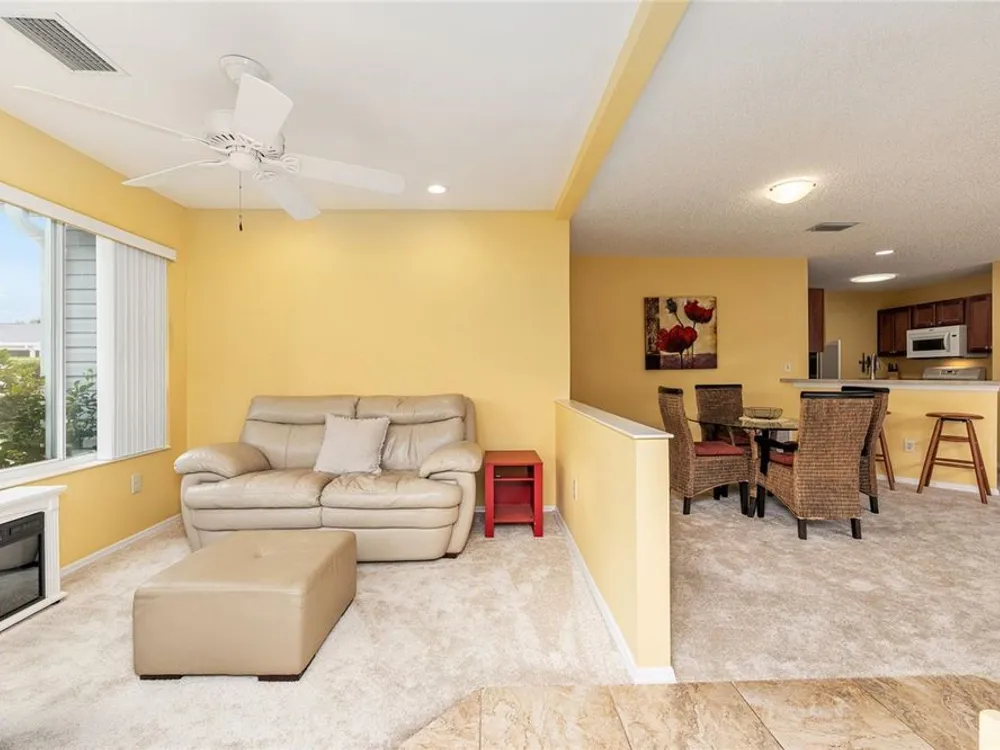 Welcome to the charming Village of Duval! This beautifully maintained Cabot Cove Patio Villa is being offered TURNKEY, complete with a 2011 Yamaha gas golf cart with enclosures, making it the perfect Florida retreat. This home features natural gas, a new roof (2021), electric HVAC (2014), solar panels installed in 2025, a gas water heater (2018) and Quantum Fiber. It also boasts lightning rods and a whole-house Nova water filtration system for added peace of mind. The exterior shines with a painted concrete driveway, professional landscaping, and gutters and downspouts for easy maintenance. Inside, you’ll find an added den/study, giving you extra square footage for flexible living—ideal as an office, craft room, or cozy reading nook. The open floor plan includes inside laundry and a huge pantry, and the home is filled with natural light thanks to three solar tubes in the kitchen and bathrooms. The dining and living areas open to a lovely outdoor patio through sliding glass doors—perfect for enjoying the Florida lifestyle! The primary suite features a spacious walk-in closet, a private water closet, and even a bidet for a touch of luxury. The guest bathroom offers a convenient tub/shower combo. Need storage? The garage is fully equipped with epoxy flooring, custom cabinets, and a built-in workbench. Not Far From Activities! Lake Sumter Market Square™ 3.4M, Brownwood Paddock Square™ 4 M, Duval Adult Pool and Mail Station .4M!! This home is packed with extras and ready for you to move in and enjoy. Don’t miss the drone video tour included with the listing.