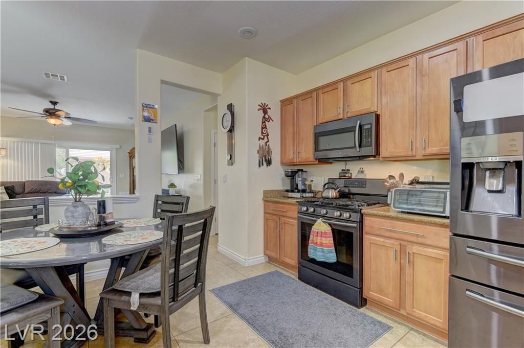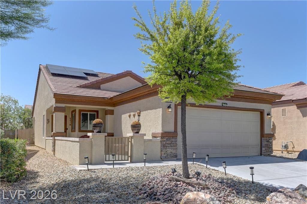 Beautiful home in the highly desirable Sun City Aliante community, featuring the popular Heather model and an open-concept floor plan. This home includes all appliances, a charming front courtyard patio, and a fully fenced backyard with a covered patio—perfect for relaxing or entertaining. Enjoy resort-style living with access to a recreation center offering state-of-the-art fitness equipment, an indoor pool, tennis courts, and a wide variety of classes, clubs, and social activities. The community also features a public golf course and is conveniently located near shopping, dining, casinos, and major highways. This will not last!!!