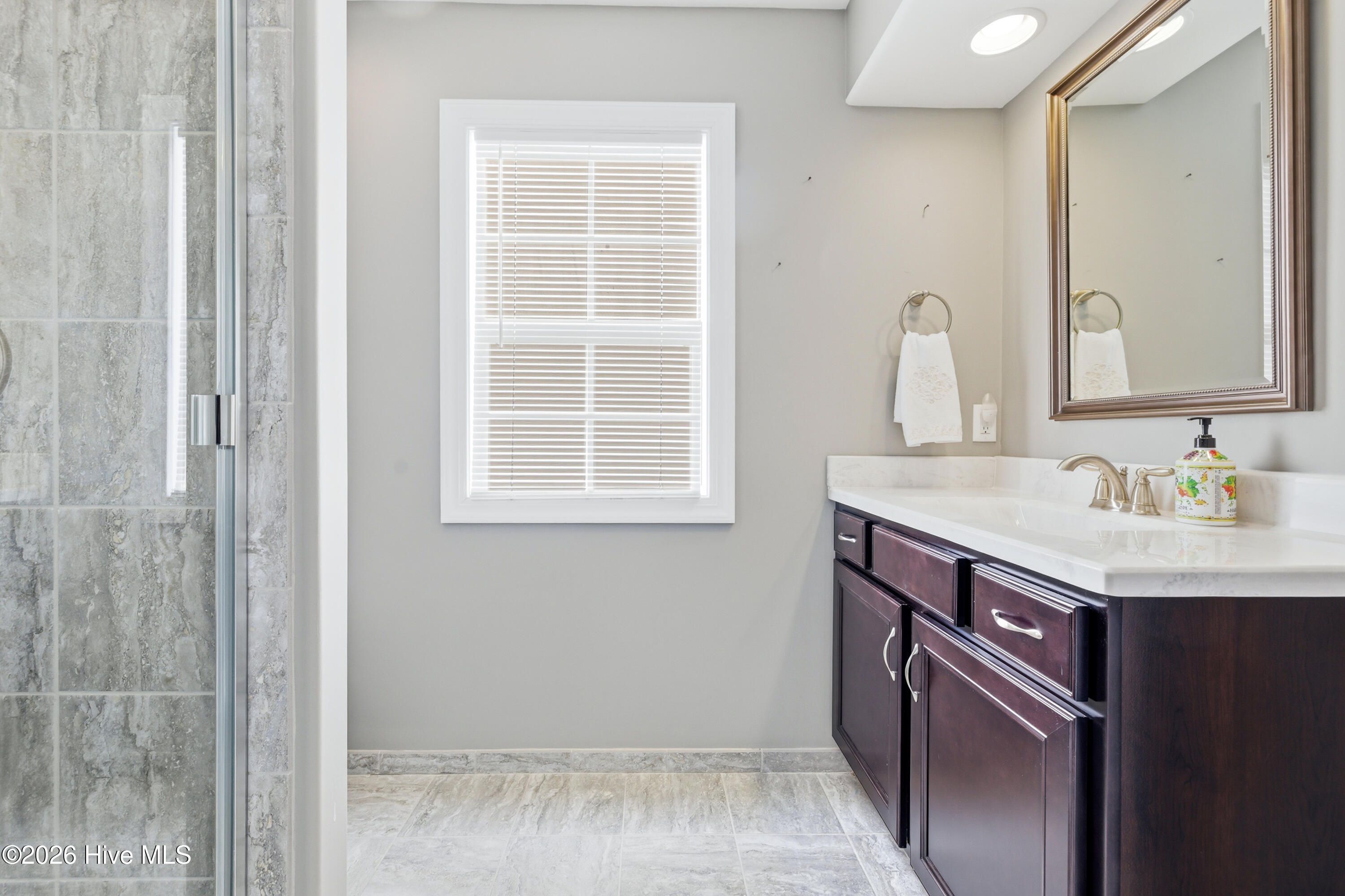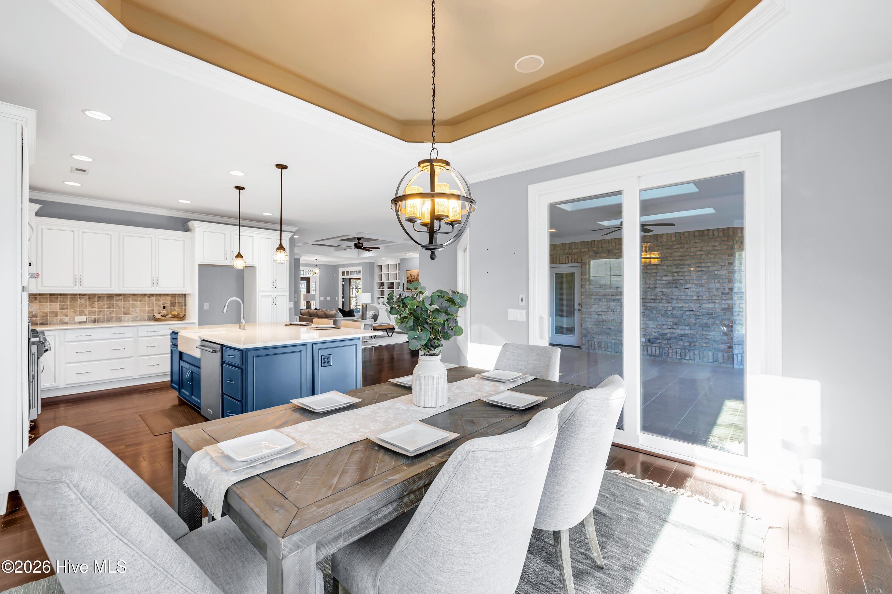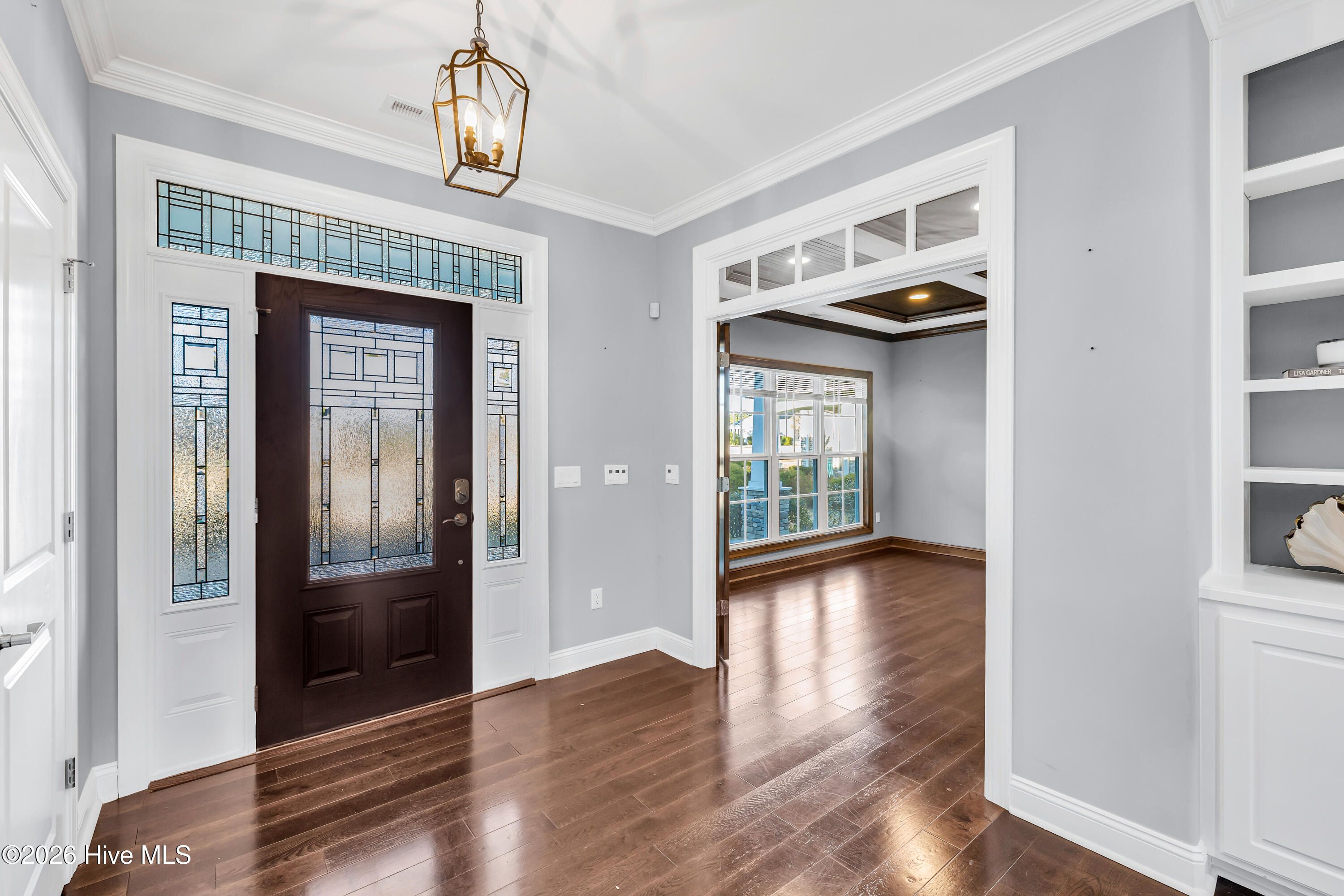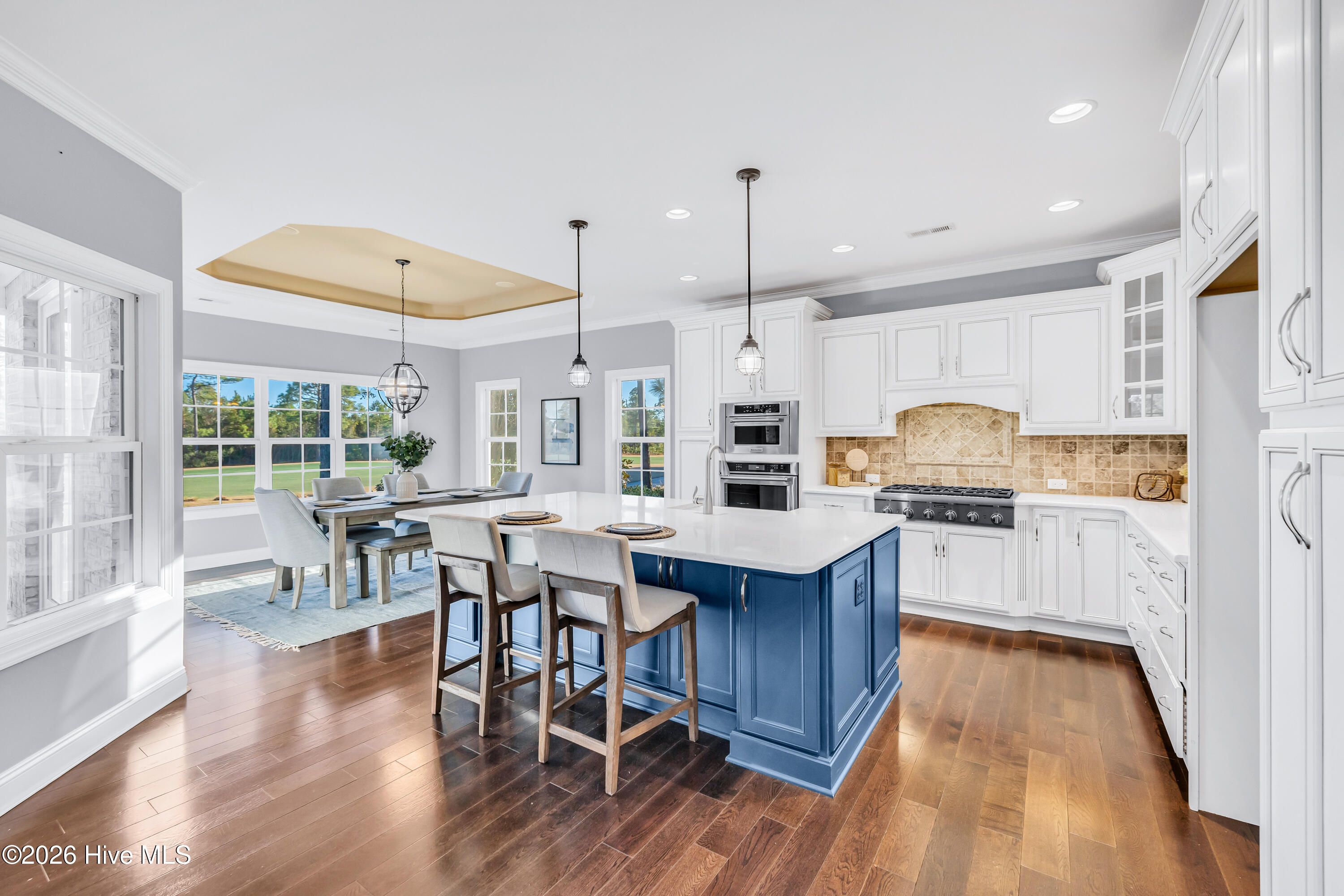 - Master Downstairs, Walk-In Closet(s), Tray Ceiling(s), High Ceilings, Entrance Foyer, Bookcases, Kitchen Island, Ceiling Fan(s), Walk-In Shower, Blinds