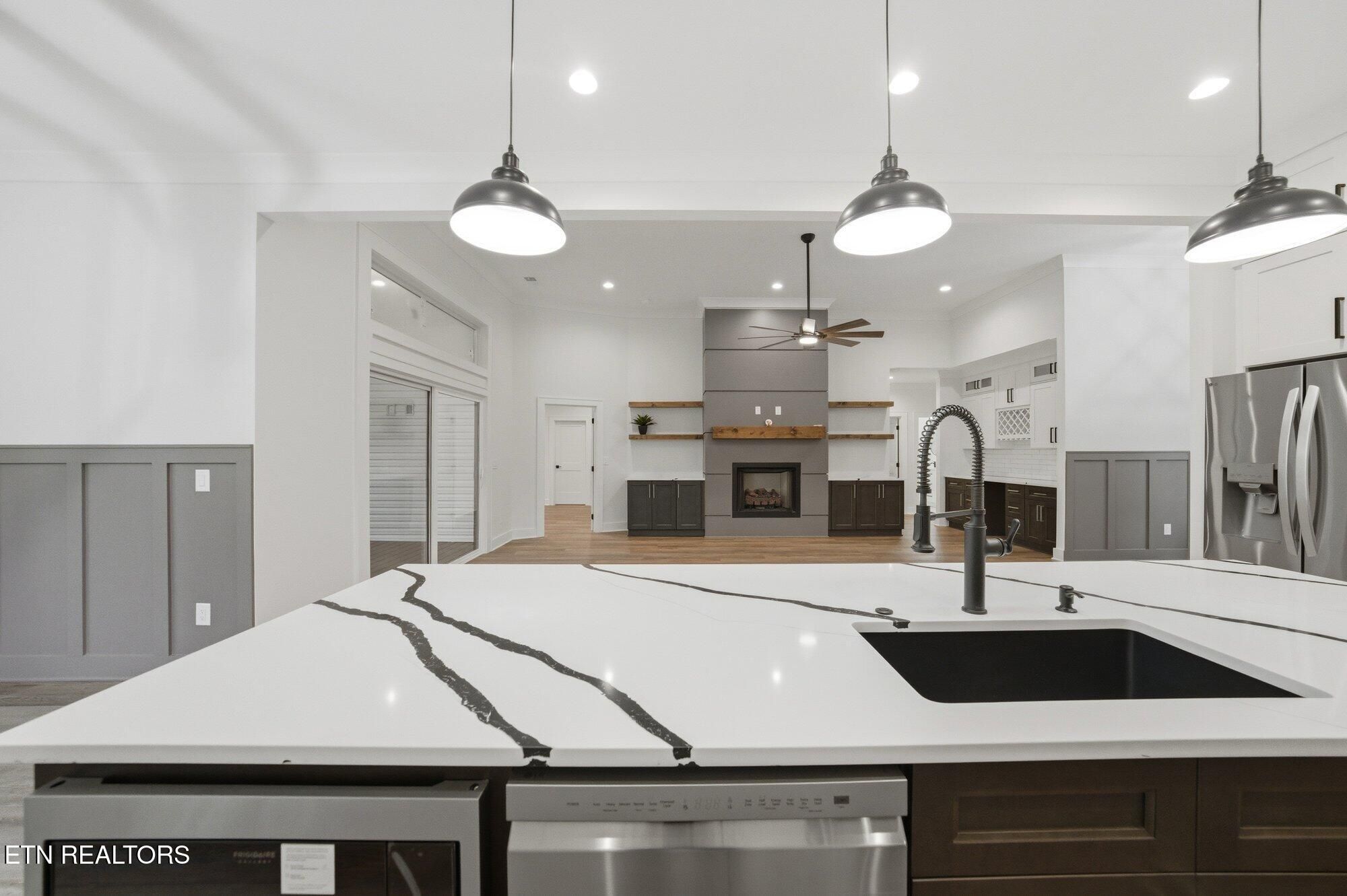 Welcome to Your Dream Home! Packed with builder upgrades from the moment you step in the driveway! Featuring 3 bedrooms, an office and desirable open floor living area, this home is a true standout. The exterior showcases a charming blend of brick and Stone & viny siding, enhancing the home's curb appeal. Offering 2,050 sqft of meticulously designed living space, this home features an open-concept layout filled with natural light and stylish finishes throughout. The grand foyer area features beautiful trim work, a tiled entry area, and a charming light fixture. Spacious Great Room serves as the heart of the home, featuring elegant cabinetry, beautiful countertops, a floor-to-ceiling modern design gas fireplace, along with a 12 foot ceiling that creates an open and inviting layout. Gourmet kitchen is a chef's dream, with beautiful countertops and backsplash, white and dark brown cabinetry, SS appliances, gas stove, and ample cabinet space. Large master suite boasts high ceilings with an accent wall and a spa-like spacious bathroom with double vanities, walk-in shower, freestanding tub, and stunning custom tile work. Each closet is equipped with custom built-in shelving, offering both organization and luxury. Office with more cabinets and a stationary desk. Laundry room features generous cabinet space and a convenient sink, Seller purchased a brand-new LG washer and Dryer installed and ready to use that will go with the Home. Luxurious wide-plank LVP flooring flows seamlessly throughout the home, enhancing its beauty and functionality. Outside, black windows, extra Large storage space in the crawlspace, concrete all under back porch for more outdoor living, large back yard with common property on the back on property for more privacy while professionally landscaped grounds include an irrigation system and a spacious porch, perfect for outdoor living. This exceptional home offers both style and comfort! Don't miss out, schedule your showing today. Buyer to reimburse Seller at closing the one-time Loudon County Impact tax 1.00 dollar per finished sqft