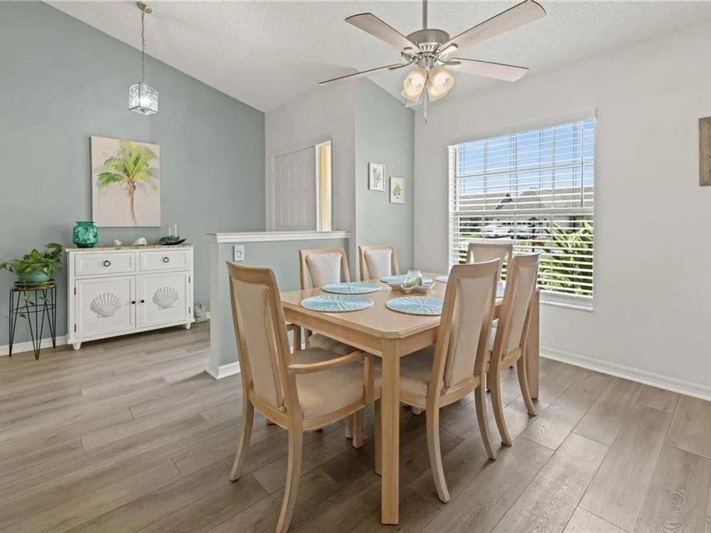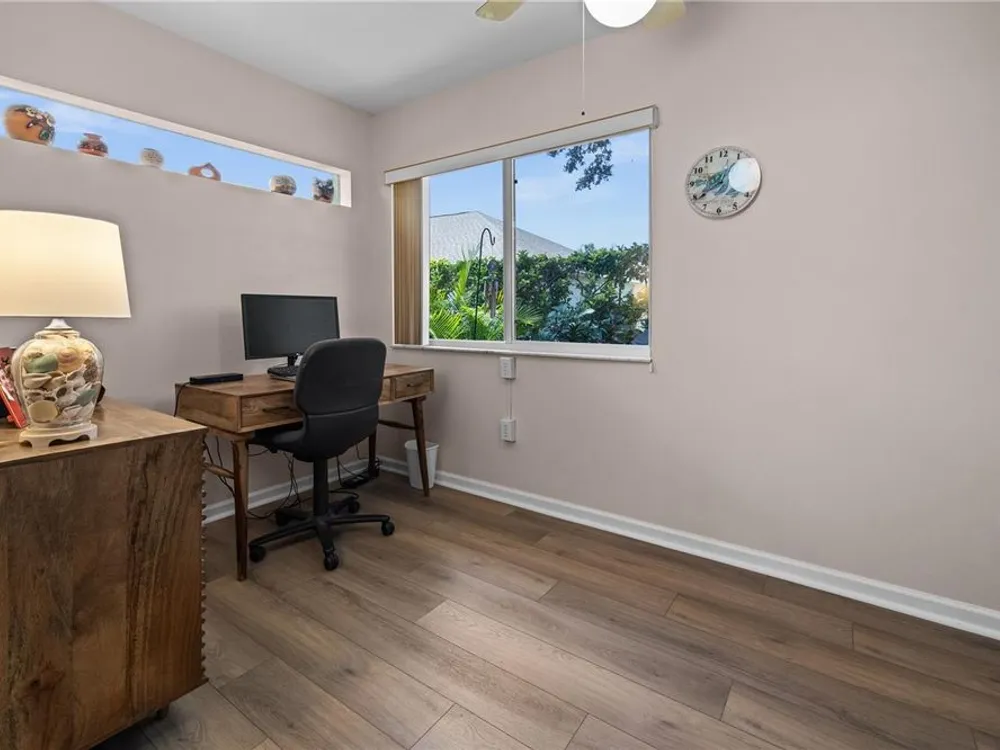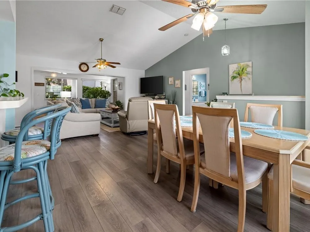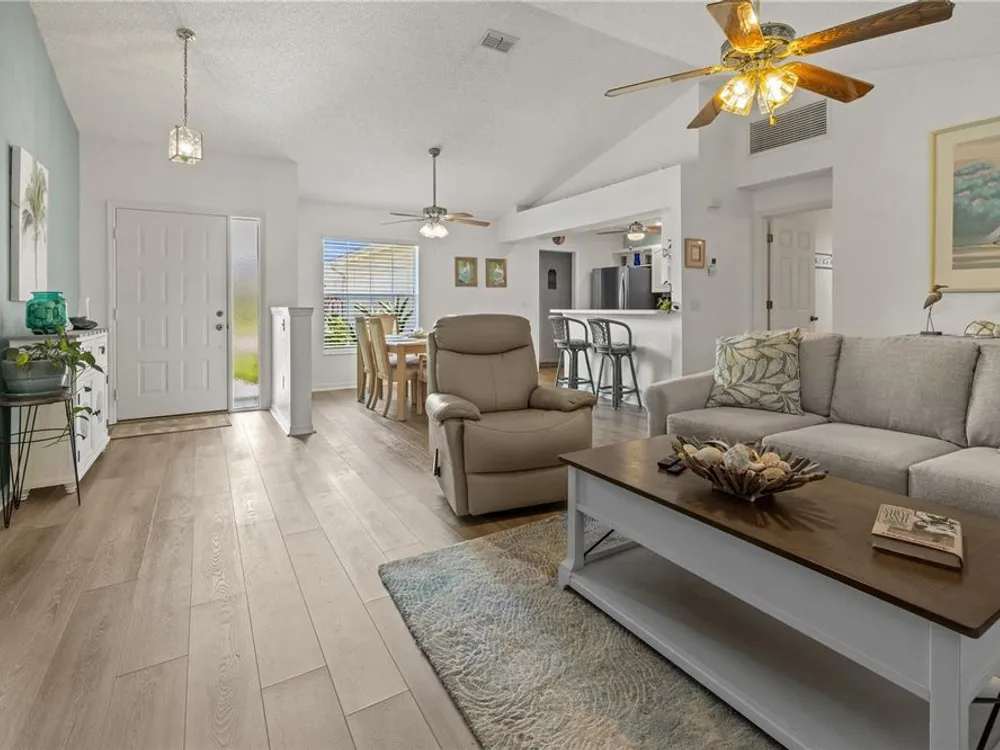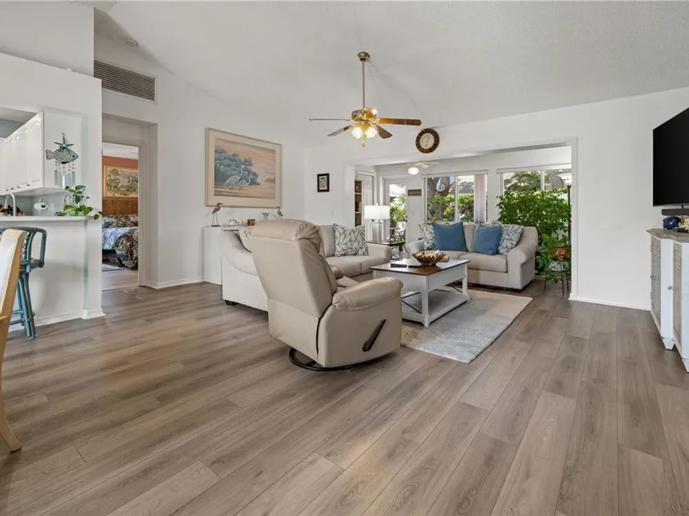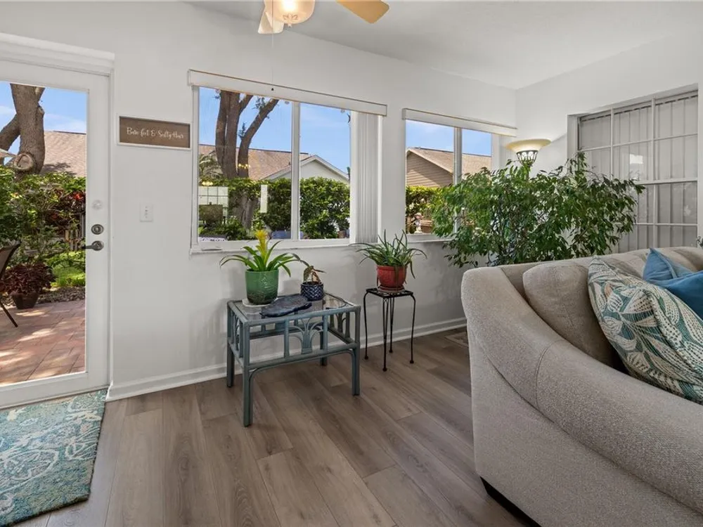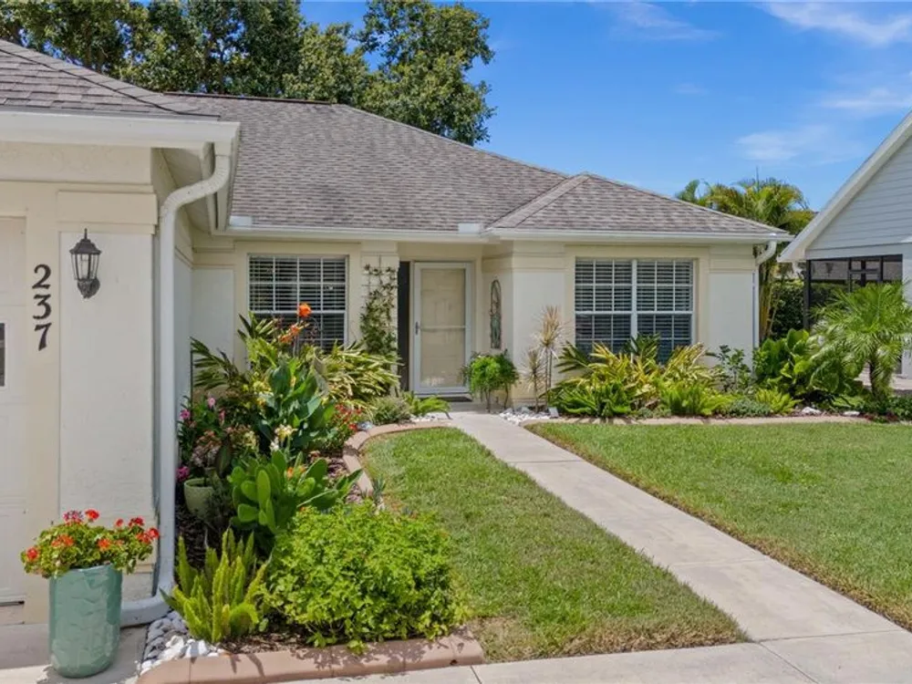 New Price! Live where every day feels like vacation—close to Manasota Key, Boca Grande, Venice & Casey Key, with shops, dining, and Dearborn Street just around the corner! Discover your own private oasis in this beautiful home, nestled in one of Englewood’s most sought-after 55 plus communities. Step inside and be welcomed by an open, airy floor plan featuring vaulted ceilings, luxury vinyl plank flooring, and fresh coastal-inspired colors that instantly evoke the feel of a beachside retreat. At the heart of the home, the chef’s kitchen impresses with modern cabinetry, newer stainless-steel appliances and a pantry. The kitchen flows seamlessly into the dining and great room, with a breakfast bar for additional casual dining and easy entertainment. The primary suite offers a true escape, complete with a private office or sitting area, dual closets, and a spa-like bathroom featuring a double-sink vanity and a walk-in shower. A smart split-floor layout provides privacy with two additional guest bedrooms, a full guest bathroom, plus a versatile Florida room. Your private backyard oasis awaits—lush, tropical vibes set the perfect stage for relaxed outdoor entertaining. This beautifully landscaped backyard is the ideal setting for cozy gatherings, al fresco dining, and laid-back Florida evenings. Other improvements include an energy efficient HVAC (2024), water heater (2021) and disposal (2025). No Flood Insurance Required. As part of the HOA community, you'll enjoy fantastic amenities: a pool and spa, tennis and shuffleboard courts, and a clubhouse for social events and gatherings. The HOA takes care of lawn maintenance, exterior repainting every 7 years, and reroofing every 17 years—offering a truly carefree lifestyle.