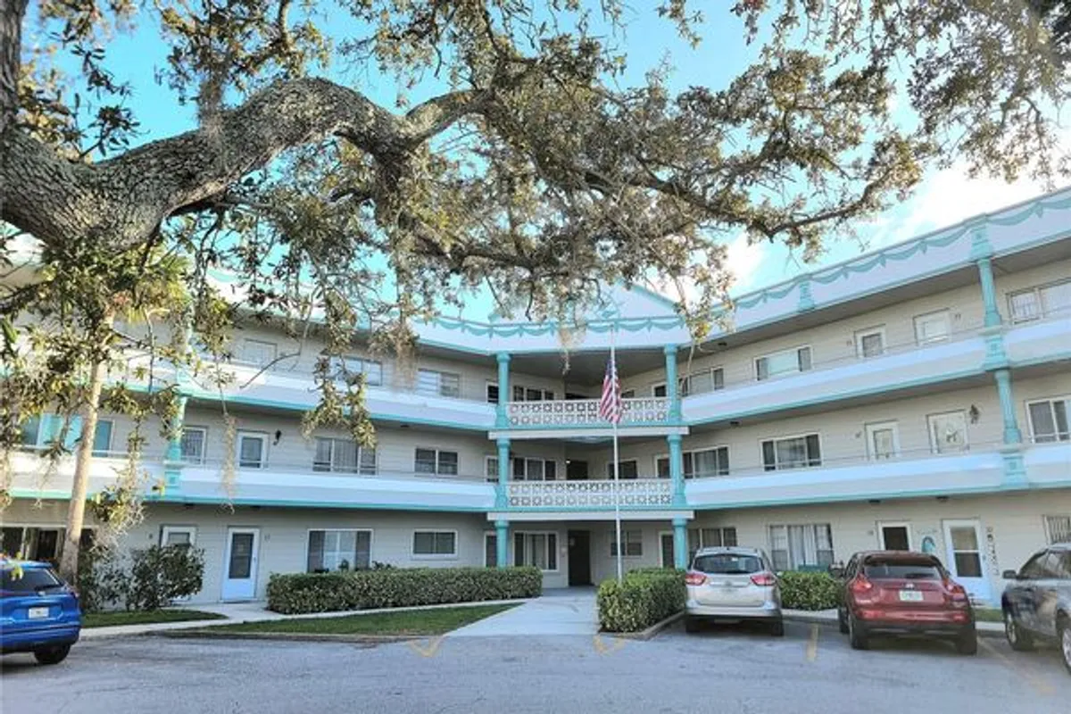 Light, bright, and move-in ready! This second-floor 1-bedroom, 1-bath condo offers a well-designed layout with comfortable living space and abundant natural light. Ideal as a full-time residence or seasonal retreat, conveniently located near shopping, dining, and Clearwater's beautiful beaches. Assigned parking. The 55+ community has two activity centers, and two private golf courses with 9 and 18 holes, free exclusively for resident owners. There are two heated swimming pools. The remodeled Cardio Gym has the latest exercise equipment. A very pet-friendly community, there is a fenced dog park with covered seating. There are hobby studios, and a wood shop for the exclusive use of the residents. Activities include fitness classes, dancing, clubs, cards, billiards, entertainment, classes, and much more. The on-site Good Karma Café has take & bake meals and snacks. Close to beaches, transportation, shopping, entertainment, and fine dining. All room sizes, floor plans and square footage are approximate. This property is being transferred by a leasehold estate deed. Association approval is required. If financing, a 35% down payment is required.