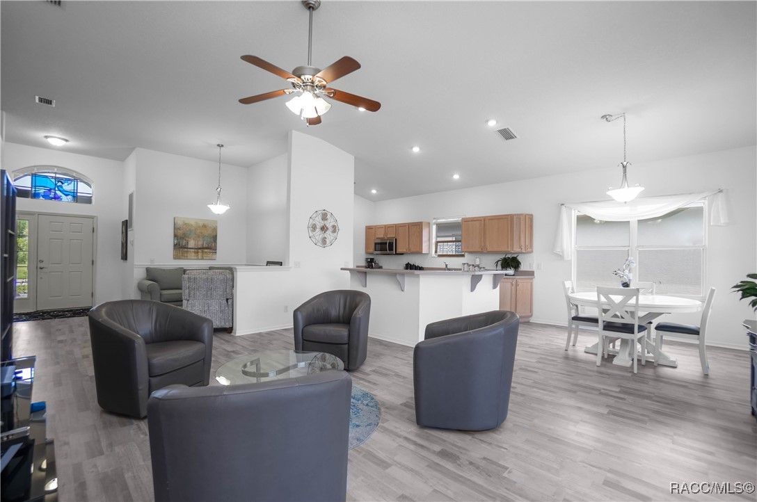 Beautifully maintained 3BR/2BA/2-car garage home in the desirable Brentwood of Citrus Hills! Upgrades include a NEW roof (2023), NEW AC (2023), updated vinyl plank flooring, and a renovated guest bath with sleek walk-in shower & glass doors. The primary suite features a walk-in closet and sliding glass doors to the lanai, where you’ll enjoy gorgeous golf course views. Just a short walk to the pool and golf clubhouse! HOA covers roof, exterior paint & lawn care. Includes membership to Citrus Hills Golf & Country Club with pools, tennis, fitness, golf, dining & more. (Quiet residential street - no through traffic). Florida living made easy—move right in!