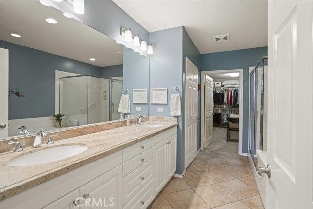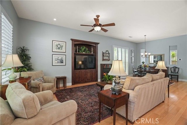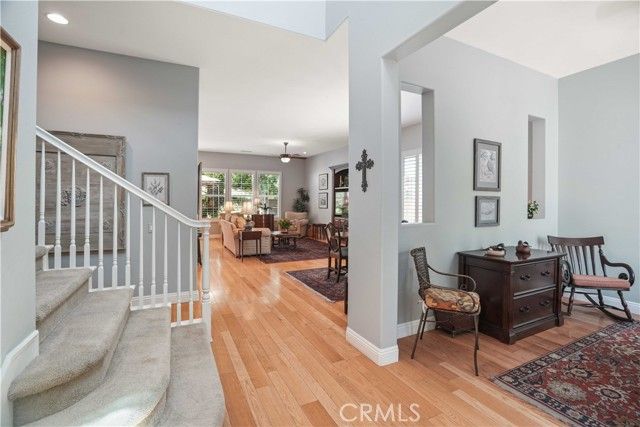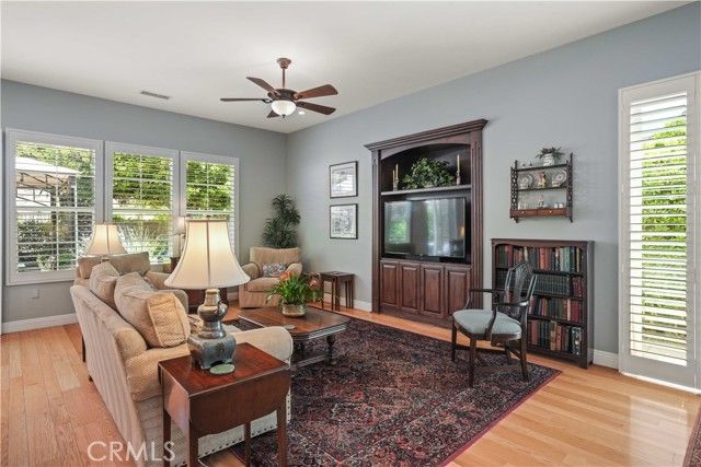Welcome to a stunning Belcaro home, an elegant 55 + guard-gated community featuring resort-style amenities. No Mello Roos! This residence is a remarkable find, designed to function like a single-story home with all essential living spaces conveniently located on the first floor. Gated courtyard entry with a tranquil fountain and seating area to great you. The spacious primary bedroom on the main floor features an expansive walk-in closet, direct access to a serene lushly landscaped backyard, and an ensuite bathroom equipped with dual vanities, a walk-in shower, and a soaking tub. Additionally, it offers a guest bedroom, bathroom, and a spacious loft suite on the second floor, providing a private area perfect for visiting relatives or a live-in caregiver. The main living area boasts an open-concept design that seamlessly integrates the family room, dining area, kitchen, and office/den. Neutral tile flooring, plantation shutters, custom paint, recessed lighting and other gorgeous upgrades! The first floor also includes a laundry room, a guest bath, and easy access to the attached two-car garage. Shows Immaculate and very sunny and bright interior. Exceptionally private and larger backyard than normal with no house or rear neighbors. This backyard is designed for outdoor eating and entertaining with a gazebo and the garden enthusiast. The community amenities encompass a guard-gated entrance, a private clubhouse offering a variety of scheduled social activities, a BBQ area with an outdoor fireplace, a pool, a spa, bocce and pickleball courts, a community garden, and a library. The clubhouse and various amenities offer countless chances for fun and relaxation. With a prime location close to walking trails, shopping, dining options, and the 5 freeway.