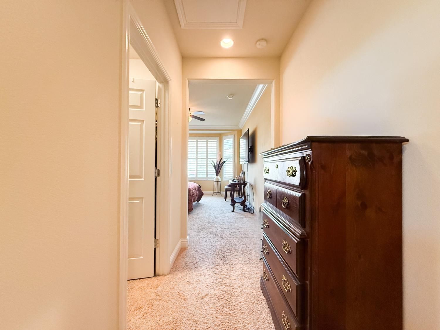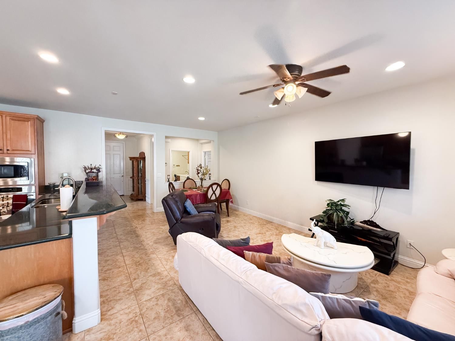Welcome to 2372 Shadow Berry Dr. in Manteca, located in the sought-after Del Webb 55+ community. This 2-bedroom, 2-bath home offers 1,350 sq. ft. of living space. The kitchen features quartz countertops, bar seating, a walk-in pantry, and an extended counter with a built-in desk area. Appliances include an electric oven, gas cooktop, hood over range, dishwasher, disposal, microwave, refrigerator and is plumbed for an ice maker. The primary bedroom features a bay window and crown molding, along with an en-suite bath. Flooring throughout the home is a combination of carpet and tile. The laundry room is equipped with cabinetry, a sink, and a storage closet. Enjoy a covered patio with ceiling fan and an extended stamped concrete patio. Both the front and backyards are landscaped for easy upkeep. Located near the clubhouse, residents have access to a wide range of amenities including a pool, spa, fitness center, pickleball and tennis courts, putting greens, recreation facilities, parks, and organized activities. Close to shopping, parks, and freeway access. Manteca, known as the Gateway to the Central Valley,' offers a welcoming community with a rich history, tree-lined streets, and a growing selection of local eateries, farmers' markets, and recreational options. All inspections (home, roof, and pest), including seller disclosures, are available for your review upon request. The seller has obtained a clear roof report and wood-destroying pest inspection, making this truly a turnkey opportunity.