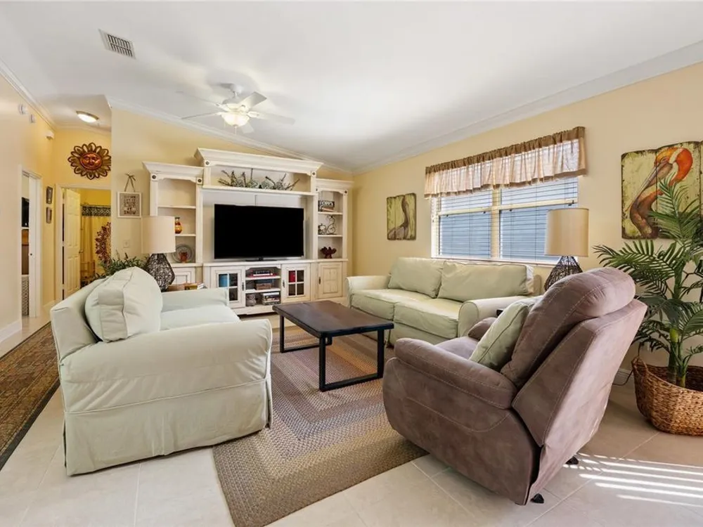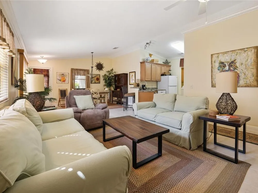 WHAT A GEM! This lovely, partially furnished, 2 bedroom 2 bath patio villa is in the Village of Duval in Crestwood Villas, which offers total convenience to living in The Villages. NEW ROOF 2022, A/C 2016 and did I mention gas GOLF CART included? In 2014, the owners, which only occupy the home part time as snowbirds, did a complete RENOVATION making this villa truly stunning; crown molding, removed popcorn ceiling, new flooring throughout, entire interior painted, installed top of the line cabinetry in the kitchen, soft close drawers, washer in 2024, both refrigerators have been replaced in the past couple years, the upgrades are never ending! Location truly is everything, and this home delivers the best of both worlds! Imagine stepping out your front door and being just a stone's throw from the refreshing Duval Pool. SeaBreeze Sports Pool & Recreation Center awaits, offering an array of activities and amenities to keep you active and entertained. Beyond your immediate surroundings, this villa provides unparalleled access to The Villages' most beloved town squares: Lake Sumter Landing Market Square is just a 10-minute drive away. Enjoy concerts with friends, browse unique shops, or savor a delicious meal with stunning lake views. In just 12 minutes, you can be at Brownwood Paddock Square, offering a distinctly different but equally engaging. Schedule your showing today!