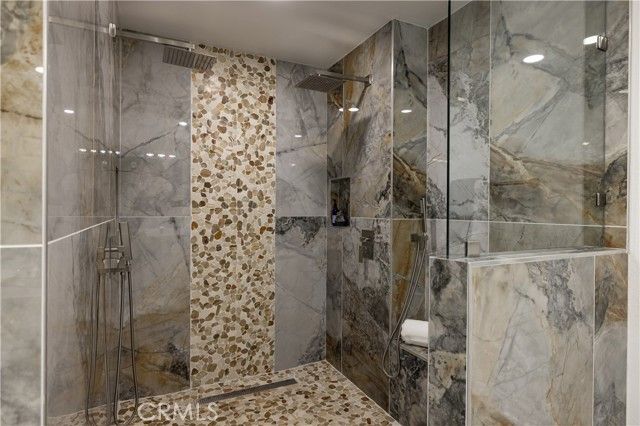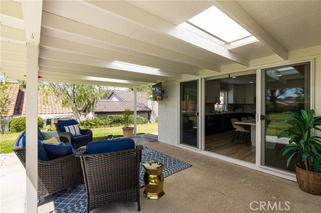 Experience the epitome of 55+ gated living in this stunning, completely remodeled ranch-style home, ideally located on a quiet cul-de-sac in Mission Viejo’s desirable Casta Del Sol community. This nearly 1,500 sq. ft. residence offers three bedrooms and two bathrooms, with a unique private setting and no direct neighbors to both sides or behind. The home has been meticulously upgraded throughout. The designer gourmet kitchen is a showstopper, featuring a quartz island, Italian porcelain countertops, new cabinetry, a pot filler, drawer microwave, matching stainless steel appliances, and a walk-in pantry. Bi-fold glass doors frame lush greenbelt views and create seamless indoor–outdoor living, opening to a spacious entertainer’s backyard with a covered patio and skylights. The thousands spent on this recent remodel will not disappoint! The primary suite impresses with vaulted ceilings, recessed lighting, and a thoughtfully designed walk-in closet. The spa-style bath boasts dual sinks, Quartz counters, and a large walk-in shower with dual shower heads. Two secondary bedrooms and a fully remodeled bath with marble countertop complete the home. Additional highlights include new flooring, paint, double-pane windows, electronic blinds, a new hot water heater, nearly new HVAC, and a complete repipe. An attached two-car garage offers pull-down attic storage. The property also benefits from low taxes, no Mello Roos, and full membership to Lake Mission Viejo for fishing, boating, concerts, and more. Residents enjoy the many amenities of Casta Del Sol, including two recreation centers with pools, spas, tennis and pickleball courts, gym, hiking trails, shuffleboard, billiards, and more. This move-in ready home is a rare find—better hurry on this one!