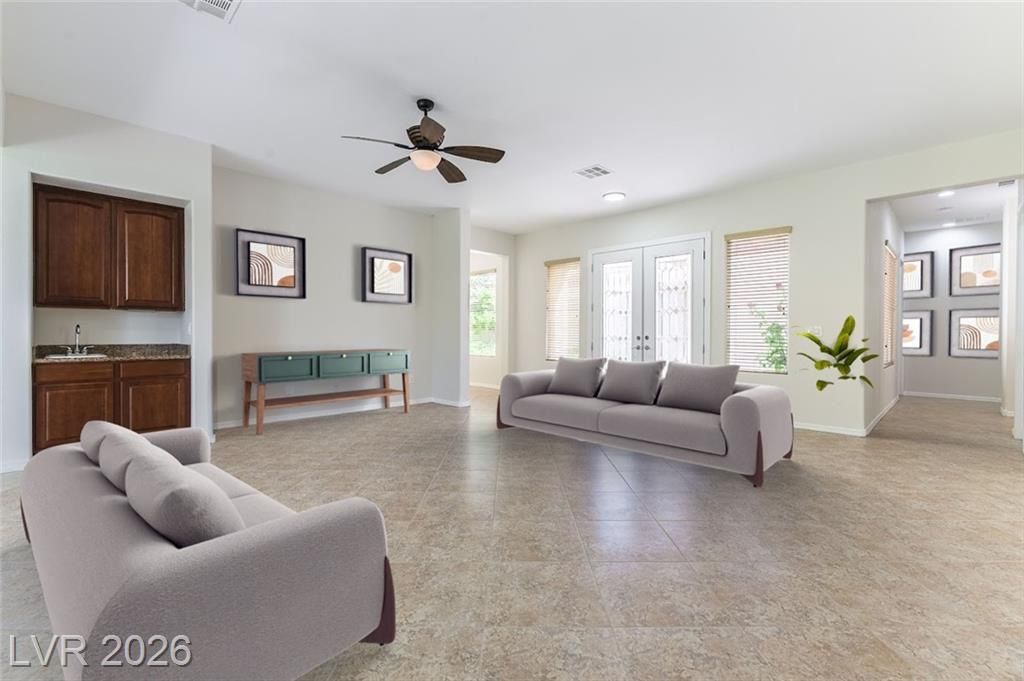 Step into refined living in this impeccably maintained Trenton model with Casita, offering over 2,600 square feet in Sun City Anthem, one of Henderson’s premier 55+ communities. Elegant double doors open to soaring 10-foot ceilings, abundant natural light, and an open layout ideal for everyday living & entertaining.The spacious floor plan includes three private bedroom suites, 3.5 baths, a formal dining room, and a versatile den or office. The Great Room with built-in wet bar flows into the chef’s kitchen featuring upgraded cabinetry, granite countertops, a large island, and a built-in central vacuum.Enjoy a gated courtyard and private backyard with mature fruit trees. The attached Casita offers ideal space for visitors or hobbies. Residents enjoy access to three clubhouses, fitness centers, indoor and outdoor pools, tennis, pickleball, golf, walking trails, and a vibrant social calendar.Luxury, lifestyle, and community—your next chapter begins here.