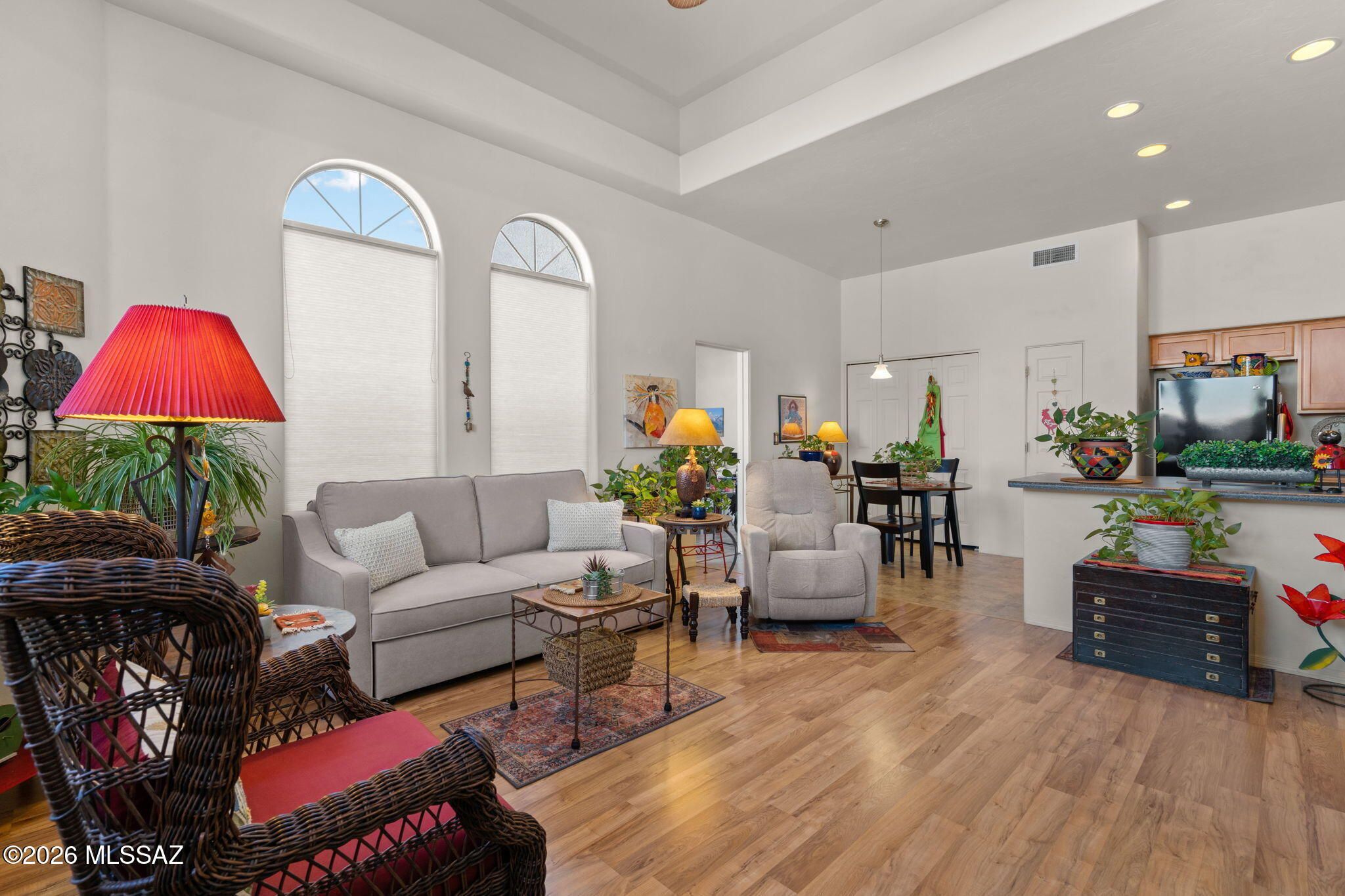 Welcome to Your Desert Retreat!Nestled in a peaceful, gated 55+ community on Tucson's desirable Northwest side, this charming 2-bedroom condo is a rare find -- and priced to sell fast! From the moment you step inside, you'll be captivated by the soaring 12-foot ceilings that fill every room with natural light and an airy, open feel. What truly sets this home apart is the collection of lush indoor plants lovingly curated by the owner -- a living, breathing indoor garden that effortlessly brings the beauty of the Sonoran Desert indoors. It's a one-of-a-kind atmosphere you simply have to experience in person.Meticulously maintained and move-in ready, this home reflects pride of ownership at every turn. Stay cool and comfortable year-round with a newer air conditioning system!/Range priced