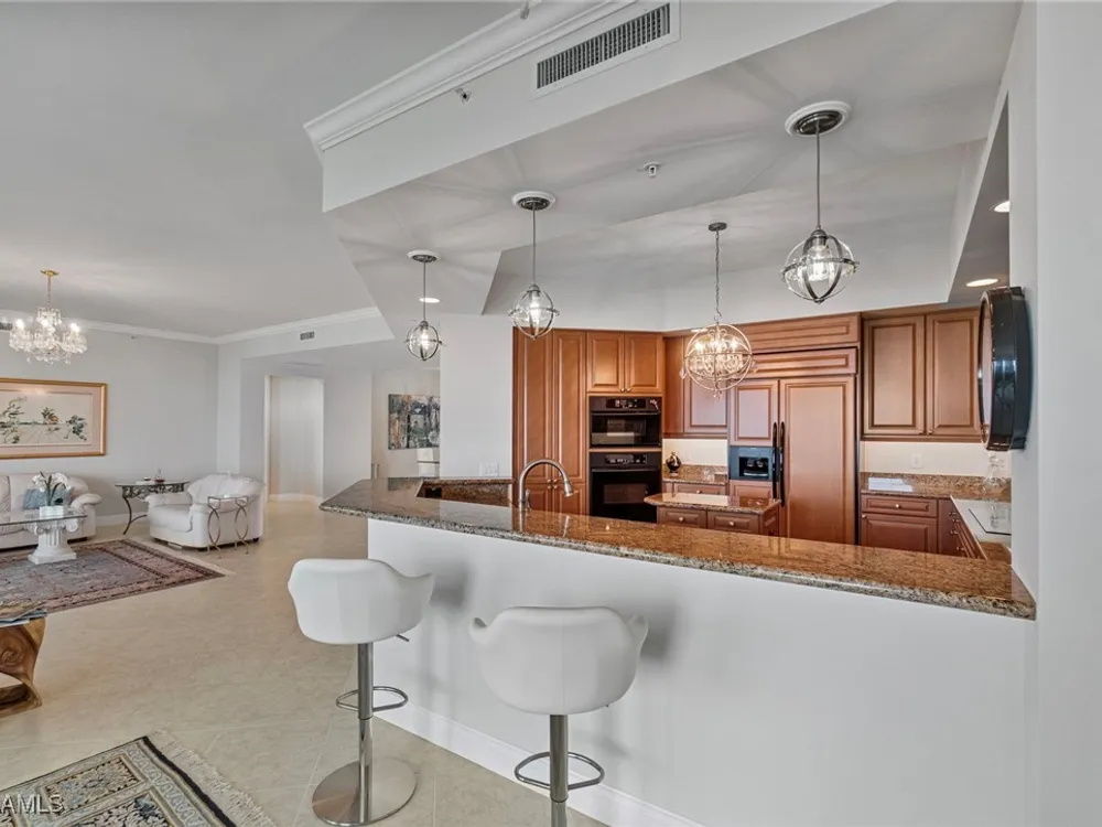 ESTERO BAY VIEWS – PRIVATE ELEVATOR – NEWLY FURNISHED RENOVATED UNIT! Enjoy breathtaking 19th-floor panoramic views of the Gulf of Mexico and sunrises to the east from every room in this luxurious high-rise residence. Treviso stands 21 stories with ONLY 76 residences! 3 bed, 3 bath unit has a private elevator, accessible with a fob for extra safety & privacy. This elegant home features electric hurricane shutters, hurricane-impact sliding doors, and a private elevator for privacy and peace of mind. The kitchen is beautifully appointed with granite countertops, wood cabinetry, and recessed lighting, while the spacious primary suite offers lanai access, walk-in closets, and a spa-like bath with soaking tub and dual vanities. Recently painted and featuring diagonal tile flooring, new washer/dryer, & a storage locker (#29) providing extra space for belongings & three LARGE guest suites! Residents have exclusive Colony only access to dining & events at The Bay Club and access to a PRIVATE BEACH PARK, tennis, canoeing/kayaking, sailing club, bocce & pickleball—offering the best of Southwest Florida luxury living. 1% LENDER CREDIT INCENTIVE IF USING PREFERRED LENDER, INQUIRE FOR MORE DETAILS**