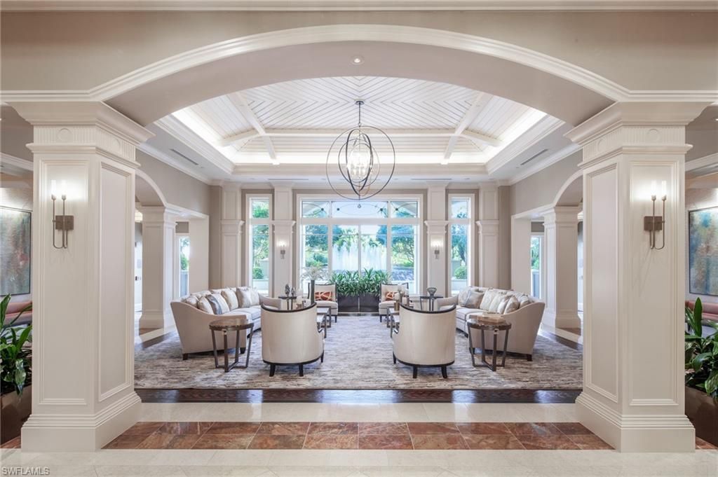 Beautiful end-unit residence located in Treviso at The Colony Holf and Country Club! This former designer model has been reimagined and recently renovated! This home features a spacious and functional layout, excellent natural light, refined details, and a highly desirable open floor plan. The great room flows to a large screened lanai through floor to ceiling sliders, creating an ideal indoor/outdoor setting for everyday living and entertaining all your guests! The formal dining area showcases tray ceilings and custom millwork with new custom lighting. The recently renovated chef’s kitchen features new cabinetry and finishes with integrated panel appliances, new quartz countertops, a center island, and breakfast bar seating. The owners master suite features two walk-in closets, terrace access, and a well-appointed bathroom with a soaking tub, marble surfaces, and dual vanities. Two guest suites provide privacy and comfort for your family and friends! Enjoy your morning coffee by the newly installed fireplace which creates a wonderful sitting area for entertaining your guests! In addition the home features include tile, carpet, and wood flooring, plantation shutters, custom built-ins, designer finishes, electric storm protection with remote shutters, and thoughtful storage throughout.The Treviso at The Colony offers a secured lobby, lagoon-style pool and spa, fitness center, theater, social pavilion, guest suites, and concierge-style services. Residents of The Colony at Pelican Landing enjoy your own private 34 acre beach island and complimentary boat shuttle access to and from the island along with waterfront dining at The Bay Club, tennis, pickleball, bocce ball, and state of the art fitness center and a 24 hour guard-gated entry.This home offers an exceptional opportunity to enjoy maintenance-free luxury living within a premier coastal community in The Colony Golf and Bay Club! Schedule your private viewing to come see your new home in paradise!! Just minutes from Southwest International Airport, fabulous dining with numerous restaurants close by and Coconut Point Shopping directly across from you! Don’t miss this chance to live in luxury! The home is being offered with furnishings and is move in ready!