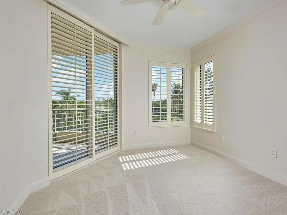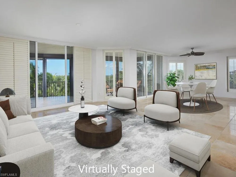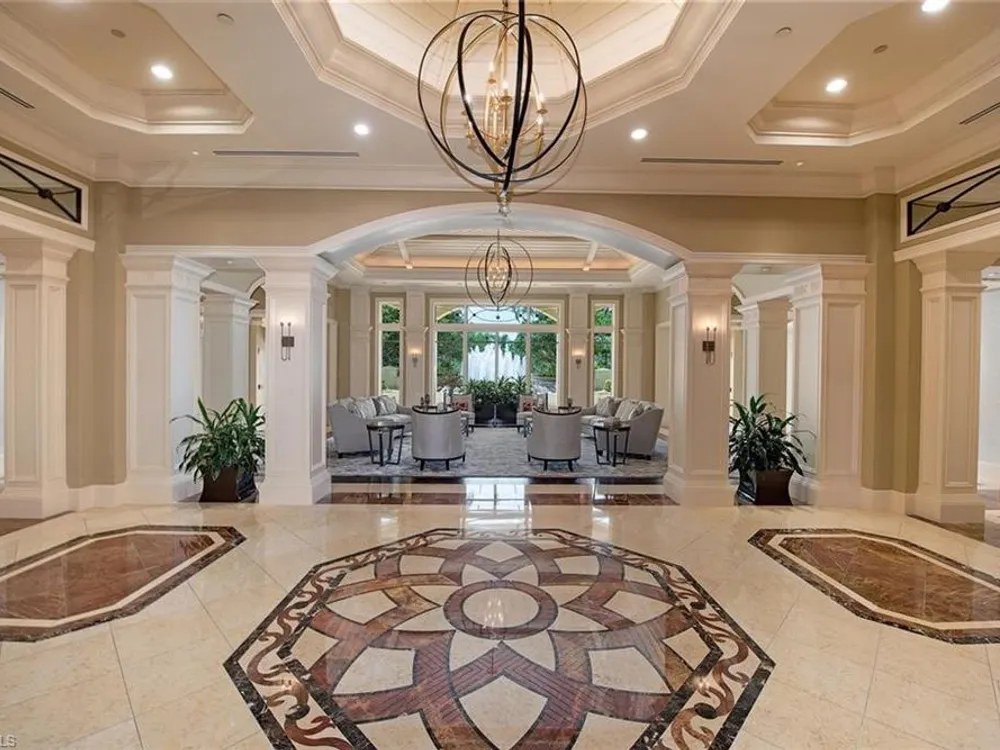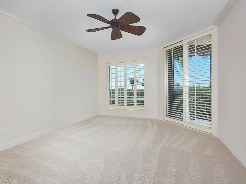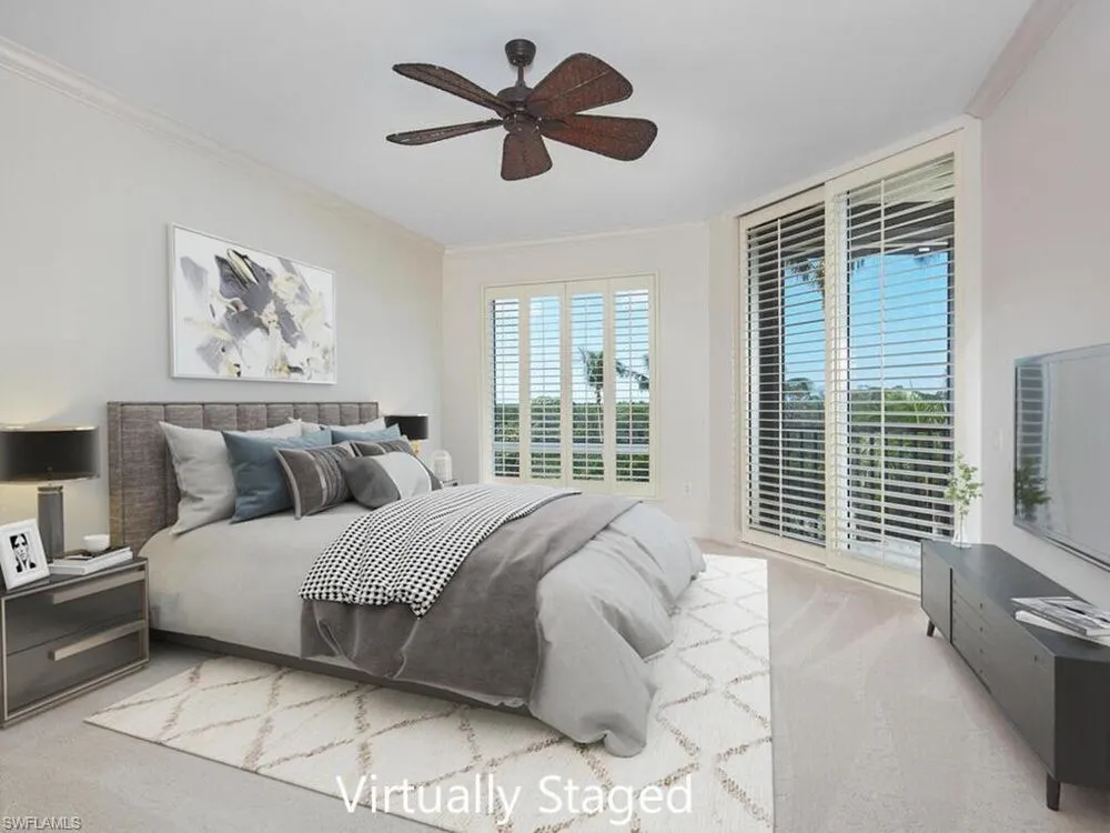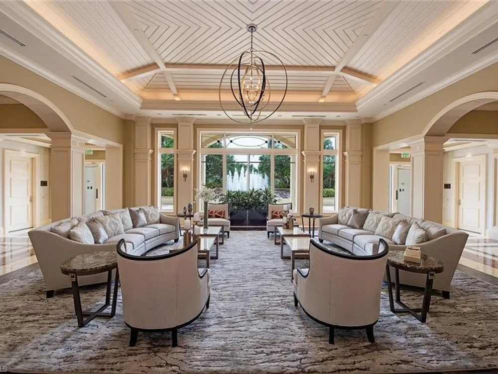C12953 – Impeccable corner residence in Treviso, located inside The Colony at Pelican Landing, which is Bonita Springs’ premier luxury golf and beach community. This beautifully maintained and spacious single-family-style corner residence boasts a fabulous and functional floor plan that offers the perfect blend of elegance, comfort, and privacy. Enjoy exquisite panoramic views of emerald fairways, lush tropical palms, and manicured landscaping from this bright, wraparound corner unit, filled with natural light from floor-to-ceiling glass slicing doors and windows. The expansive layout features 3 ensuite bedrooms and a private study, 3.5 baths, and multiple living and entertaining spaces, including a family room, formal living and dining rooms, and a charming breakfast nook. The lavish primary suite is a private retreat, complete with a spa-style bathroom and dual custom walk-in closets and private access to the lanai. A true split-bedroom floor plan offers optimal privacy for the two ensuite guest bedrooms. Additional highlights include: Private elevator foyer, 42-foot screened lanai plus two open-air balconies. Two assigned garage spaces and extra airconditoned secure storage. High-end finishes including plantation shutters, crown molding, 9’8” ceilings, ceiling fans, and marble/granite surfaces and automatic storm shutters. This is a rare opportunity to enjoy resort-style living in a meticulously cared-for residence with timeless luxury and unbeatable views. Treviso’s updated common areas feature transitional furnishings and marble floors with views over water features. Three guest suites, which include a two bedroom apartment. A beautiful secure lobby, elegant social room, billiards room, theater, and a newly updated fitness center complete the interior amenities. Spa and free form large pool with graceful beach access and a separate social pavilion. The Bay Club, a Colony private waterfront dining facility, offers intimate dining or informal sunset dining/entertainment. Experience a full array of community amenities such as a 34 acre island beach park with boat shuttle, Kayaking, canoeing, tennis, pickle ball, bocce and sailing. Close to Coconut Point Shopping Center. 15 minutes to the airport.