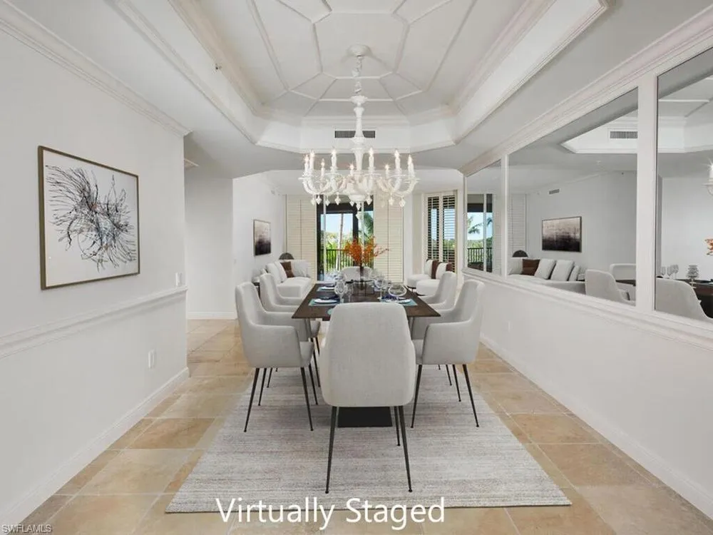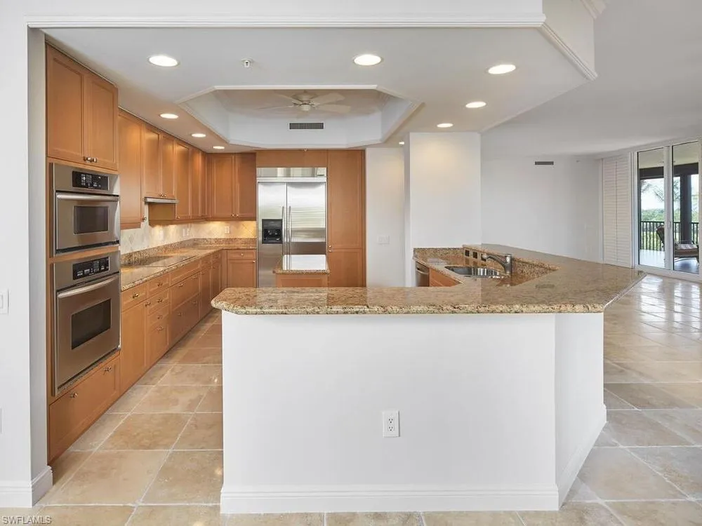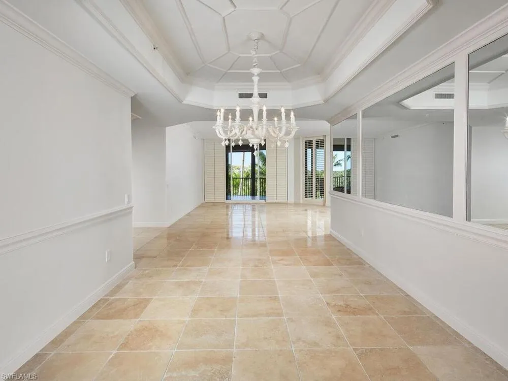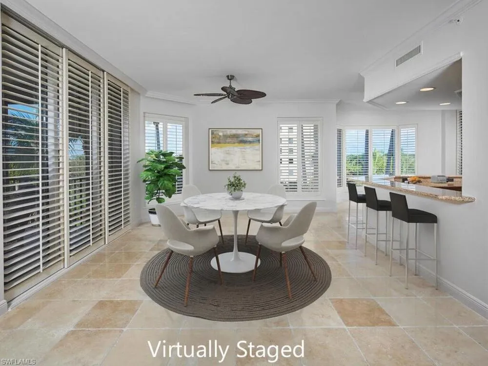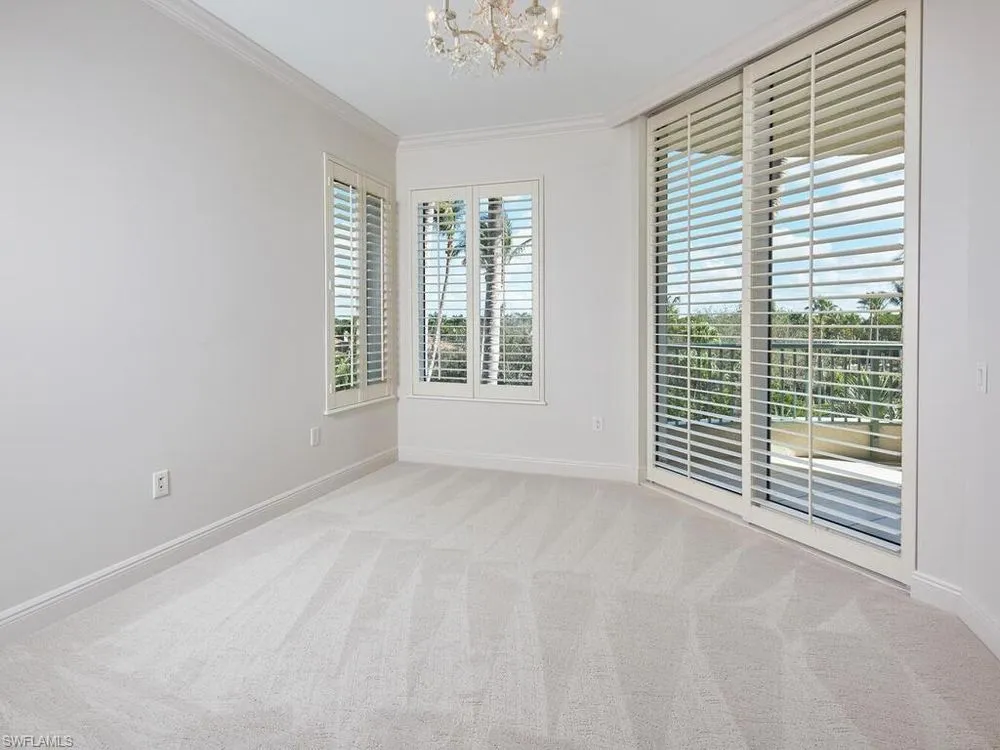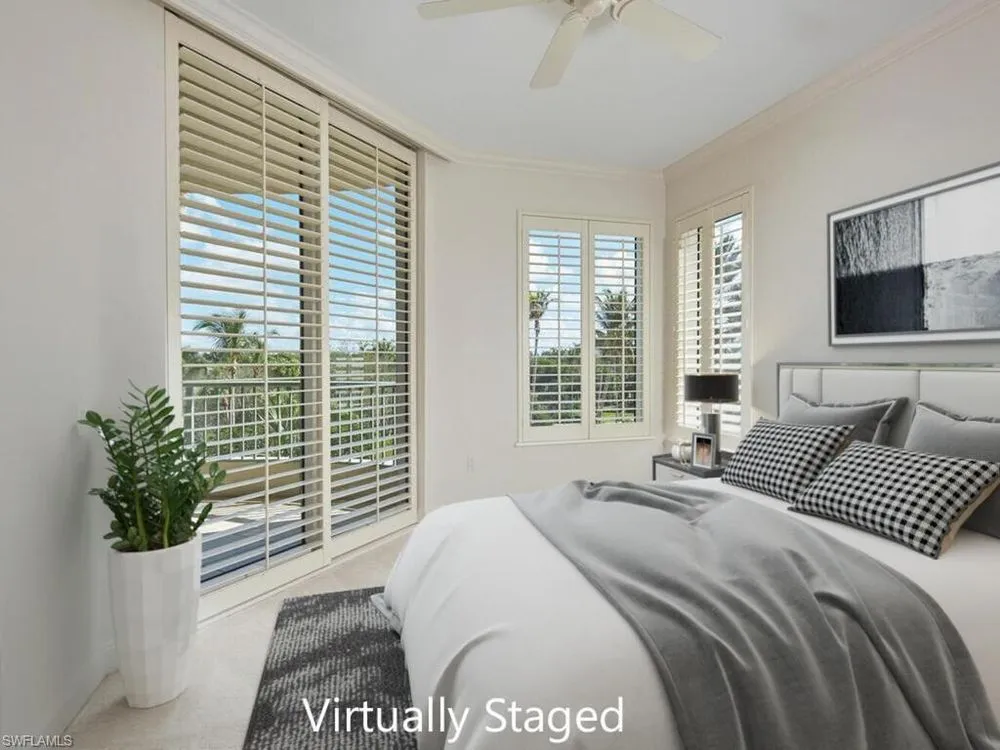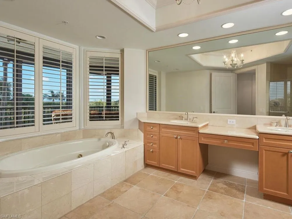 C12953 – Impeccable corner residence in Treviso, located inside The Colony at Pelican Landing, which is Bonita Springs’ premier luxury golf and beach community. This beautifully maintained and spacious single-family-style corner residence boasts a fabulous and functional floor plan that offers the perfect blend of elegance, comfort, and privacy. Enjoy exquisite panoramic views of emerald fairways, lush tropical palms, and manicured landscaping from this bright, wraparound corner unit, filled with natural light from floor-to-ceiling glass slicing doors and windows. The expansive layout features 3 ensuite bedrooms and a private study, 3.5 baths, and multiple living and entertaining spaces, including a family room, formal living and dining rooms, and a charming breakfast nook. The lavish primary suite is a private retreat, complete with a spa-style bathroom and dual custom walk-in closets and private access to the lanai. A true split-bedroom floor plan offers optimal privacy for the two ensuite guest bedrooms. Additional highlights include: Private elevator foyer, 42-foot screened lanai plus two open-air balconies. Two assigned garage spaces and extra airconditoned secure storage. High-end finishes including plantation shutters, crown molding, 9’8” ceilings, ceiling fans, and marble/granite surfaces and automatic storm shutters. This is a rare opportunity to enjoy resort-style living in a meticulously cared-for residence with timeless luxury and unbeatable views. Treviso’s updated common areas feature transitional furnishings and marble floors with views over water features. Three guest suites, which include a two bedroom apartment. A beautiful secure lobby, elegant social room, billiards room, theater, and a newly updated fitness center complete the interior amenities. Spa and free form large pool with graceful beach access and a separate social pavilion. The Bay Club, a Colony private waterfront dining facility, offers intimate dining or informal sunset dining/entertainment. Experience a full array of community amenities such as a 34 acre island beach park with boat shuttle, Kayaking, canoeing, tennis, pickle ball, bocce and sailing. Close to Coconut Point Shopping Center. 15 minutes to the airport.