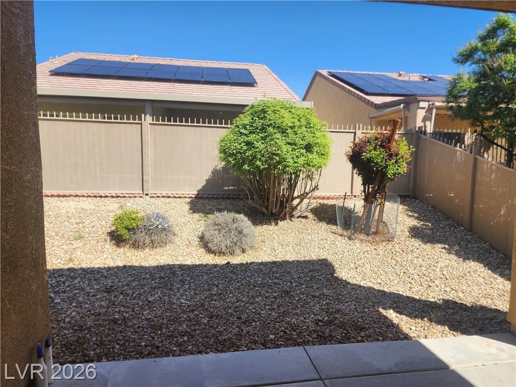 Experience the lifestyle of Sun City Aliante 55+ community. This home features 3 bedrooms/2 bath, & 2 car garage. The backyard is fully fenced with a covered patio and desert landscape. Kitchen has granite counter tops, built in micro, & tile floors. This home comes complete with all appliances, ceiling fan with lights, water conditioner, and solar. Primary bedroom has laminate floors and a walk in closet. Primary bath has double sink & a shower. Amenities include public golf course, community social activities in the clubhouse, public transportation, freeway access, shopping, dining, and Aliante Casino near by.