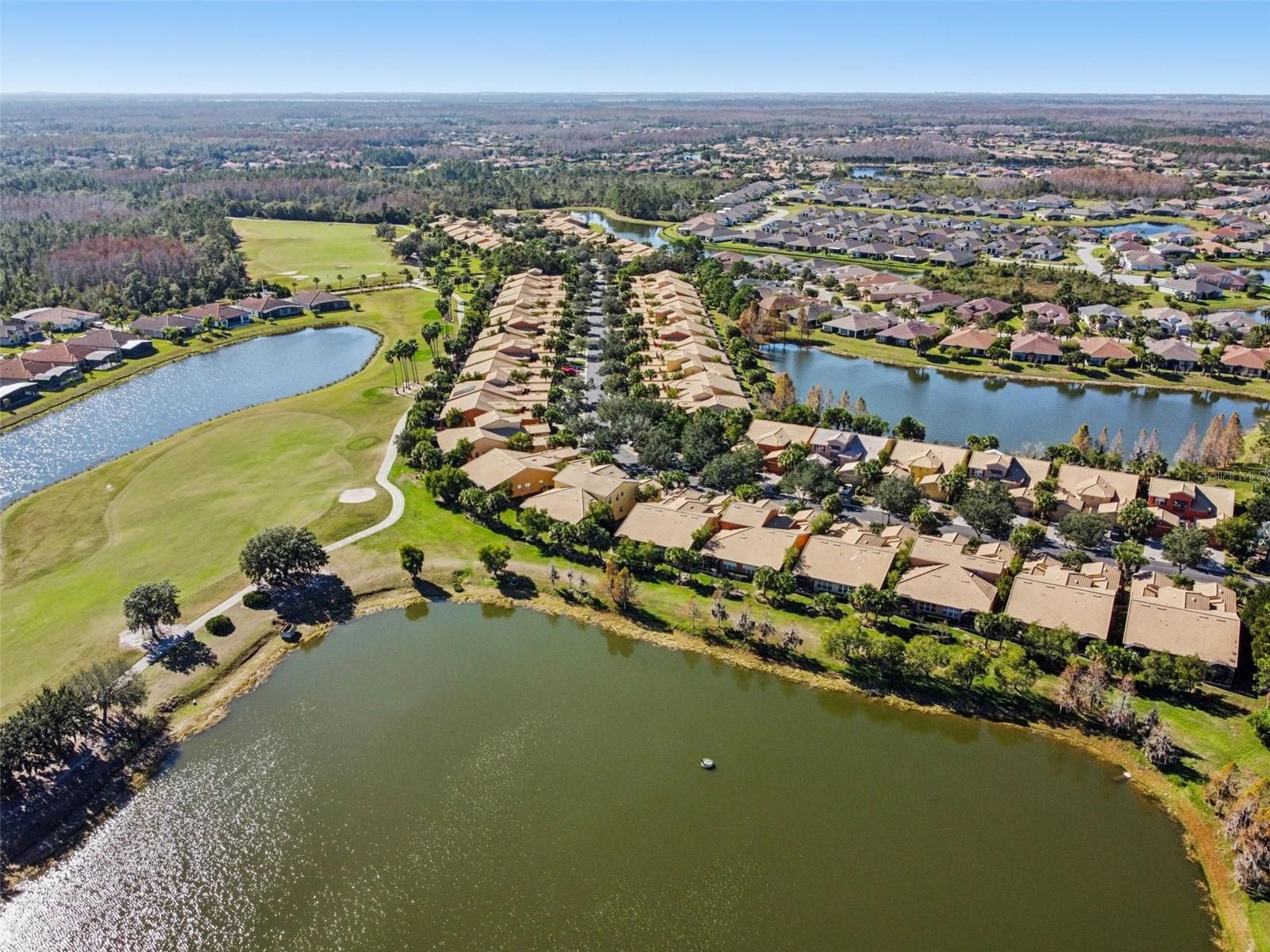 Welcome home to this beautifully appointed Cortina model, offering 2 bedrooms, 2 bathrooms, and a den/study with expansive water views, ideally located in the desirable Courtyards of Montelena —just minutes from Village Center amenities. Enter through a private front courtyard that sets the tone for relaxed Florida living. The open-concept great room features luxury vinyl plank flooring and stunning water views, seamlessly connecting to the spacious kitchen with an eat-at bar and sunny breakfast nook. Step outside to the screened and covered extended lanai and enjoy peaceful mornings and breathtaking sunrises overlooking the water. The primary bedroom suite boasts a tray ceiling and tranquil water views, complemented by an en-suite bathroom with a large walk-in shower. A guest bedroom and full bath are thoughtfully situated away from the primary suite, providing privacy for visitors. Additional features include a one-car garage with golf cart bay (GOLF CART INCLUDED),and EV hoo-up, newly painted interior, and a new refrigerator. HOA fees include exterior painting, landscaping, irrigation, cable, and internet, allowing for easy, low-maintenance living. This exceptional home combines comfort, convenience, and scenic beauty—schedule your private showing today! Solivita offers residents access to state of the art amenities and work out facilities, dance and aerobics studios, a business center, 14 heated swimming pools, 2 heated spas, tennis courts, pickleball courts, shuffleboard, bocce ball, billiards room, art gallery, 3 restaurants and 2 championship 18-hole golf courses, driving range and putting course. Every day offers something new to explore and enjoy! This home also features easy access to nearby shops,as well as a brand new shopping center that caters to all your needs (including Sprouts) dining, and health care, offering the perfect balance of privacy and lifestyle