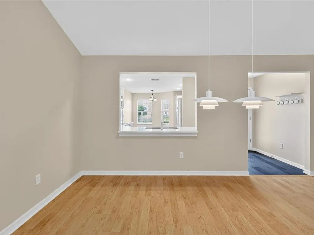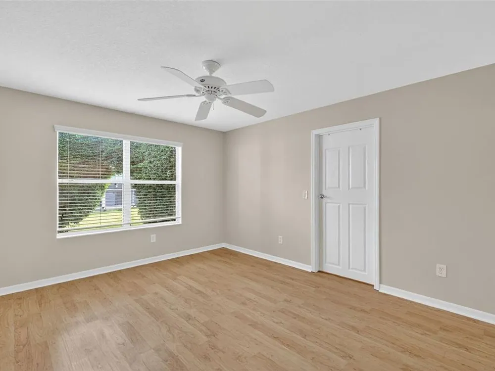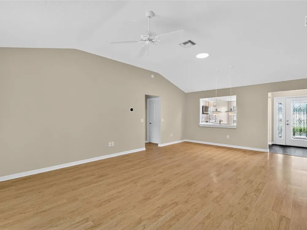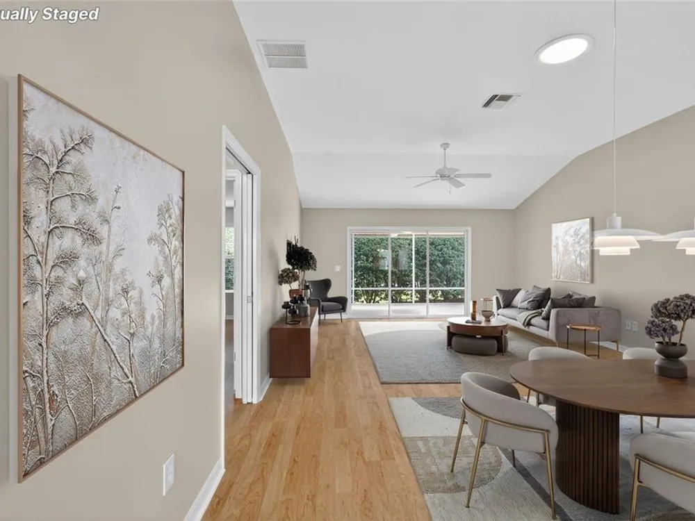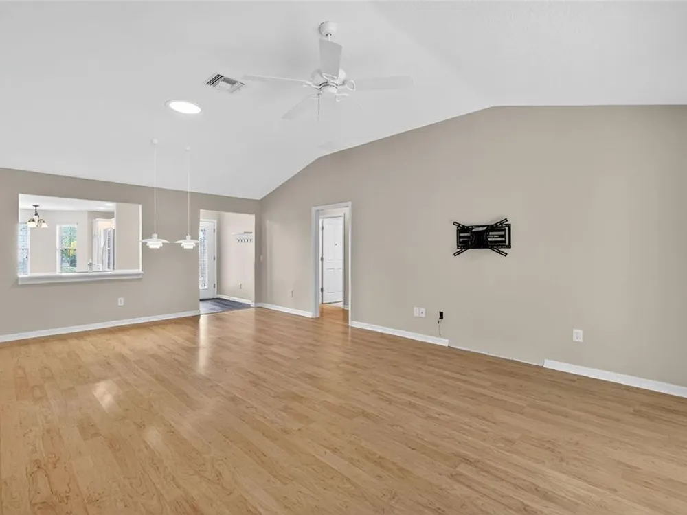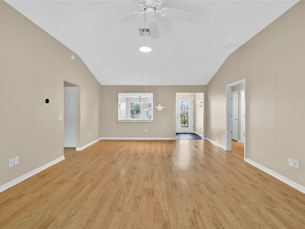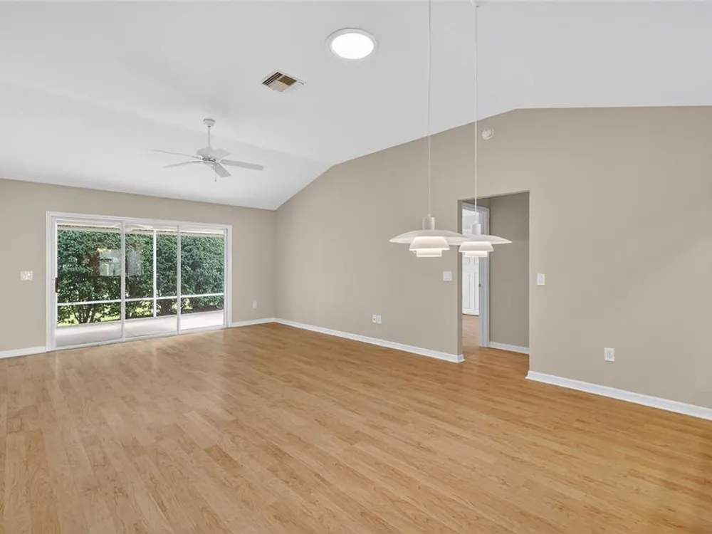 - Ceiling Fan(s), Eat-in Kitchen, High Ceilings, Living/Dining Room, Main Level Primary, Split Bedrooms, Stone Counters, Thermostat, Vaulted Ceiling(s), Walk-In Closet(s)