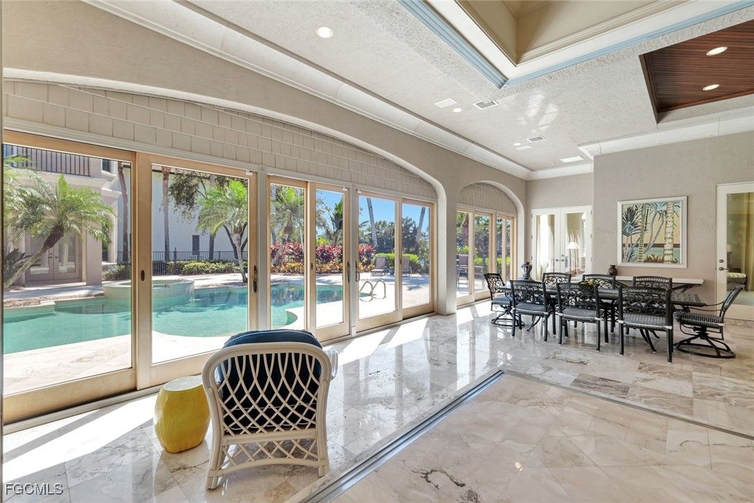IMMEDIATE COLONY SPORTS MEMBERSHIP AVAILABLE – SKIP THE WAITLIST. This stunning 5,613 SF custom Imperial Homes estate in Tuscany Isle at The Colony Golf & Bay Club blends timeless design with modern luxury and captivating long-lake views. Featuring 4 en-suite beds, 4.5 baths, including a private guest cabana with its own living room and coffee bar. Perfectly designed for relaxing, entertaining, and comfortable accommodations for guests. Step through handcrafted double doors, you’re immediately met with towering ceilings, floor-to-ceiling windows, and an abundance of natural light framing the serene pool & lake beyond. Elegant butler’s pantry and wet bar featuring custom cabinetry, wine storage, and beverage refrigerator. Chef’s kitchen with Dacor gas range, Sub-Zero Fridge, island, and walk-in pantry. Marble flooring, gas log fireplace, and barrel-vaulted ceilings w/ accent lighting create a timeless look. The master offers a private sitting area with direct pool & spa access, dual custom closets, and a spa-inspired bath featuring a Jacuzzi tub, dual vanities, and a shower. Private elevator leads to upstairs guest suites, family-room loft w/ wet bar, and balconies overlooking the lake. Large Florida Room so you don't have to worry about the weather equipped w/ Summer Kitchen, Blackstone, and beverage station. Waterside heated Pool and Spa with exception views and privacy. Ideal for relaxing in the pool or spa after a day on the greens! Recent upgrades: newer A/C units, new water heaters, new hardwood floors, new carpet, and fresh interior & exterior paint. 3-car garage and expansive driveway on an oversized 0.56-acre lot. No storm damage - not located in a flood zone. Living at The Colony Golf & Bay Club means experiencing one of Southwest Florida’s most coveted private communities — where luxury, leisure, and natural beauty unite. Members enjoy the newly renovated Bay Club, a two-story waterfront dining venue with elegant and casual spaces, open-air terraces, and a third-floor bar offering panoramic views of Estero Bay’s waterfront sunsets. Access to Pelican Landing’s 34-acre private island beach park, reached by a private boat shuttle, along with a state-of-the-art fitness center, tennis and pickleball facilities, and a scenic kayak and canoe park along Spring Creek. The Colony Golf & Country Club, home to a championship 18-hole Jerry Pate–designed course anchored by a Tuscan-inspired clubhouse with dining. Golf & Sports Memberships are optional and available for purchase. The sellers’ existing Sports Membership at The Colony Golf & Country Club may be purchased with the home, offering the buyer immediate access without a waitlist, plus benefits if joining the Golf Club. This membership includes privileges to the Club’s tennis, fitness, spa, pool, dining, and social amenities, plus limited in-season and unlimited off-season golf access. It’s a rare opportunity to step directly into The Colony’s exclusive country club lifestyle from day one.