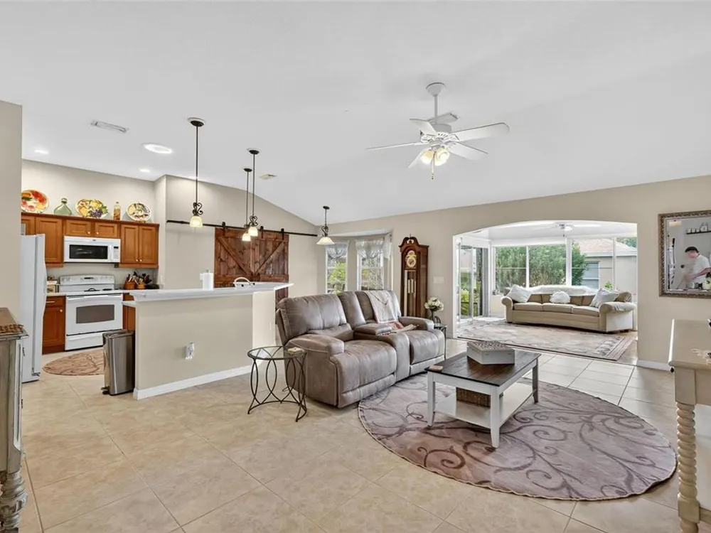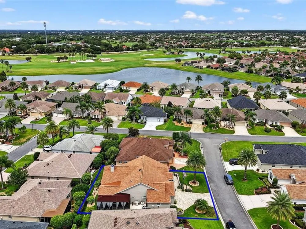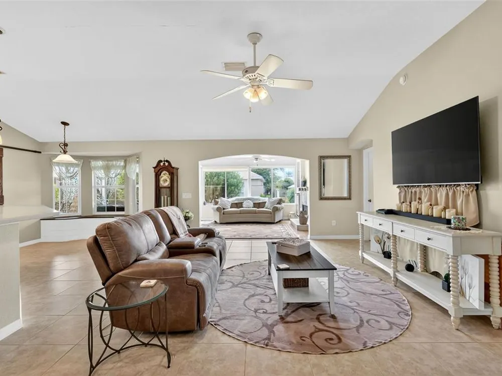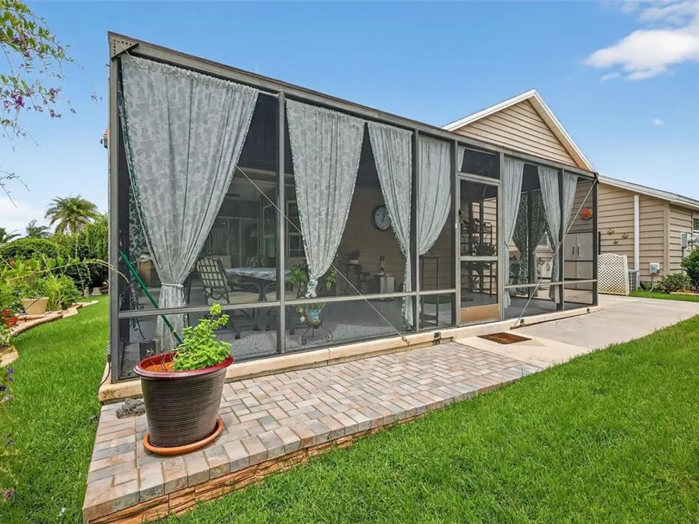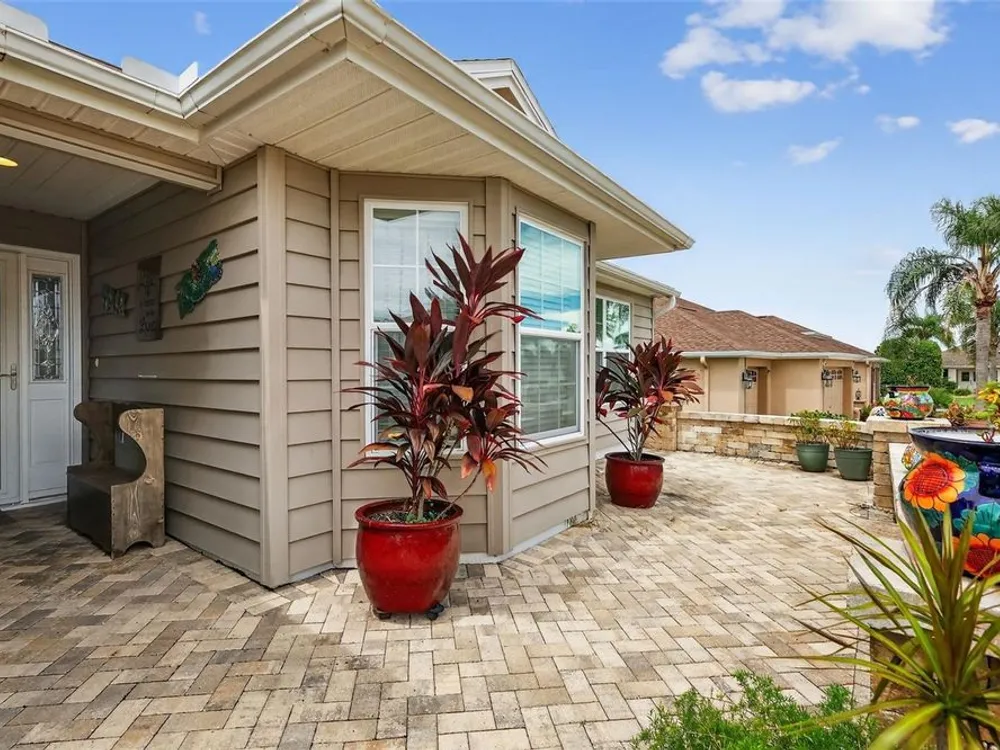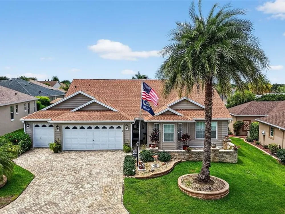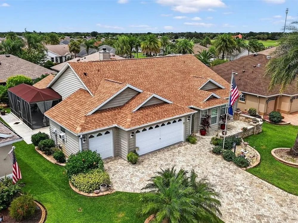 Welcome Home to the Lovely Ponderosa Pine in The Village of Bonita, just minutes to Lake Sumter Landing Town Square! This 4 bedroom, 2 bath home boasting over 2200 sq. ft. has several updates and upgrades starting with the gorgeous PAVER front patio and driveway installed in 2021 and updated LANDSCAPING completed this year as well as a NEW ROOF this month (August)!! Come inside and enjoy the open concept and split bedroom floor plan. The spacious kitchen has plenty of cabinets and an expanded PANTRY with Barn door, large ISLAND with Corian bar-top breakfast bar AND a small eating area with a window bench-seat with storage!! Enjoy the wood burning FIREPLACE in Florida room and the HUGE window letting in lots of light. Also, very nice built-in shelving and TWO Wine (drink) cooler units!! Just outside the Florida room is a large SCREENED-IN L-shaped LANAI which includes privacy curtains and a big concrete patio for your grill, smoker or additional relaxing area. The lanai floor was recoated in 2024 and a new lanai cover installed in 2025! Come back inside to the Primary Bedroom and notice the large walk-in CLOSET with CUSTOM SHELVING and the ensuite with separate water closet and Roman shower and double sinks. Next, take a look at the 3 OTHER BEDROOMS!!! The 1st bedroom is bright and cheery with a beautiful BAY window and nice sized closet. Then, enter the remaining 2 bedrooms and guest bath through the pocket door giving additional privacy! And we don't want to forget the HUGE Laundry room with wash tub and plenty of cabinets and space for laundry baskets! Then onto the 2 car garage and golf cart garage AND MORE STORAGE!! Several storage cabinets on rollers will stay with the home! AND - AS IF THAT ISN'T ENOUGH - the seller had Magic Stairs installed in 2020 for additional ATTIC storage! Also included is a Tankless water heater, water treatment system, new FURNACE and A/C in 2023, PLUS *** BOND IS PAID***. NOTE - Seller offering a $2000 flooring allowance for the 2 bedrooms with carpeting.