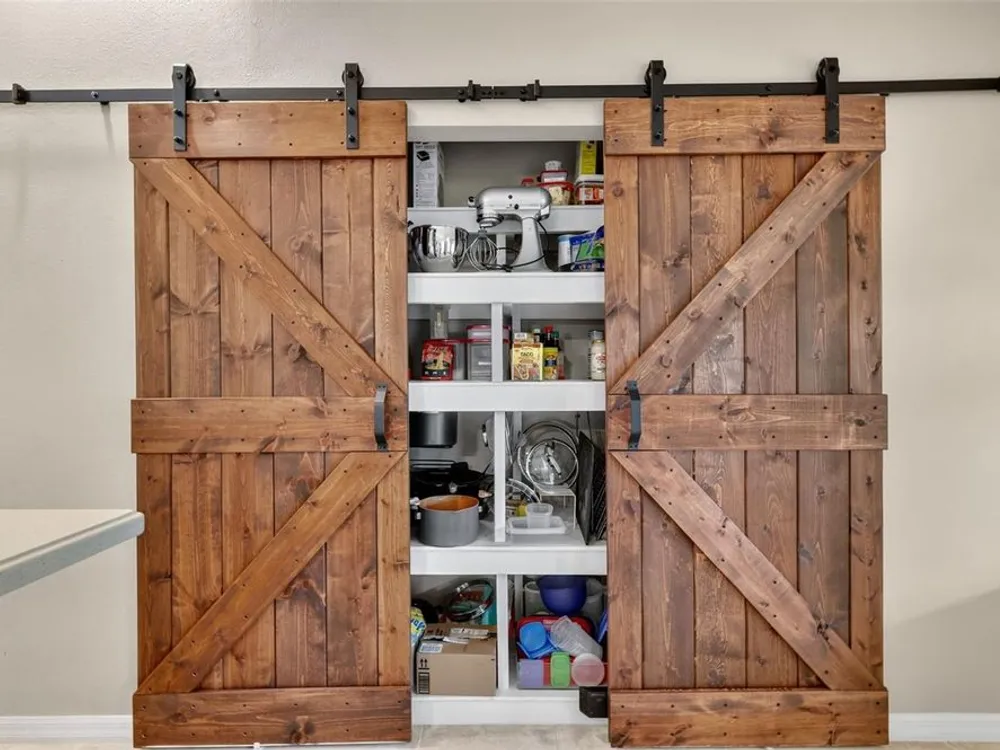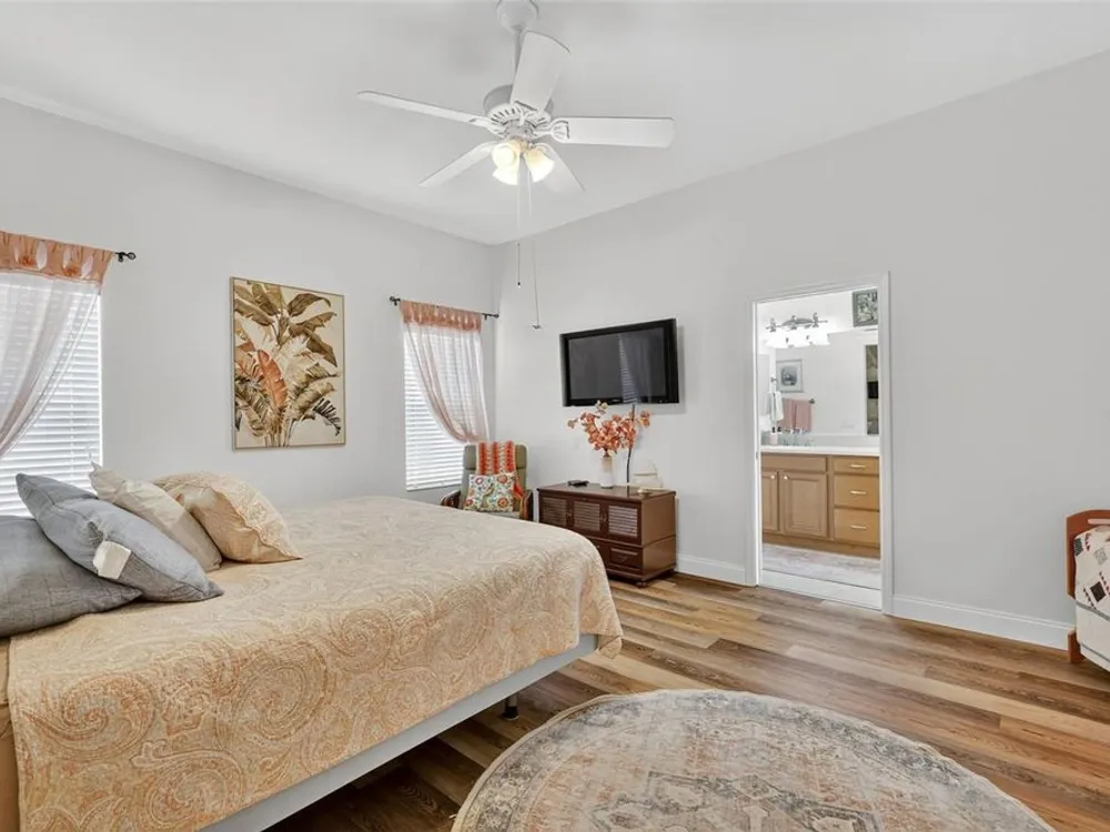 - Ceiling Fan(s), Eat-in Kitchen, High Ceilings, Kitchen/Family Room Combo, Open Floorplan, Main Level Primary, Solid Surface Counters, Split Bedrooms, Walk-In Closet(s), Window Treatments