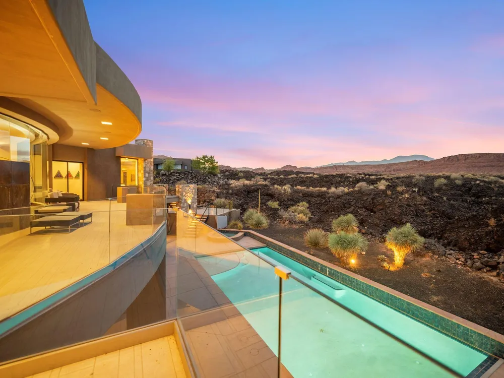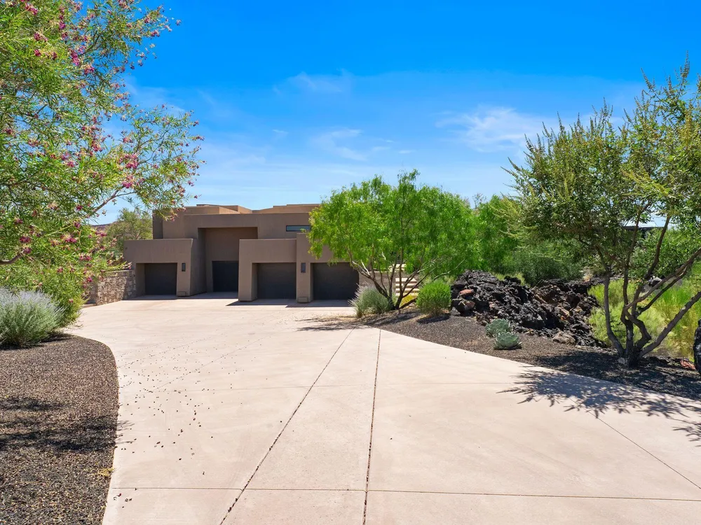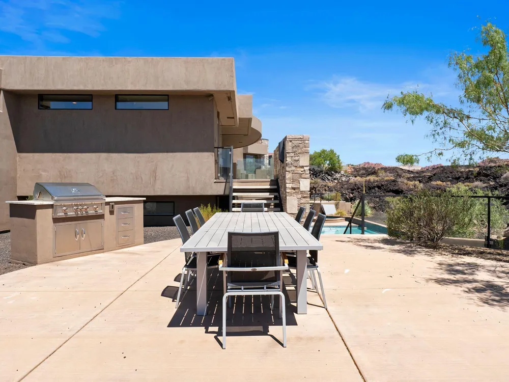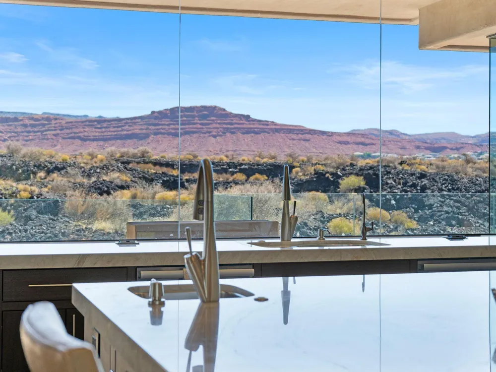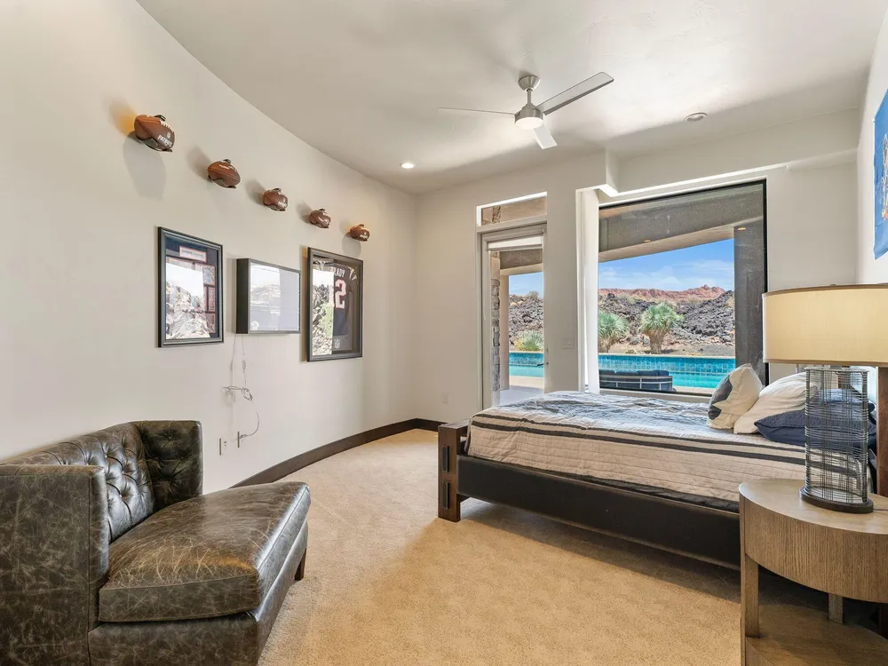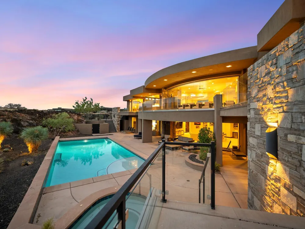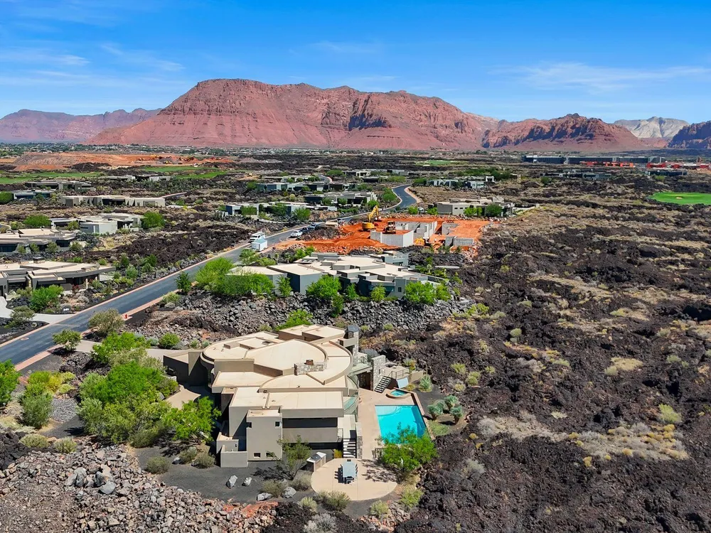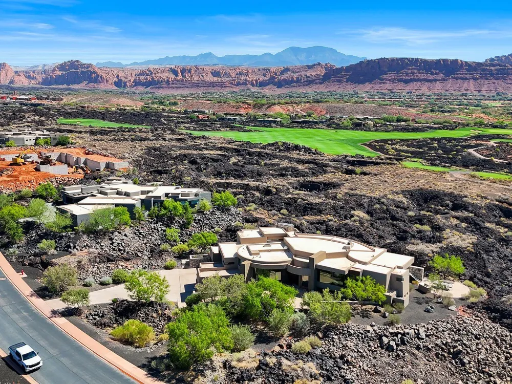 Welcome to your private desert sanctuary nestled in the heart of the prestigious Entrada at Snow Canyon Country Club. This one-of-a-kind estate sits on a rare 2-acre golf course lot and offers over 7,000 square feet of luxury living, designed to embrace the natural beauty of Southern Utah while delivering unparalleled comfort and sophistication. From the moment you arrive, you're greeted with panoramic, unobstructed views of Snow Canyon, creating a truly breathtaking backdrop that seamlessly blends indoor and outdoor living. Thoughtfully positioned to maximize privacy and scenery, this architectural masterpiece boasts an open-concept layout, soaring ceilings, and walls of glass that invite natural light and red rock vistas into every room. The gourmet chef's kitchen is the heart of the home, outfitted with top-of-the-line Sub-Zero and Wolf appliances, custom cabinetry, and an oversized island perfect for entertaining. Flowing effortlessly from the kitchen is a spacious great room with a sleek fireplace and retractable glass walls that open to an expansive outdoor living area. Step outside to your personal resort, featuring a custom-designed swimming pool, spa, outdoor kitchen, and shaded patiosall overlooking the golf course and framed by the awe-inspiring cliffs of Snow Canyon. Inside, the home offers 5+ bedrooms, multiple en-suite baths, private office, and a state-of-the-art indoor basketball courta rare amenity that elevates this home into a league of its own. The expansive primary suite includes a spa-inspired bath, dual closets, and private terrace access with sunrise and sunset views that are nothing short of spectacular. This is more than a homeit's a lifestyle. Located in the guard-gated Entrada community, residents enjoy exclusive access to championship golf, fine dining, fitness facilities, and the serene desert landscapes that make this region a world-class destination. Schedule your private tour today and experience luxury living at its finest in Entrada @ Snow Canyon.