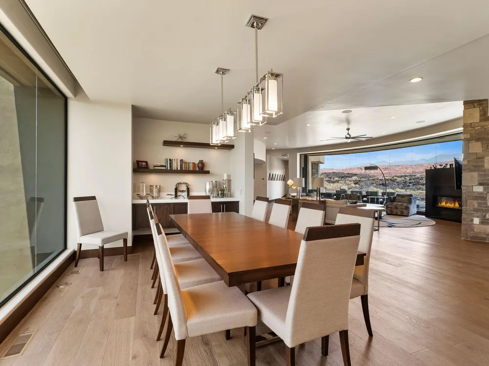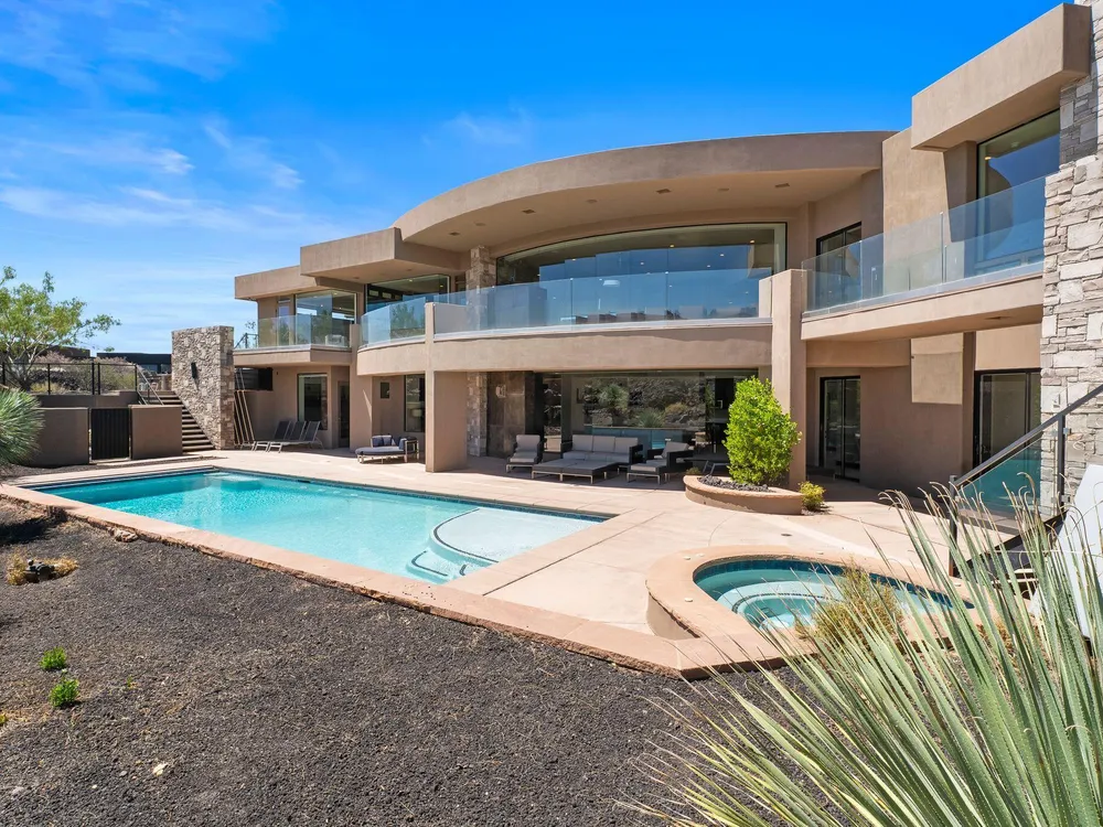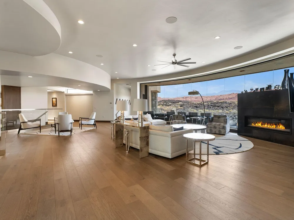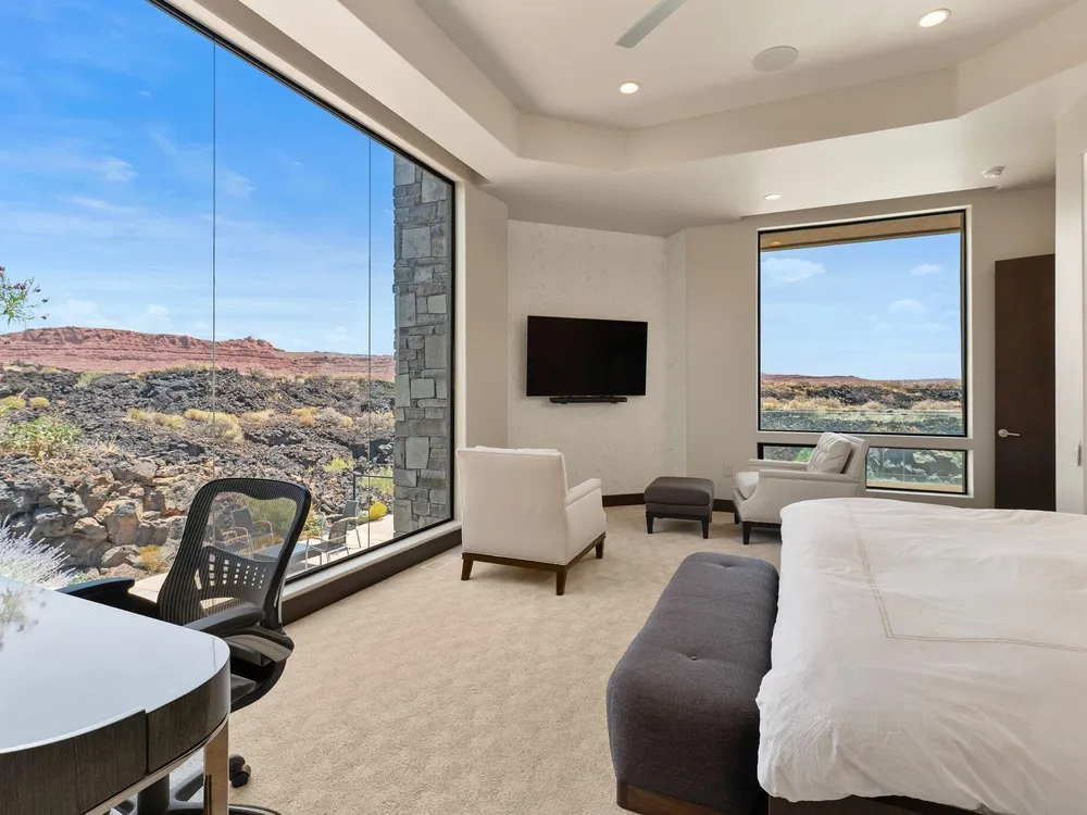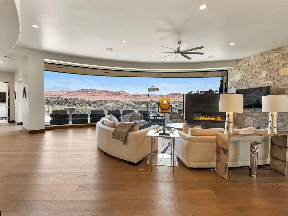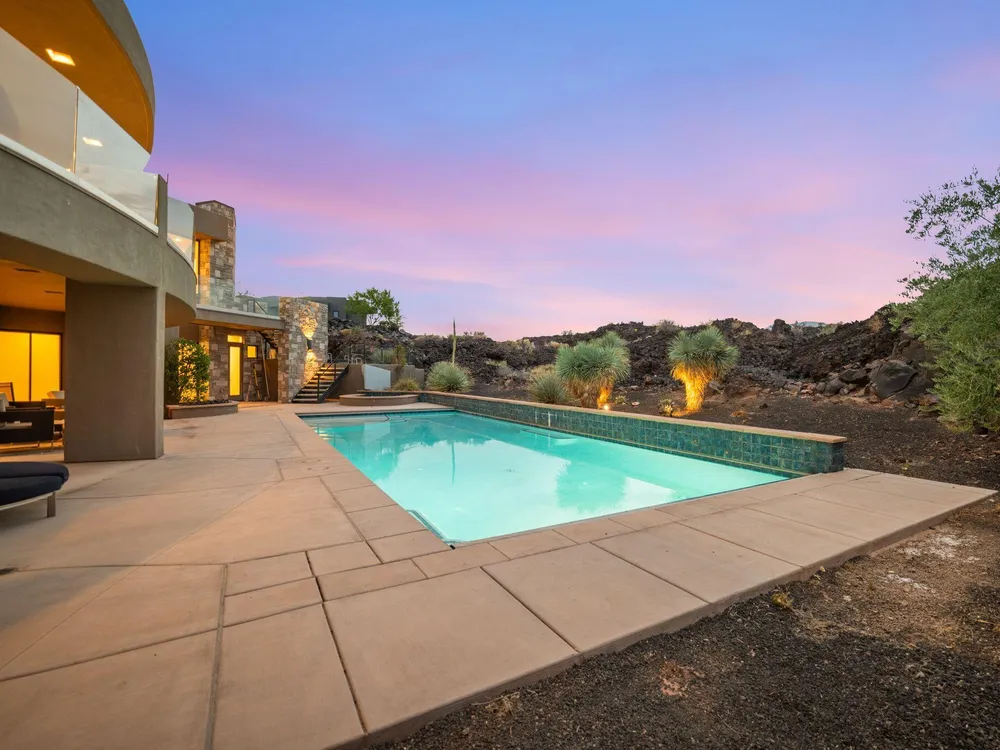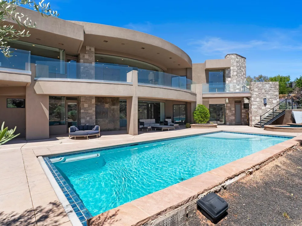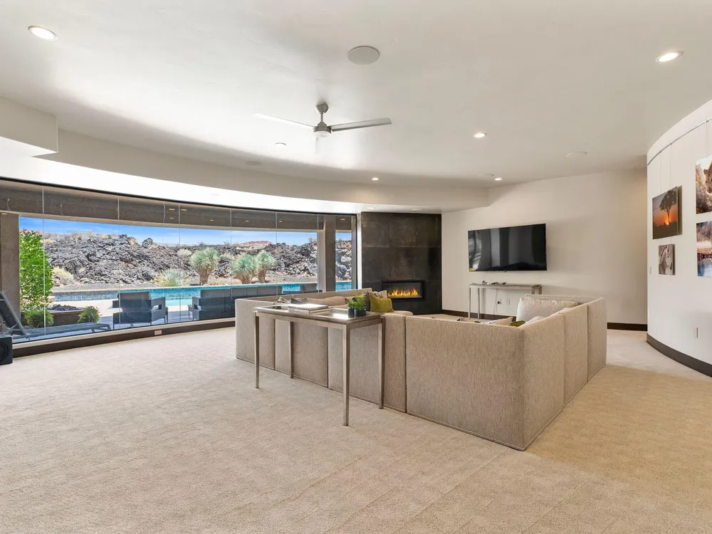 Welcome to your private desert sanctuary nestled in the heart of the prestigious Entrada at Snow Canyon Country Club. This one-of-a-kind estate sits on a rare 2-acre golf course lot and offers over 7,000 square feet of luxury living, designed to embrace the natural beauty of Southern Utah while delivering unparalleled comfort and sophistication. From the moment you arrive, you're greeted with panoramic, unobstructed views of Snow Canyon, creating a truly breathtaking backdrop that seamlessly blends indoor and outdoor living. Thoughtfully positioned to maximize privacy and scenery, this architectural masterpiece boasts an open-concept layout, soaring ceilings, and walls of glass that invite natural light and red rock vistas into every room. The gourmet chef's kitchen is the heart of the home, outfitted with top-of-the-line Sub-Zero and Wolf appliances, custom cabinetry, and an oversized island perfect for entertaining. Flowing effortlessly from the kitchen is a spacious great room with a sleek fireplace and retractable glass walls that open to an expansive outdoor living area. Step outside to your personal resort, featuring a custom-designed swimming pool, spa, outdoor kitchen, and shaded patiosall overlooking the golf course and framed by the awe-inspiring cliffs of Snow Canyon. Inside, the home offers 5+ bedrooms, multiple en-suite baths, private office, and a state-of-the-art indoor basketball courta rare amenity that elevates this home into a league of its own. The expansive primary suite includes a spa-inspired bath, dual closets, and private terrace access with sunrise and sunset views that are nothing short of spectacular. This is more than a homeit's a lifestyle. Located in the guard-gated Entrada community, residents enjoy exclusive access to championship golf, fine dining, fitness facilities, and the serene desert landscapes that make this region a world-class destination. Schedule your private tour today and experience luxury living at its finest in Entrada @ Snow Canyon.