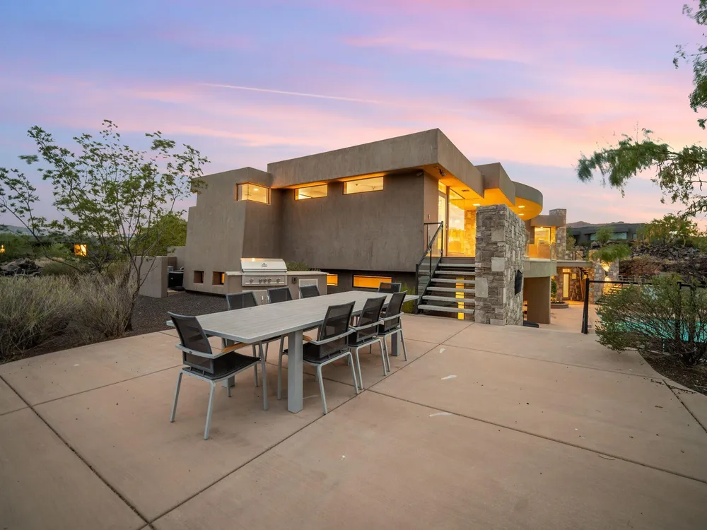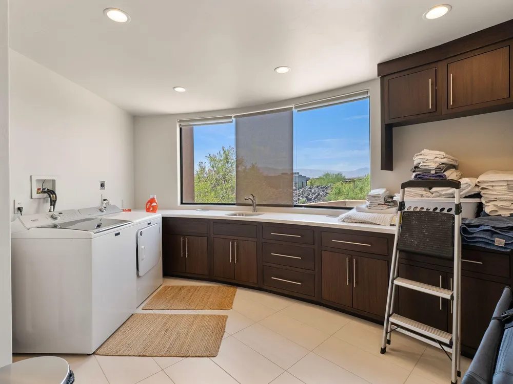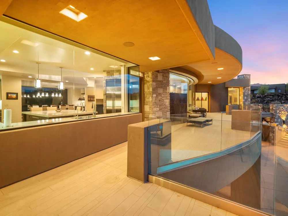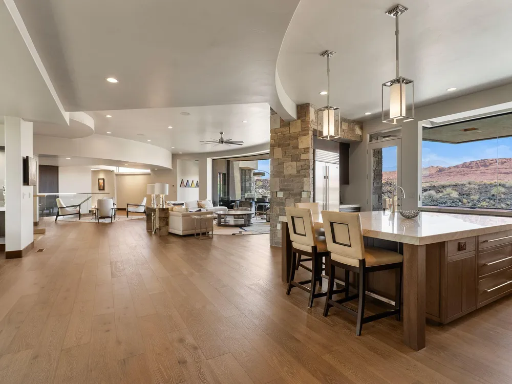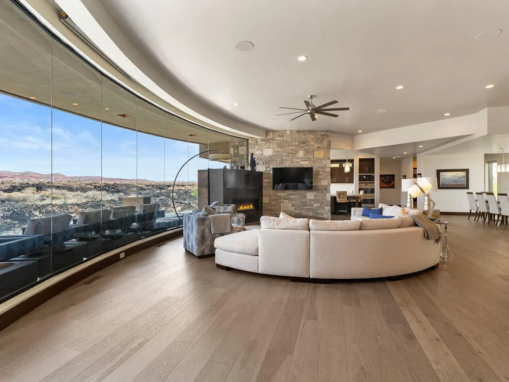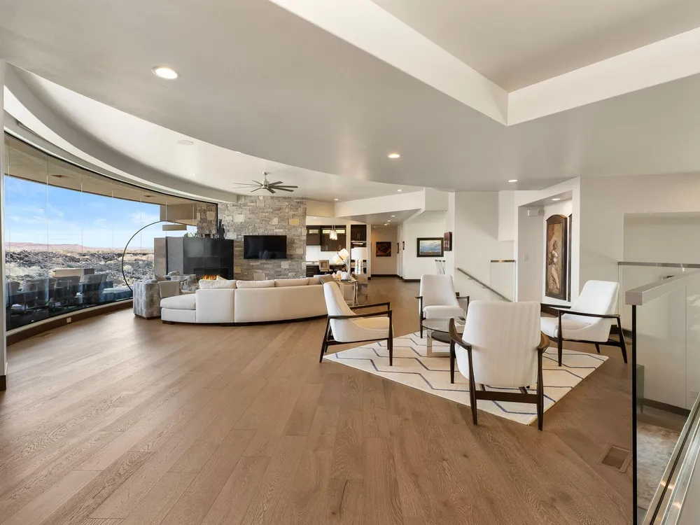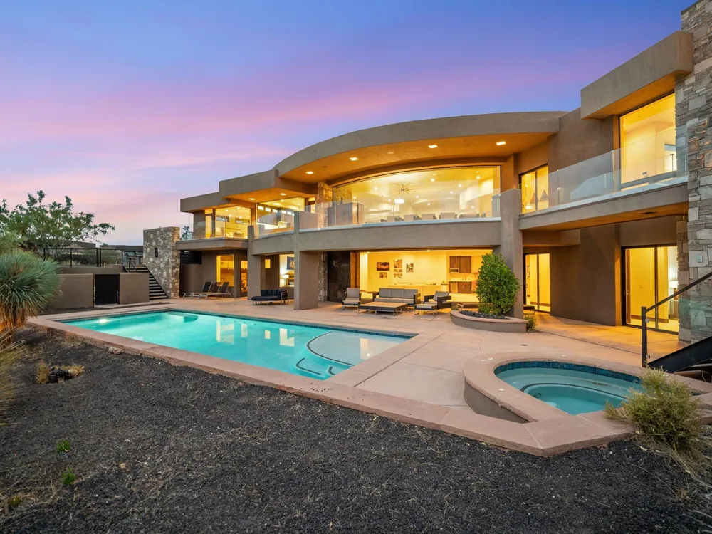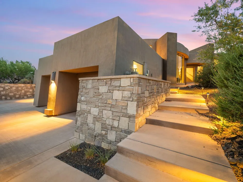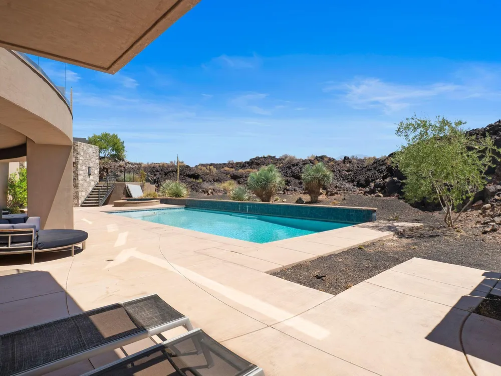 Welcome to your private desert sanctuary nestled in the heart of the prestigious Entrada at Snow Canyon Country Club. This one-of-a-kind estate sits on a rare 2-acre golf course lot and offers over 7,000 square feet of luxury living, designed to embrace the natural beauty of Southern Utah while delivering unparalleled comfort and sophistication. From the moment you arrive, you're greeted with panoramic, unobstructed views of Snow Canyon, creating a truly breathtaking backdrop that seamlessly blends indoor and outdoor living. Thoughtfully positioned to maximize privacy and scenery, this architectural masterpiece boasts an open-concept layout, soaring ceilings, and walls of glass that invite natural light and red rock vistas into every room. The gourmet chef's kitchen is the heart of the home, outfitted with top-of-the-line Sub-Zero and Wolf appliances, custom cabinetry, and an oversized island perfect for entertaining. Flowing effortlessly from the kitchen is a spacious great room with a sleek fireplace and retractable glass walls that open to an expansive outdoor living area. Step outside to your personal resort, featuring a custom-designed swimming pool, spa, outdoor kitchen, and shaded patiosall overlooking the golf course and framed by the awe-inspiring cliffs of Snow Canyon. Inside, the home offers 5+ bedrooms, multiple en-suite baths, private office, and a state-of-the-art indoor basketball courta rare amenity that elevates this home into a league of its own. The expansive primary suite includes a spa-inspired bath, dual closets, and private terrace access with sunrise and sunset views that are nothing short of spectacular. This is more than a homeit's a lifestyle. Located in the guard-gated Entrada community, residents enjoy exclusive access to championship golf, fine dining, fitness facilities, and the serene desert landscapes that make this region a world-class destination. Schedule your private tour today and experience luxury living at its finest in Entrada @ Snow Canyon.