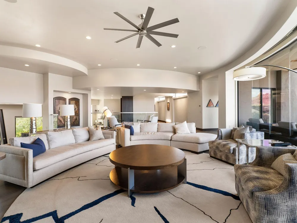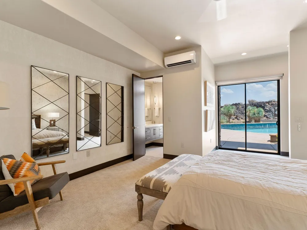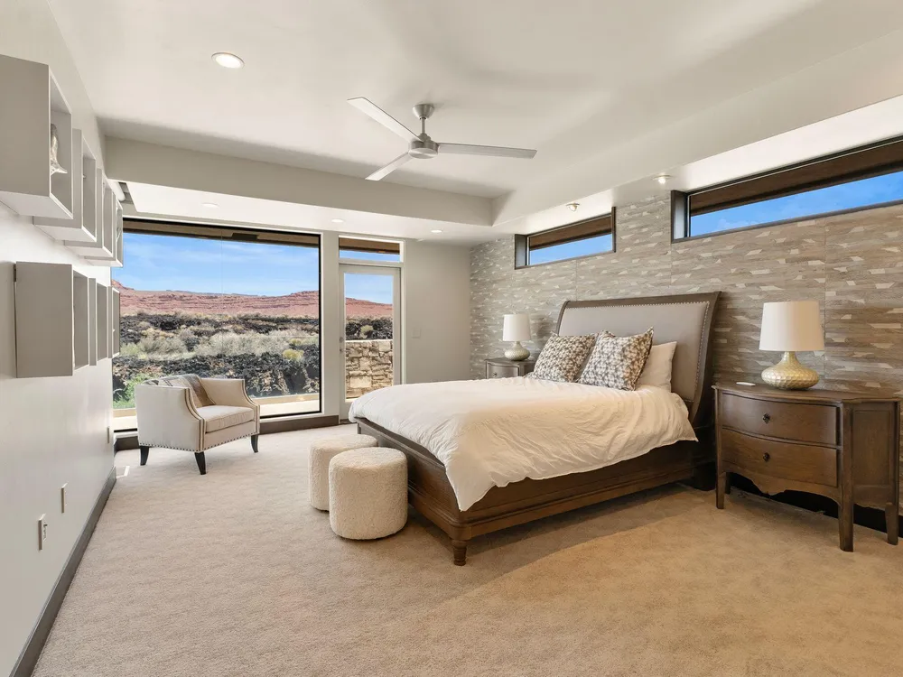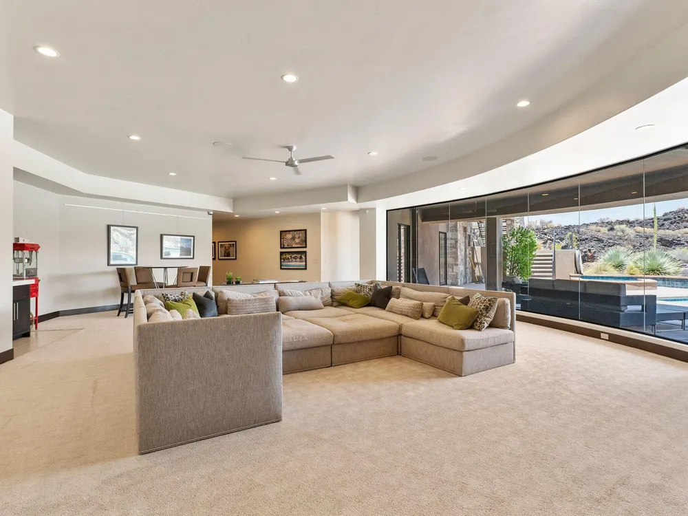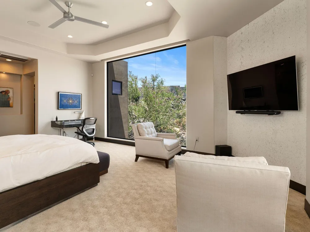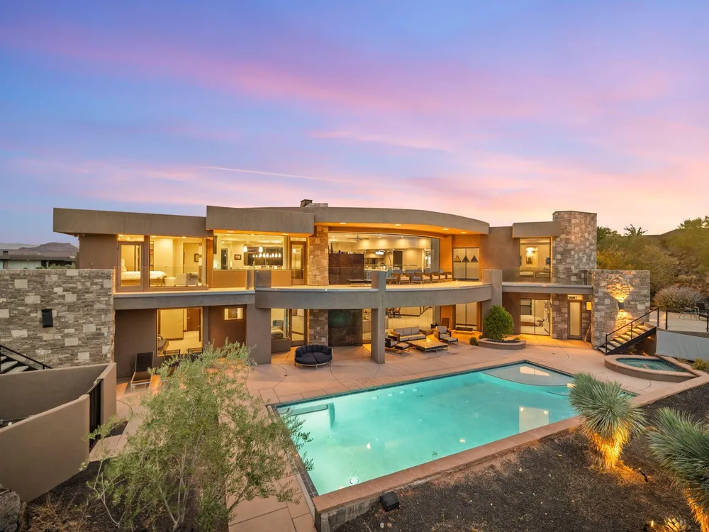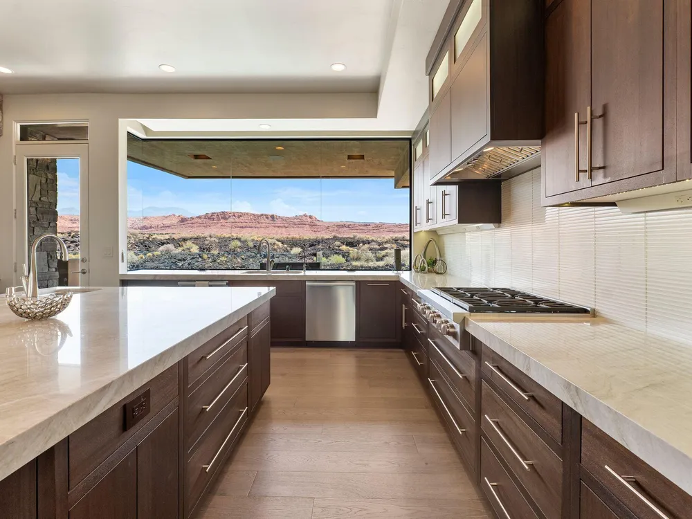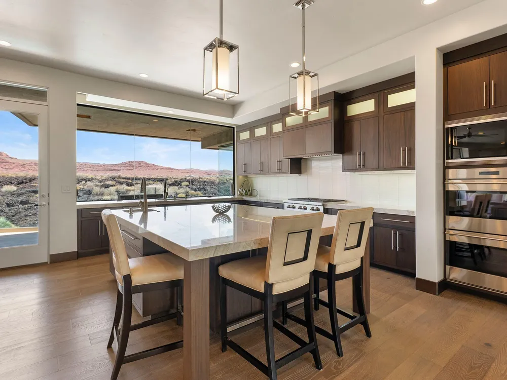 Welcome to your private desert sanctuary nestled in the heart of the prestigious Entrada at Snow Canyon Country Club. This one-of-a-kind estate sits on a rare 2-acre golf course lot and offers over 7,000 square feet of luxury living, designed to embrace the natural beauty of Southern Utah while delivering unparalleled comfort and sophistication. From the moment you arrive, you're greeted with panoramic, unobstructed views of Snow Canyon, creating a truly breathtaking backdrop that seamlessly blends indoor and outdoor living. Thoughtfully positioned to maximize privacy and scenery, this architectural masterpiece boasts an open-concept layout, soaring ceilings, and walls of glass that invite natural light and red rock vistas into every room. The gourmet chef's kitchen is the heart of the home, outfitted with top-of-the-line Sub-Zero and Wolf appliances, custom cabinetry, and an oversized island perfect for entertaining. Flowing effortlessly from the kitchen is a spacious great room with a sleek fireplace and retractable glass walls that open to an expansive outdoor living area. Step outside to your personal resort, featuring a custom-designed swimming pool, spa, outdoor kitchen, and shaded patiosall overlooking the golf course and framed by the awe-inspiring cliffs of Snow Canyon. Inside, the home offers 5+ bedrooms, multiple en-suite baths, private office, and a state-of-the-art indoor basketball courta rare amenity that elevates this home into a league of its own. The expansive primary suite includes a spa-inspired bath, dual closets, and private terrace access with sunrise and sunset views that are nothing short of spectacular. This is more than a homeit's a lifestyle. Located in the guard-gated Entrada community, residents enjoy exclusive access to championship golf, fine dining, fitness facilities, and the serene desert landscapes that make this region a world-class destination. Schedule your private tour today and experience luxury living at its finest in Entrada @ Snow Canyon.