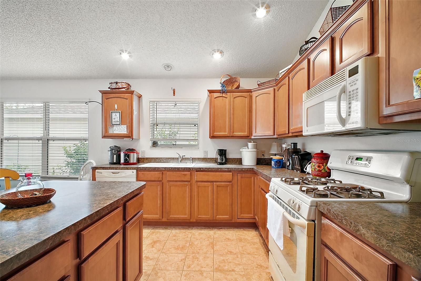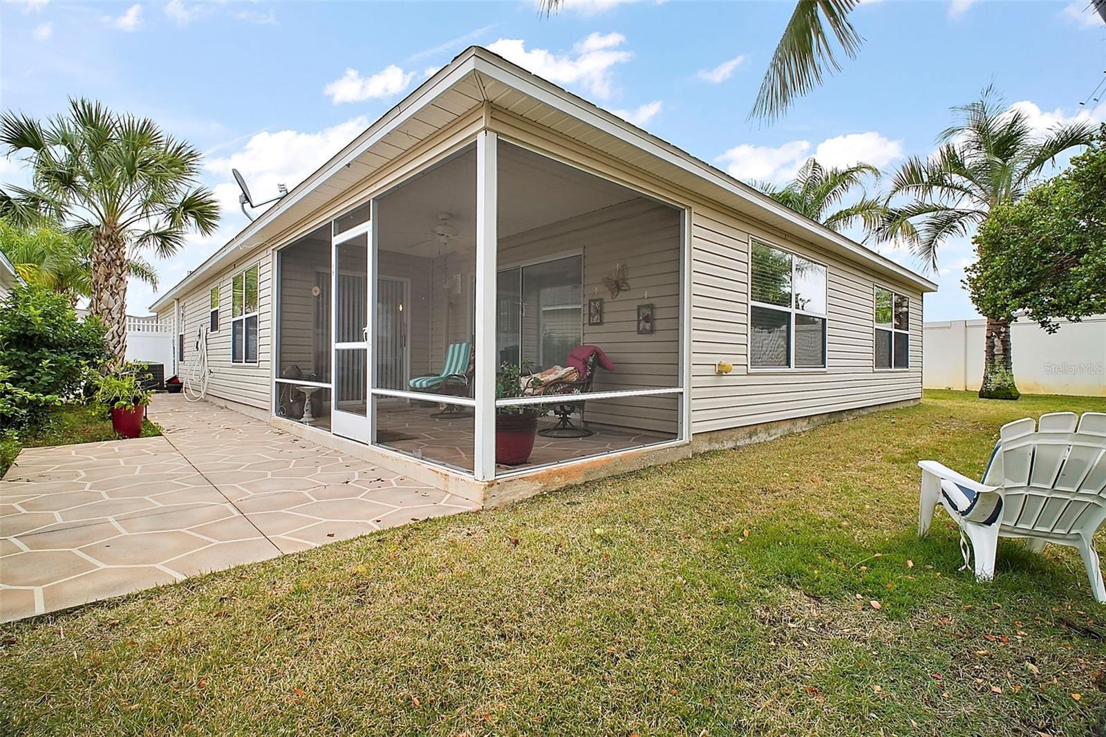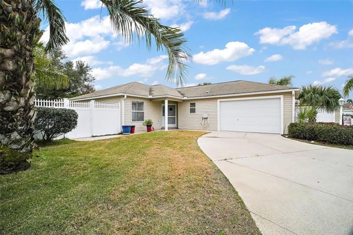 Discover your dream home in this beautifully designed 3 bedroom, 2 bathroom residence, boasting an open and inviting floor plan that's perfect for modern living. Start your day at the charming breakfast bar, bathed in sunlight streaming through the cathedral ceilings that lend a spacious and airy feel to the home. Ceiling fans throughout ensure your comfort is a priority, gently circulating the breeze. The master bedroom is a true retreat, offering ample space and a luxurious ensuite complete with his and hers sinks for added convenience. Situated in a prime central location, this home puts you at the heart of it all. Hop in your golf cart and you're just a swift 10-minute ride away from the vibrant Lake Sumter Landing or the charming Brownwood area. Enjoy easy access to a host of recreational facilities, including Seabreeze Rec Center, Havana Country Club, Cane Garden Country Club, and Lake Miona Rec Center—there's no shortage of options for fun and leisure. Need to run some errands? Colony Shopping Center is just a short drive away, whether you're taking the car or the golf cart. And for peace of mind, the Emergency Room at Trailwinds is conveniently located nearby on 466A. Don't miss out on the chance to call this fantastic house your home. Schedule a viewing today and experience the perfect blend of comfort, style, and convenience! Bond Paid off!!