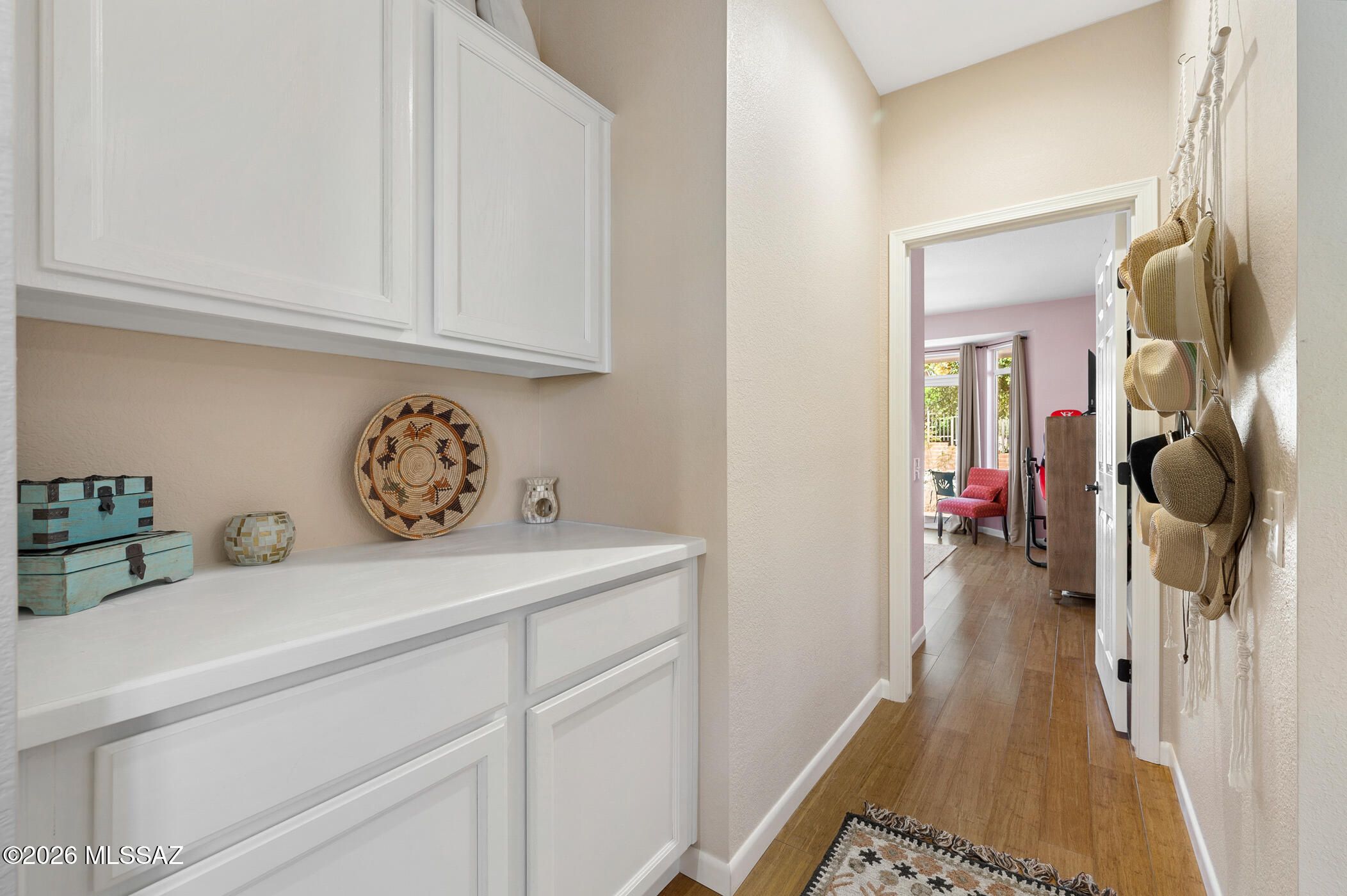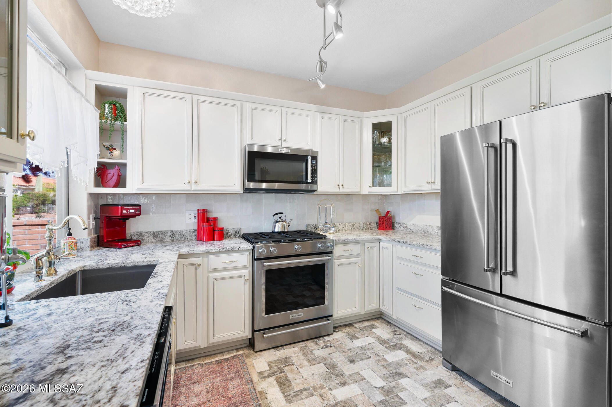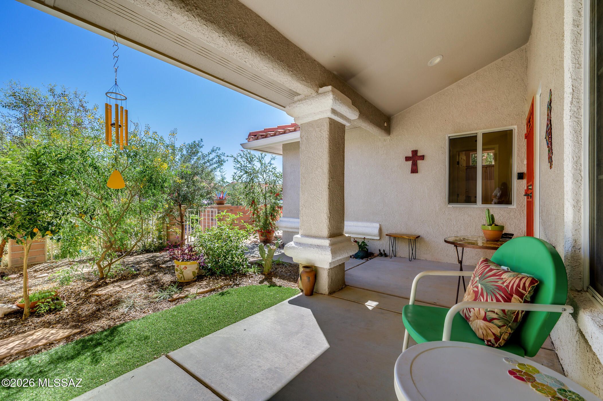 Nicely situated on a quiet street in coveted Sun City Oro Valley, this very special 2 Bedroom, 2 Bath home also has an expanded office/studio complete with a 10-foot built in work area, a sink, built-in shelving & an attached laundry room. You'll be welcomed into this lovely property by the spacious front courtyard boasting Catalina Mountain Views & a garden oasis. More highlights of this lovely home include updated Bamboo & tile flooring, an inviting living & dining area, a fully updated Chef's kitchen showcasing granite countertops, an enlarged pantry, new stainless-steel appliances, new cabinets & lighting, a breakfast nook & a sliding door to the extended back patio spaces. The peaceful Primary Bedroom has a beautiful bay window plus an en-suite bath with granite-topped new vanity,