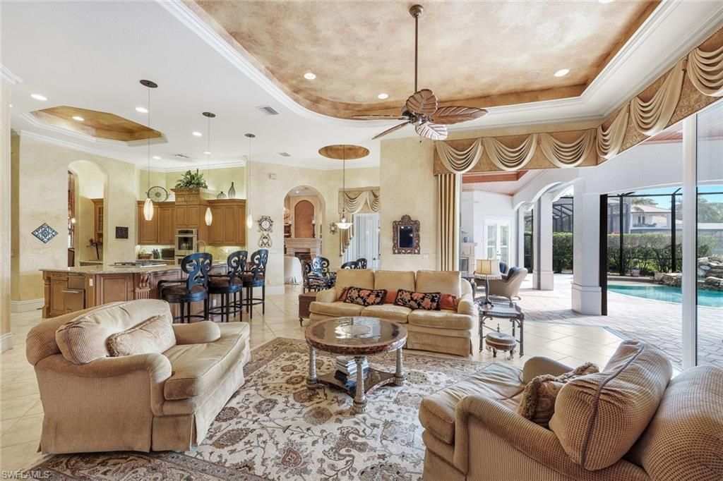An exceptional value in Bellagio at The Colony Golf & Bay Club, this elegant estate residence offers over 3,450 square feet of refined living with 3 bedrooms plus a study, 3 baths, and a 3-car garage, perfectly positioned on a stunning lakefront homesite with coveted western exposure for breathtaking sunset views.Designed for both grand entertaining and comfortable everyday living, the home features ornate fireplaces inside and out, propane gas, and a beautifully appointed outdoor living area with lush landscaping, a resort-style pool and spa, and a full outdoor kitchen. The primary suite boasts two walk-in closets. Recent improvements include a 2022 new roof, a newer full-home generator, a newer pool cage, a freshly painted exterior, and remote-controlled hurricane shutters, offering both peace of mind and modern convenience.Golf membership at The Colony Golf & Bay Club is negotiable, providing flexibility for buyers seeking access to one of Southwest Florida’s most prestigious private clubs. Residents also enjoy the unparalleled lifestyle of Pelican Landing, including private island beach access via water taxi and waterfront dining overlooking Estero Bay.Ideally located just minutes to world-class shopping, dining, and Southwest Florida International Airport, this is a rare opportunity to own a spectacular estate home combining luxury, lifestyle, and exceptional value.
